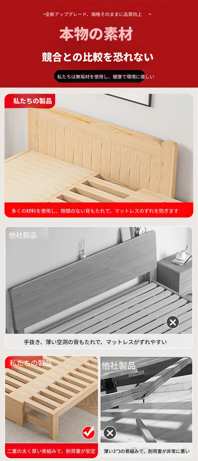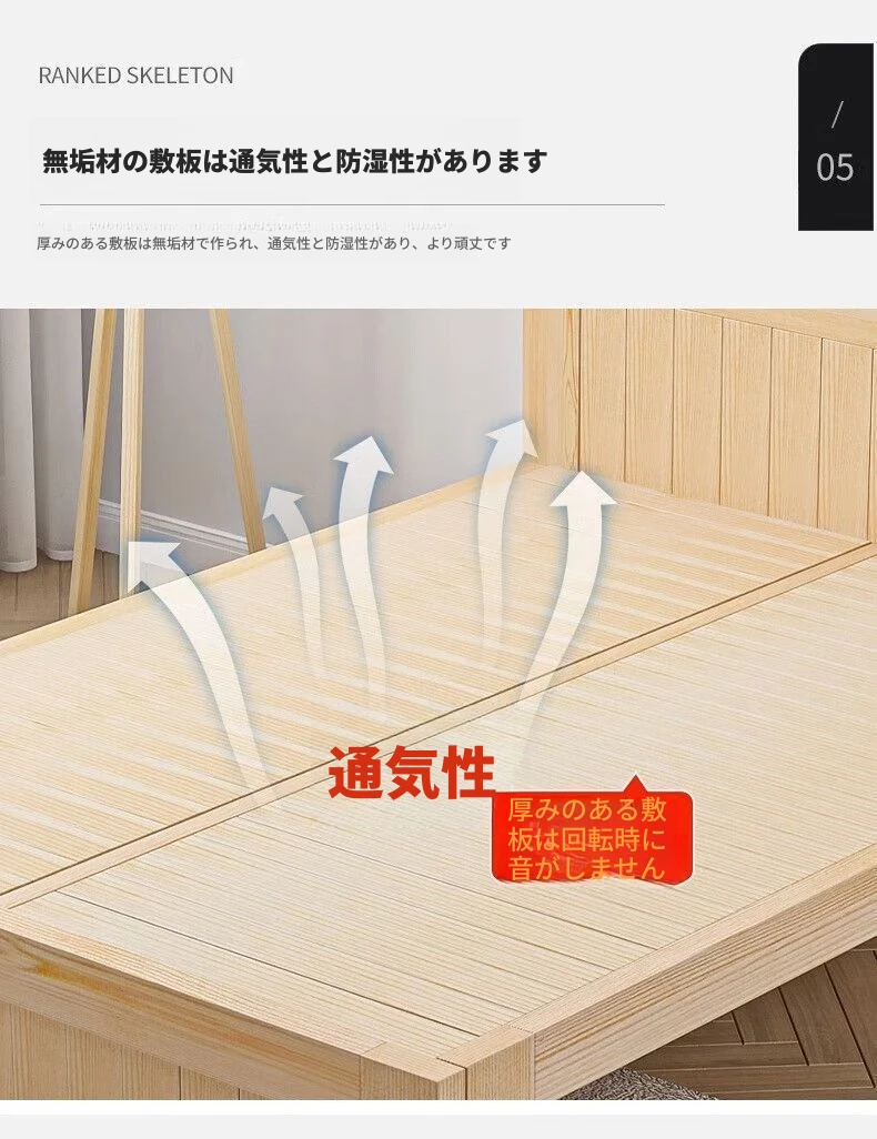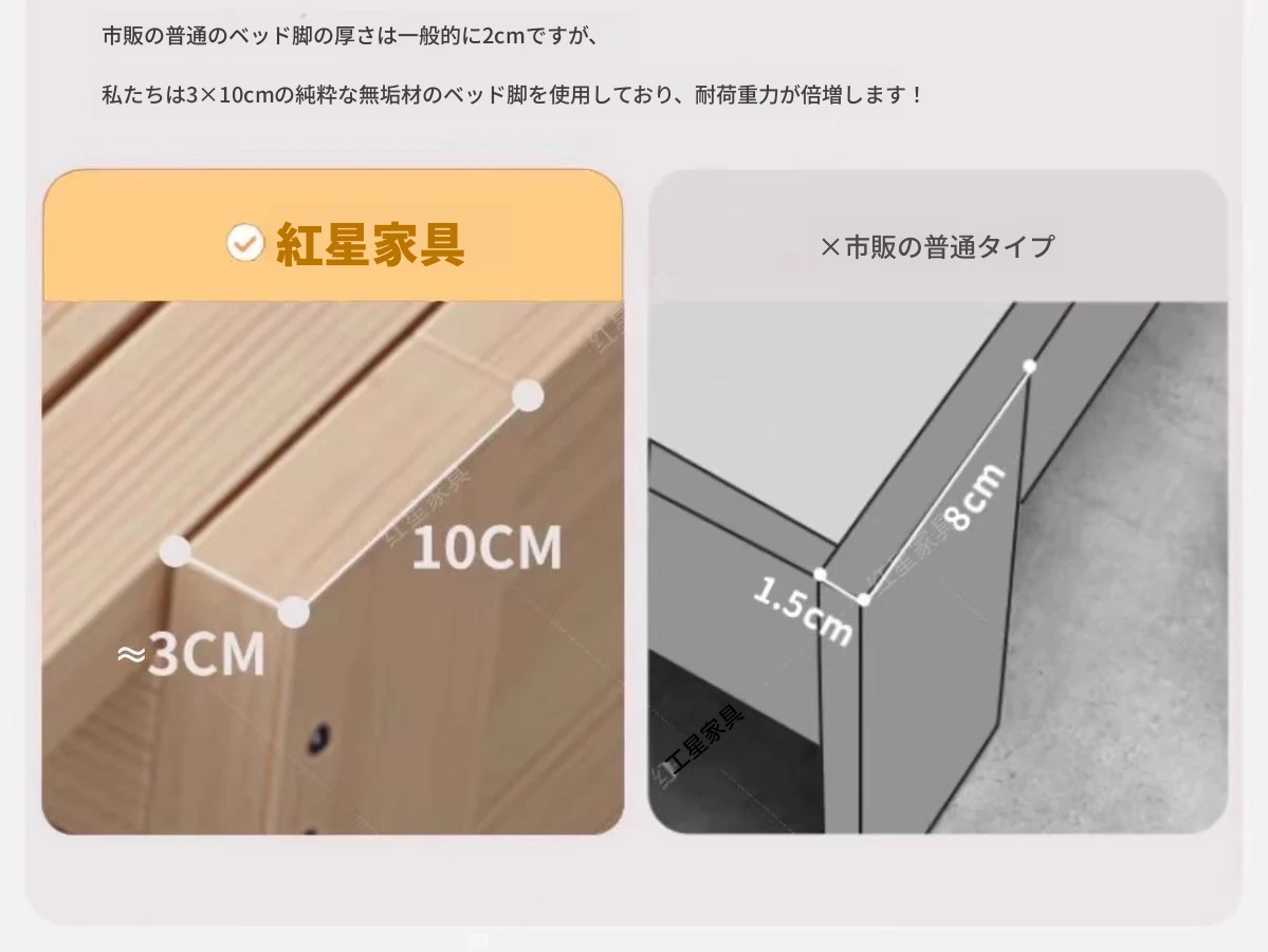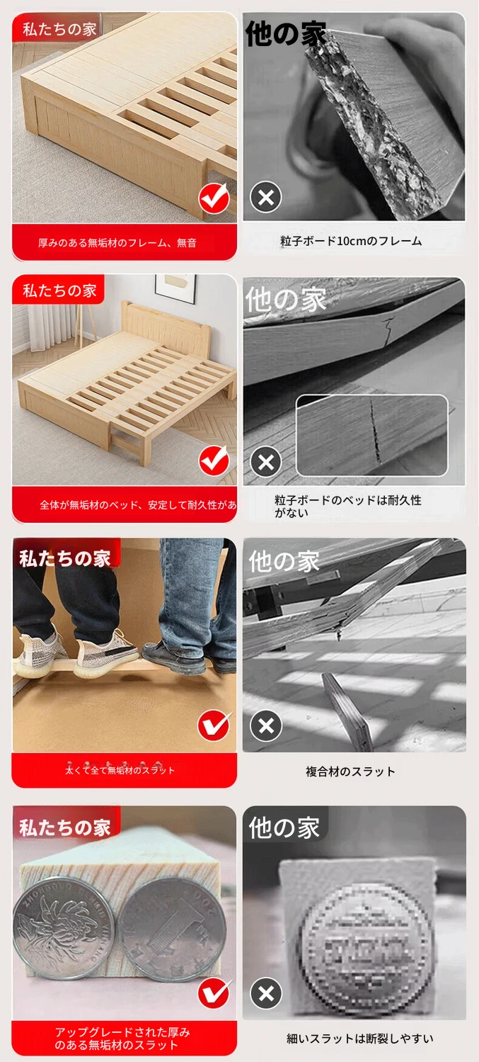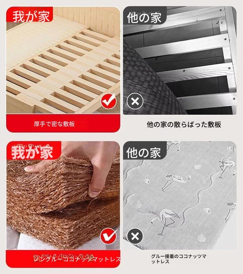 無垢材の引き出しベッド+ココナッツファイバーのマットレス