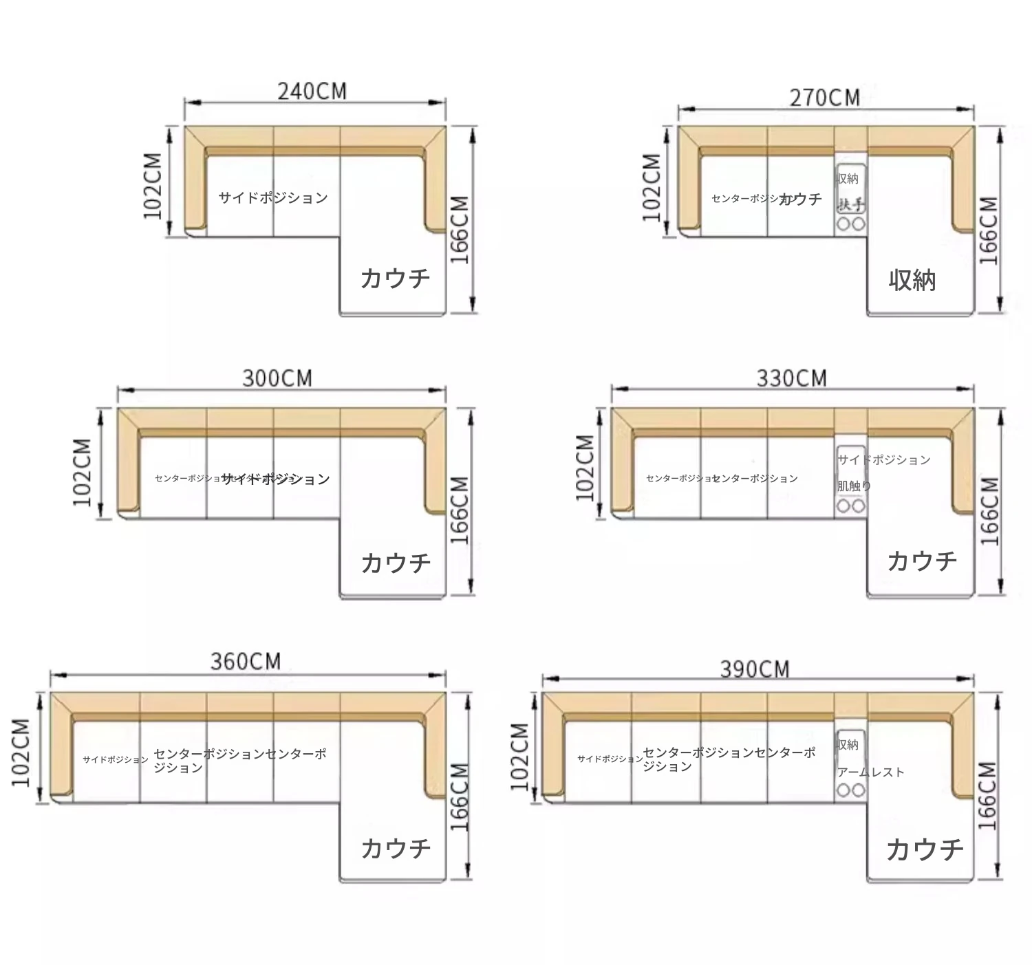 端位置電動+3中央位置固定+貴妃電動/長さ約3.6メートル