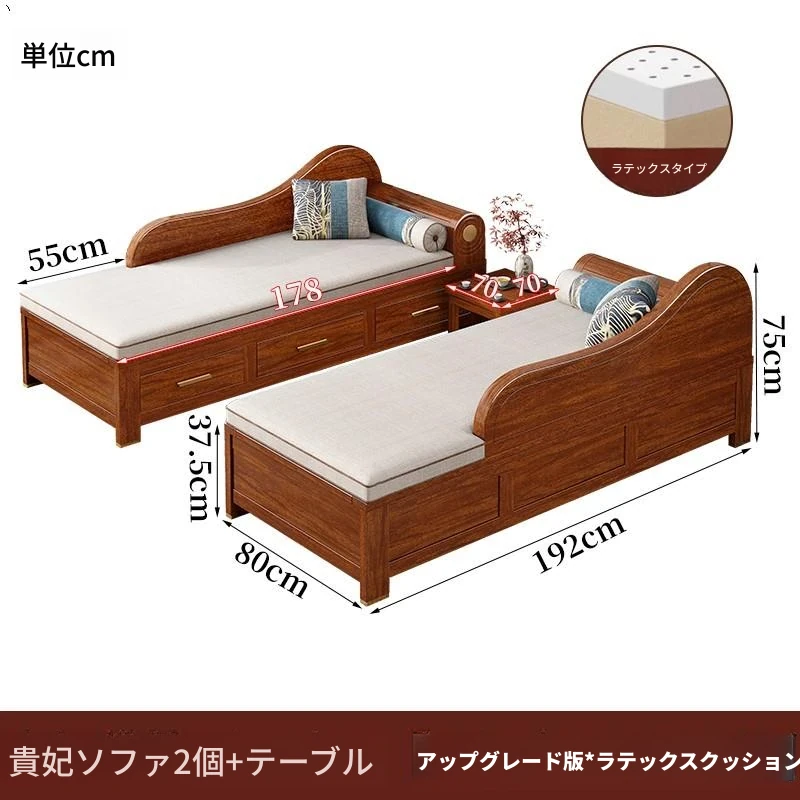 2432型#貴妃ソファ*2個+サイドテーブル【アップグレードタイプ*ラテックスクッション】
