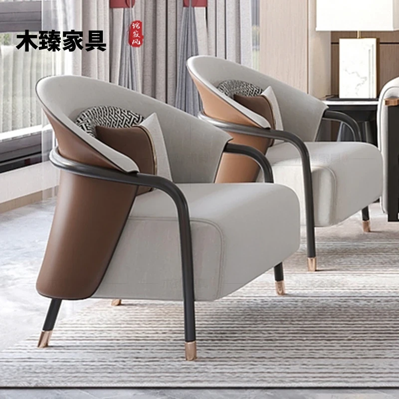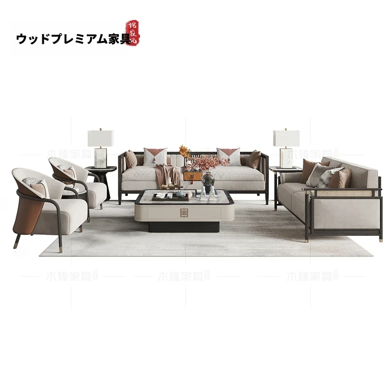 新中式スタイルの無垢材製リラクゼーションソファチェア - 高級感あふれる販売オフィスやホテルのラウンジ、VIPルームに最適な商談用ソファチェア。贅沢なひとときを提供します!