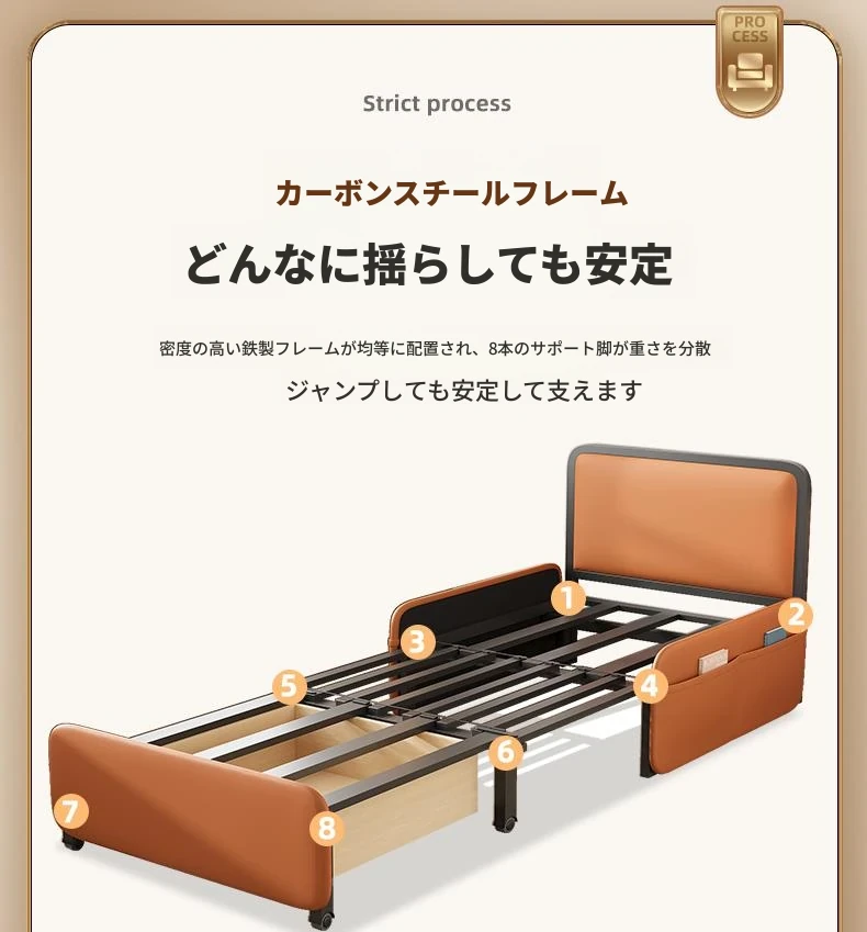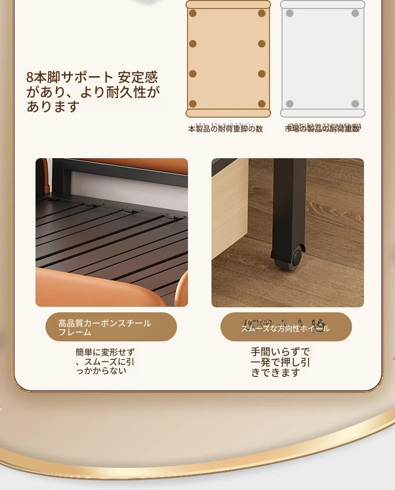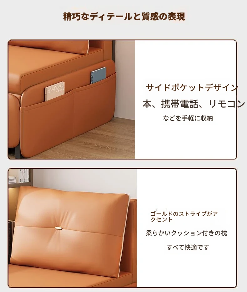 【ココナッツブラウン収納付き】幅0.9メートルオレンジ