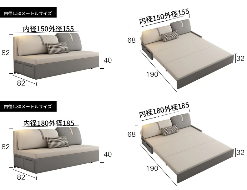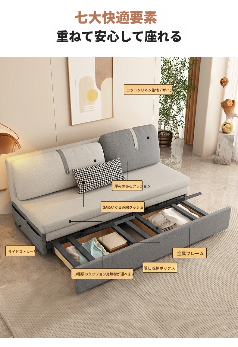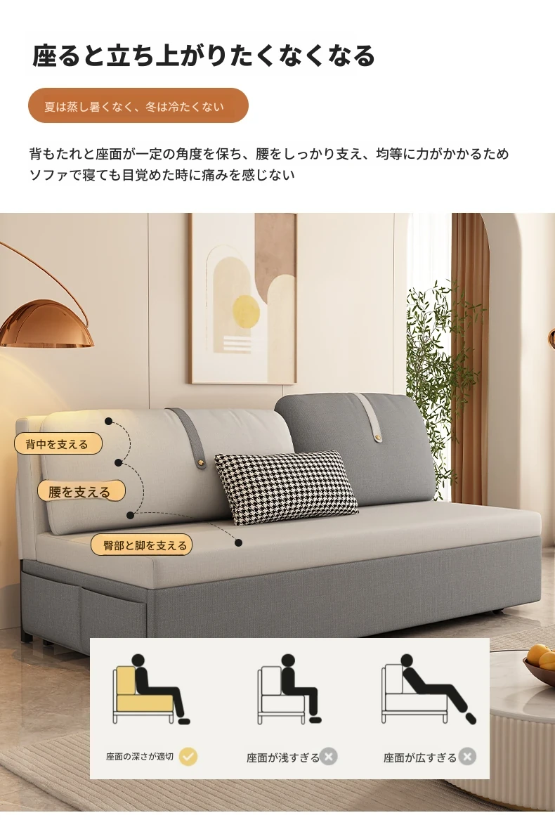 【香港送料無料】多機能折りたたみソファベッド - 小型リビングに最適!省スペースで快適な眠りを提供する二用途のソファベッド。引き伸ばし可能で、スタイリッシュなデザインが魅力!