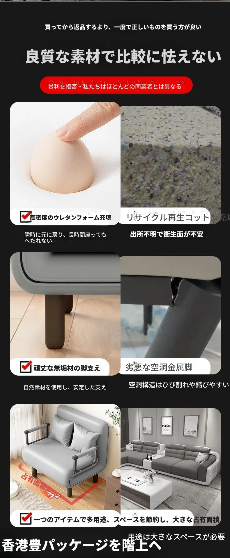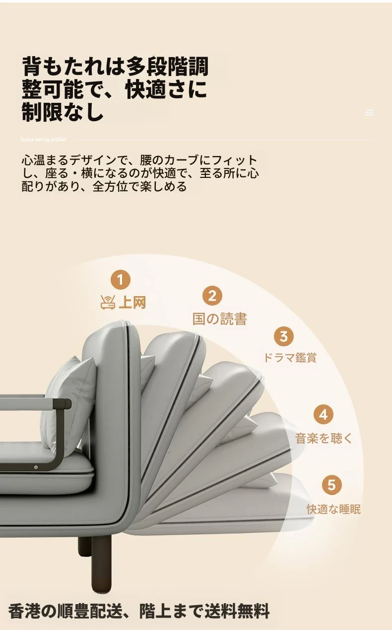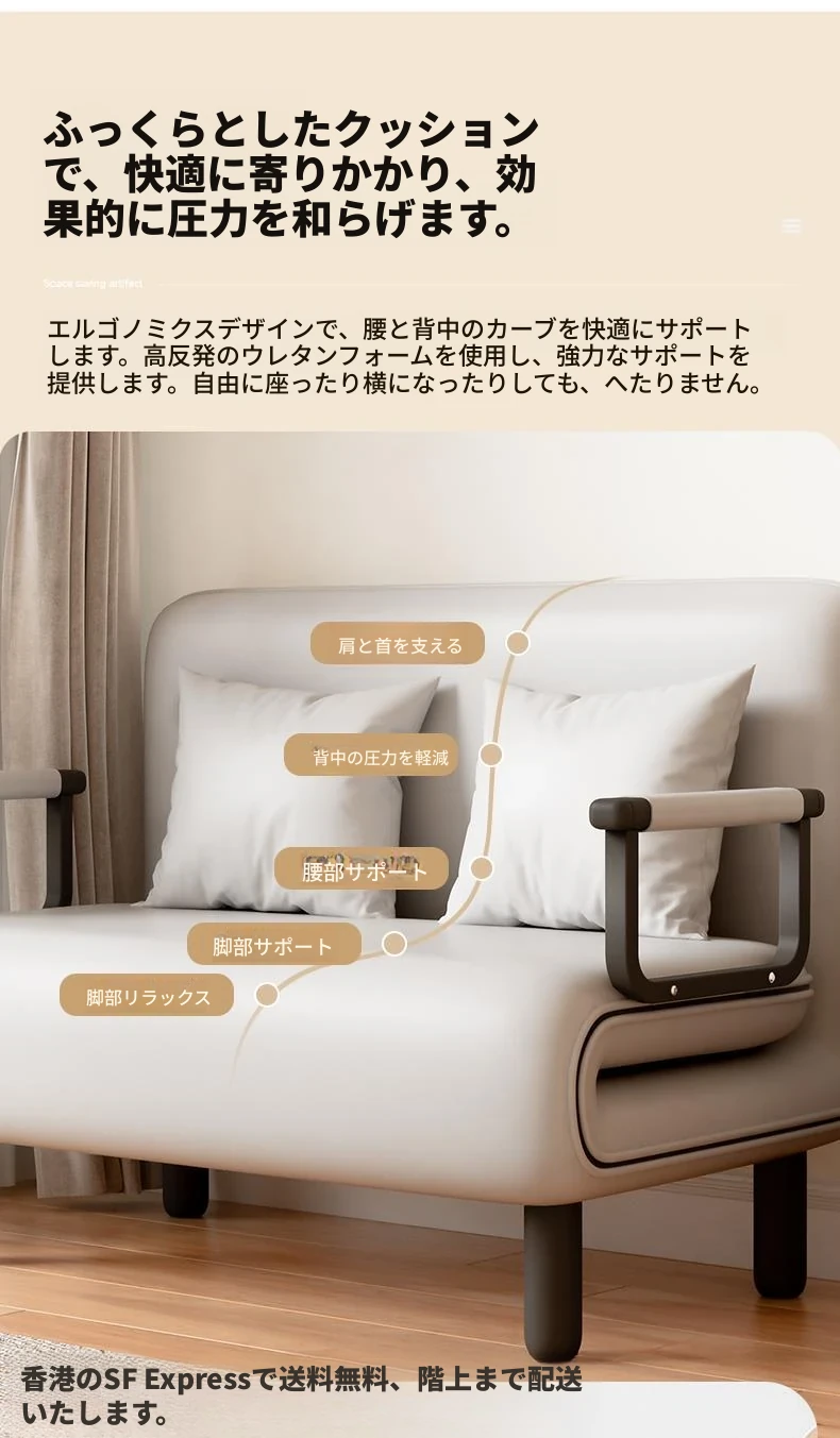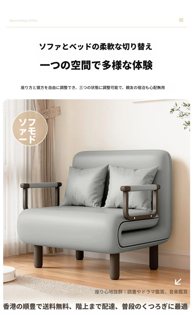【香港送料無料】折りたたみソファベッド 小型リビングに最適!シングルサイズのテクノロジー生地使用、快適な昼寝空間を提供する怠け者必見のアイテム!