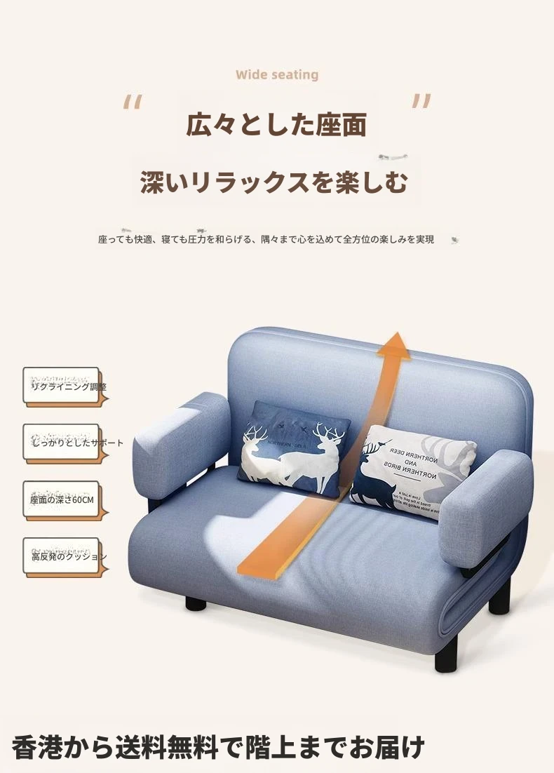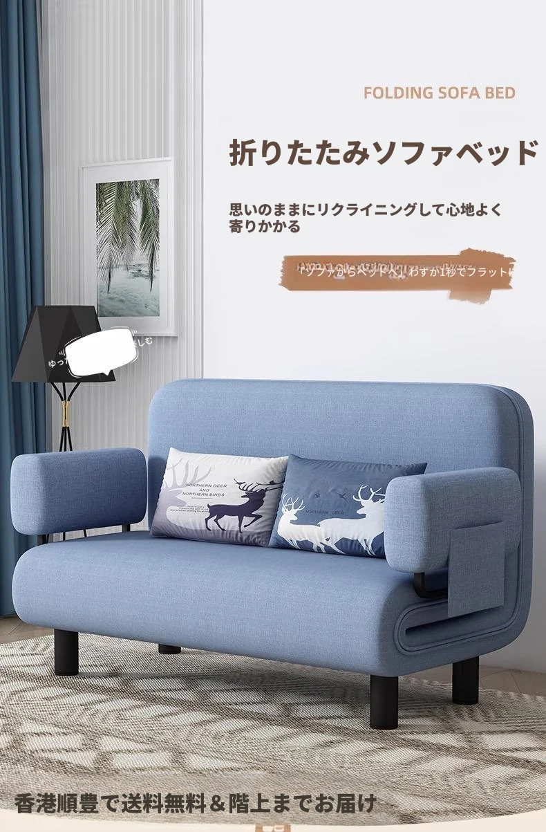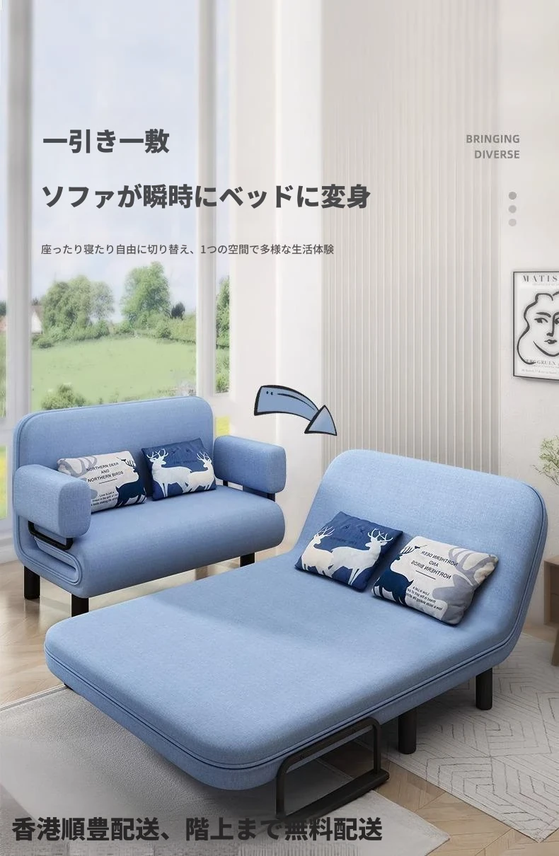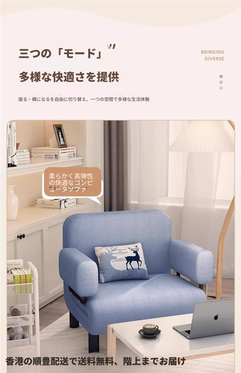 【香港送料無料】折りたたみソファベッド!小スペースに最適なリビング用二人掛け・一人掛けソファ、バルコニーにもぴったりな多機能デザイン!おしゃれで実用的な一品をお見逃しなく!
