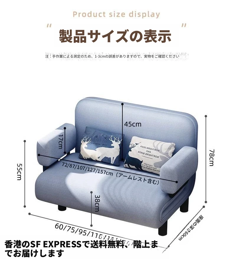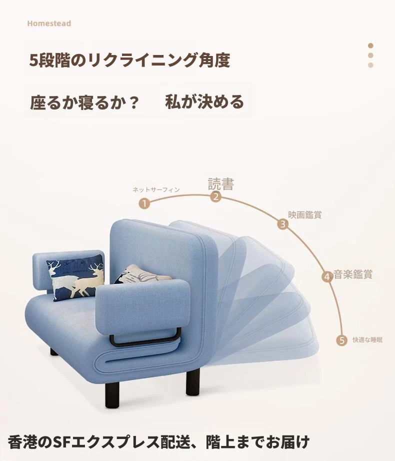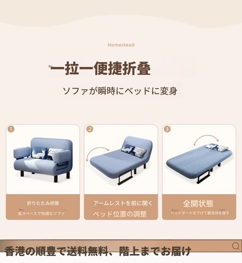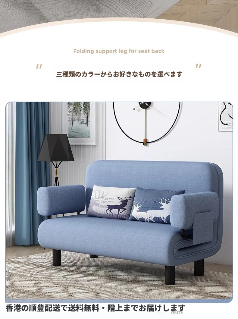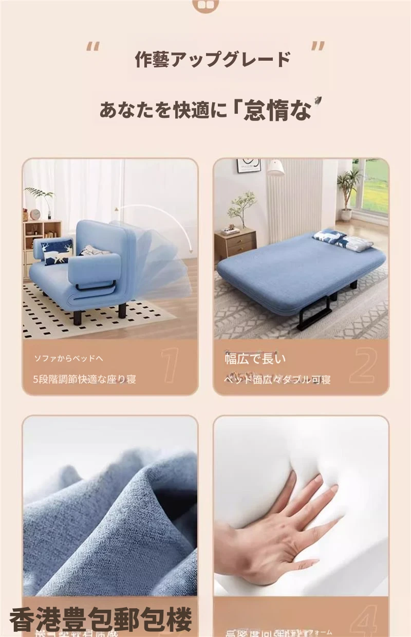 【香港送料無料】折りたたみソファベッド!小スペースに最適なリビング用二人掛け・一人掛けソファ、バルコニーにもぴったりな多機能デザイン!おしゃれで実用的な一品をお見逃しなく!