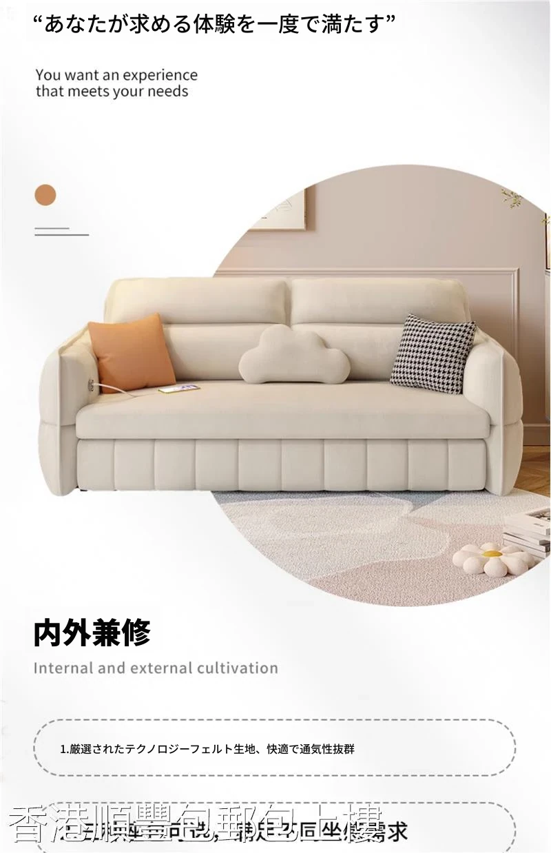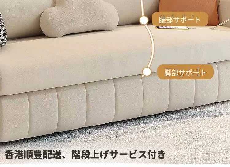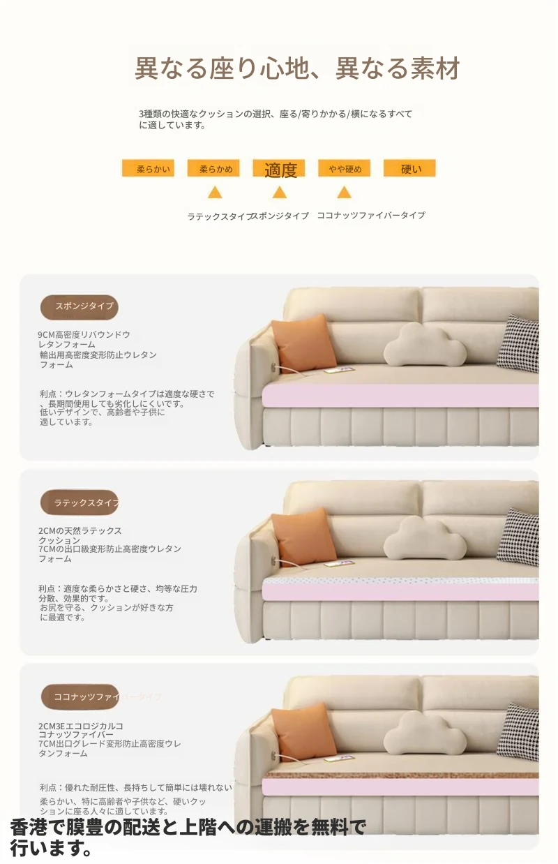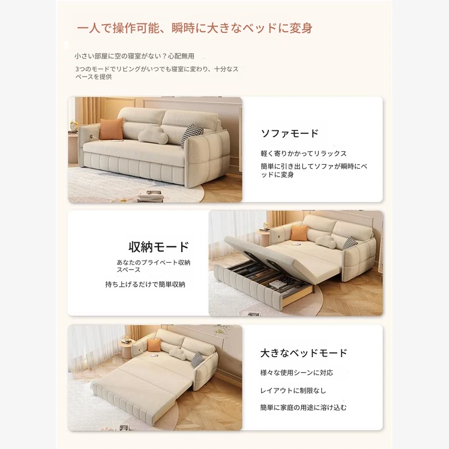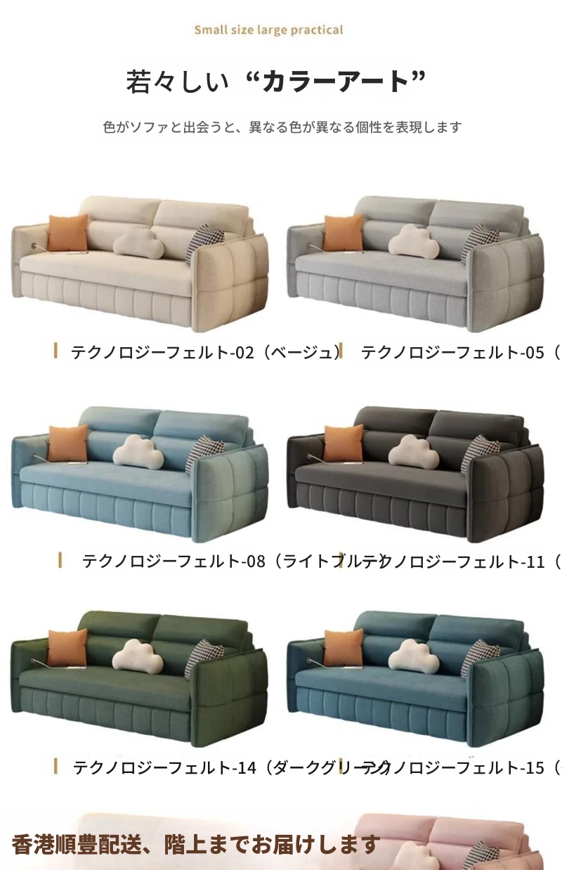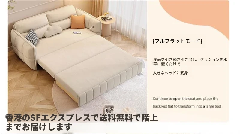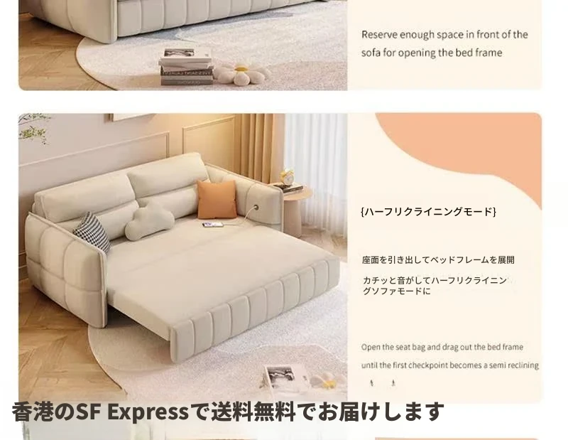 【香港送料無料】2023新作!北欧スタイルのクリーミーファブリック折りたたみソファベッド - スペースを有効活用できる小型住宅向けの多機能デザイン!