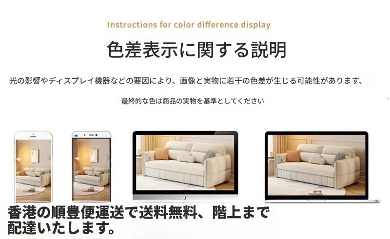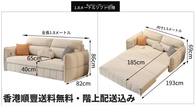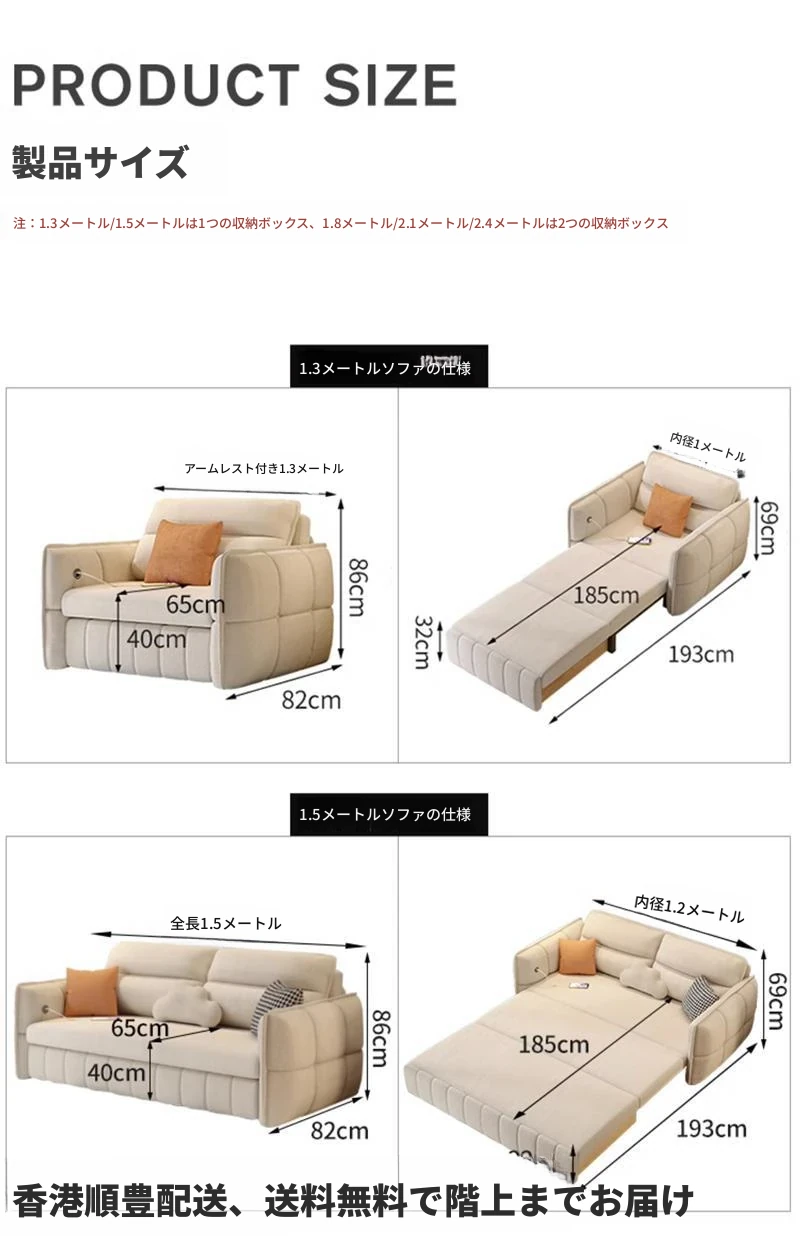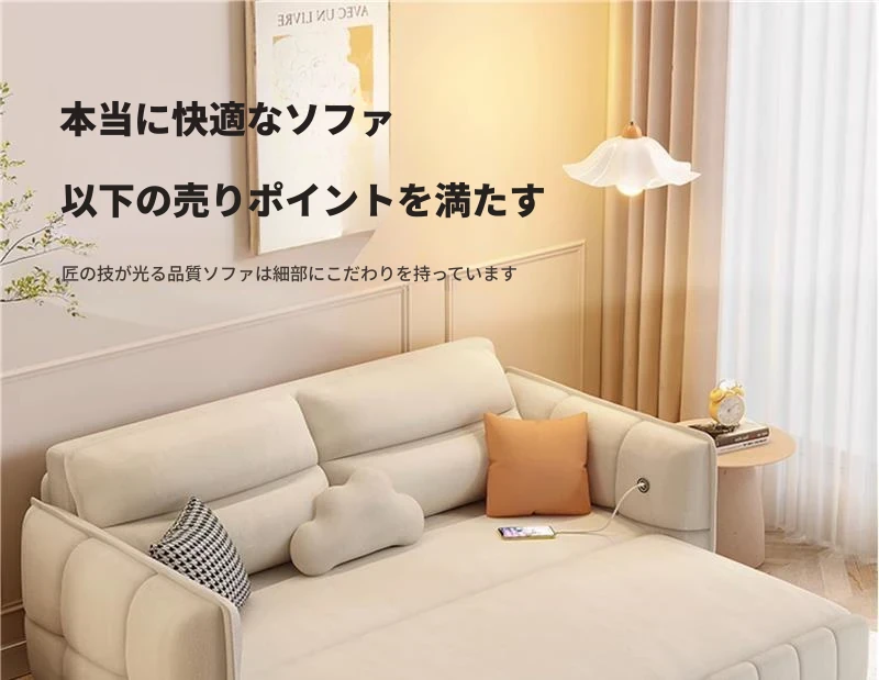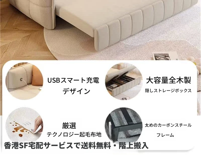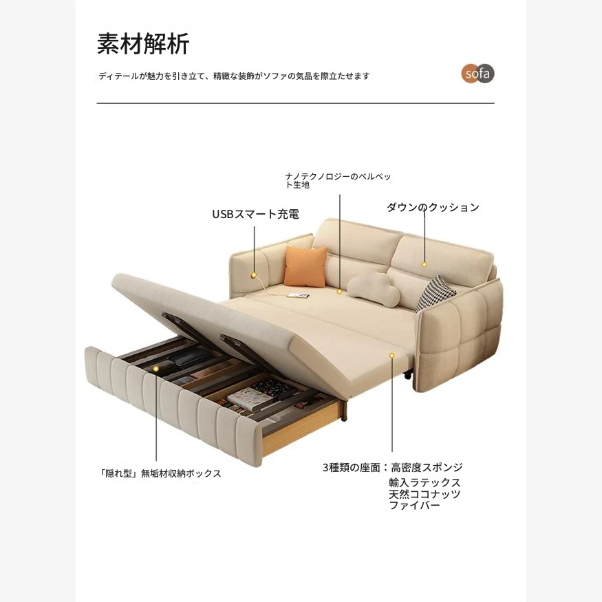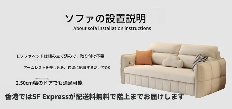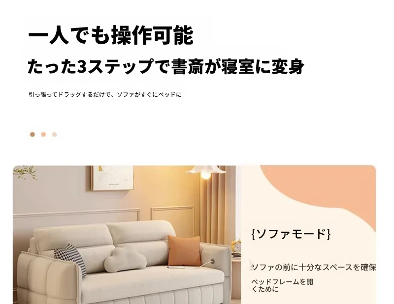 【香港送料無料】2023新作!北欧スタイルのクリーミーファブリック折りたたみソファベッド - スペースを有効活用できる小型住宅向けの多機能デザイン!