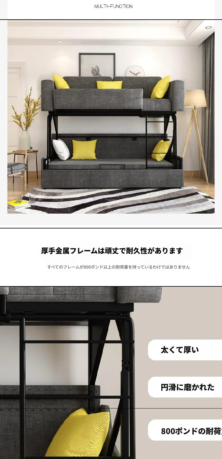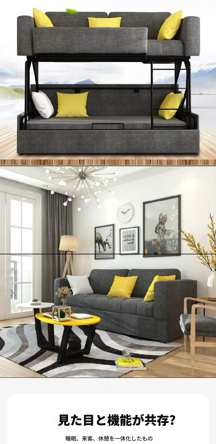【香港送料無料】最新デザイン!多機能ソファベッド・リビング用折りたたみ二段ベッド!快適な空間を実現する上下二段式、さまざまな用途に対応!