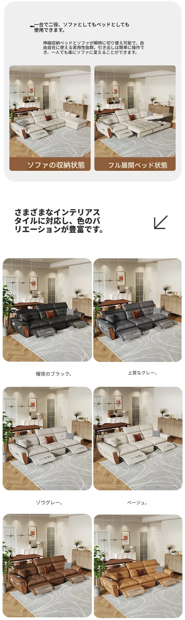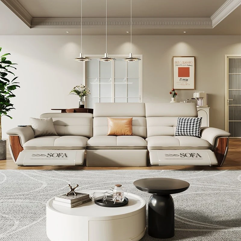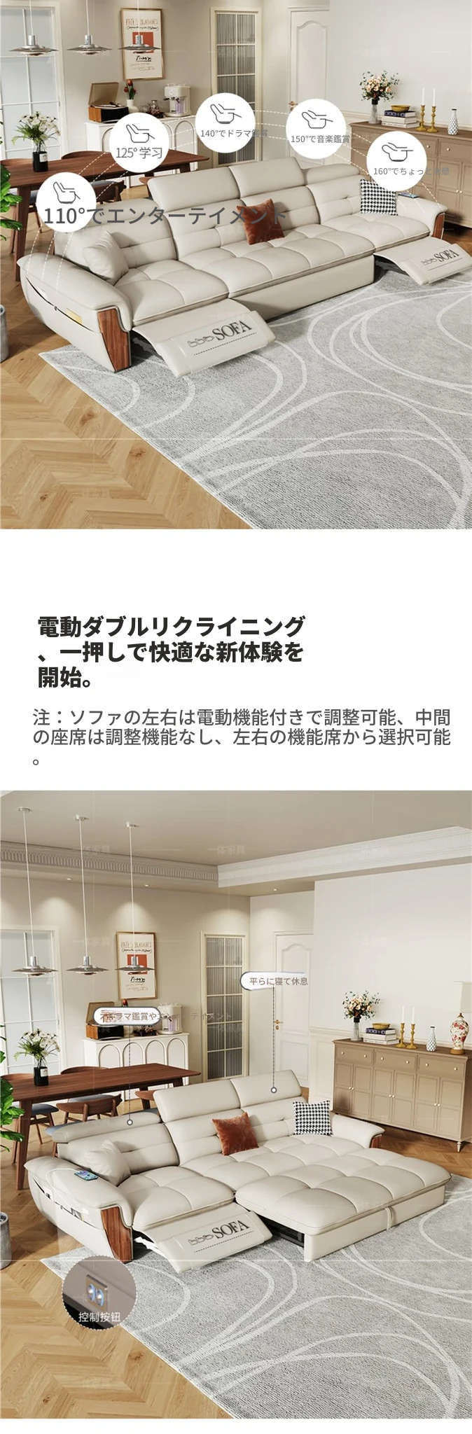 本革製電動リクライニングソファー|家庭用シアター向け|リビングに最適な三人掛け|スペースセーブ設計|後ろに壁を必要としない!快適な映画体験をお届けします!