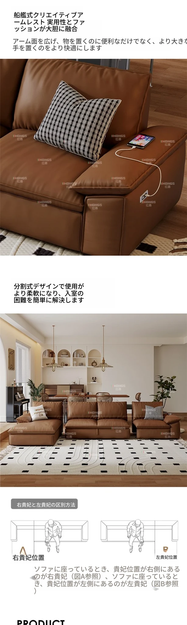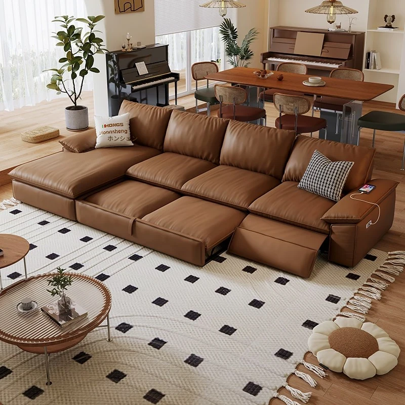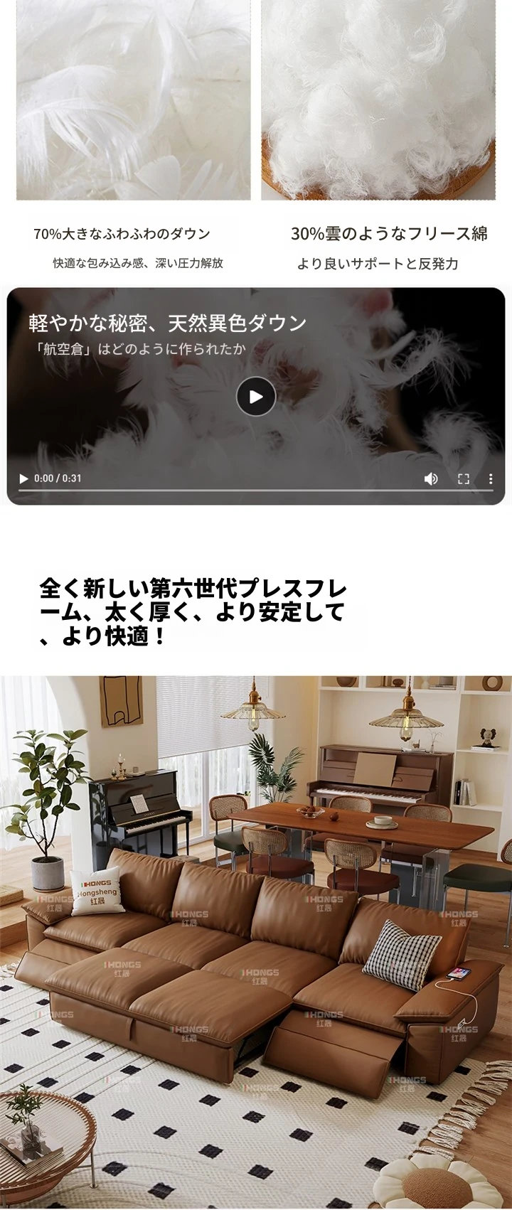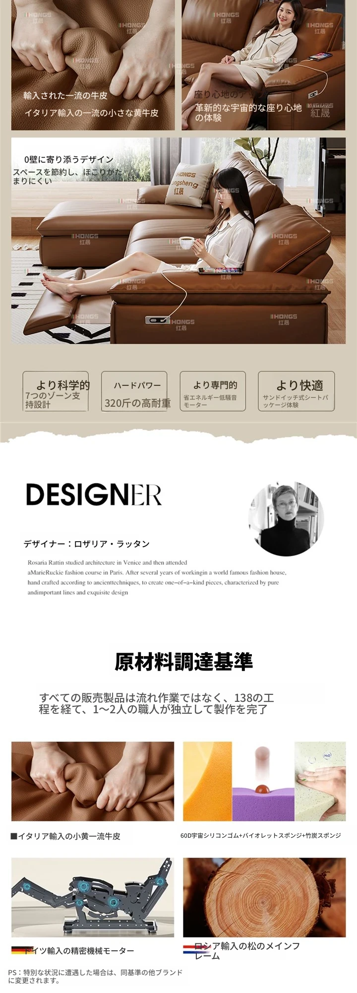 【フラッグシップ版・雲のような座り心地】2.65メートル 単電動機能+三人用【接触面は上質な小黄牛革】