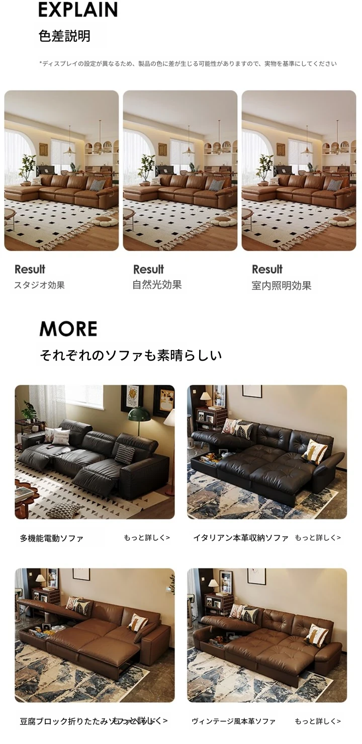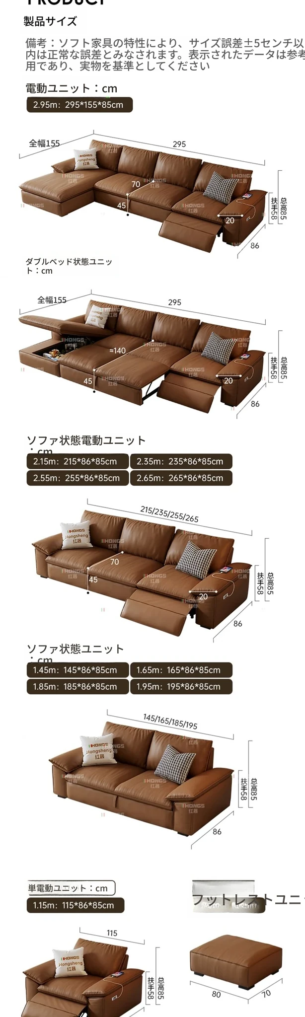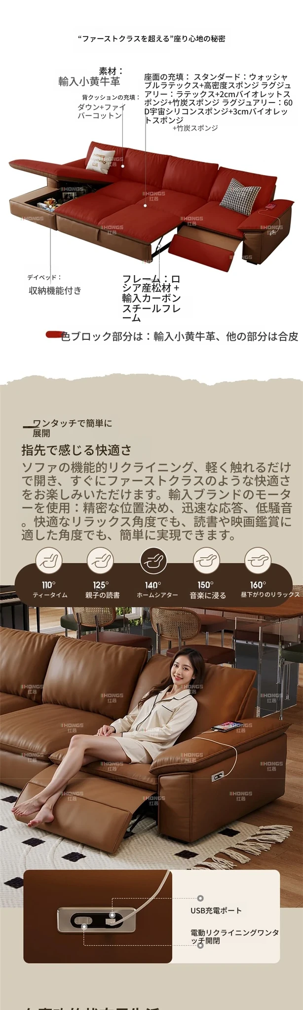 【フラッグシップ版・雲のような座り心地】2.55メートル 単電動機能+二人用【接触面は上質な小黄牛革】