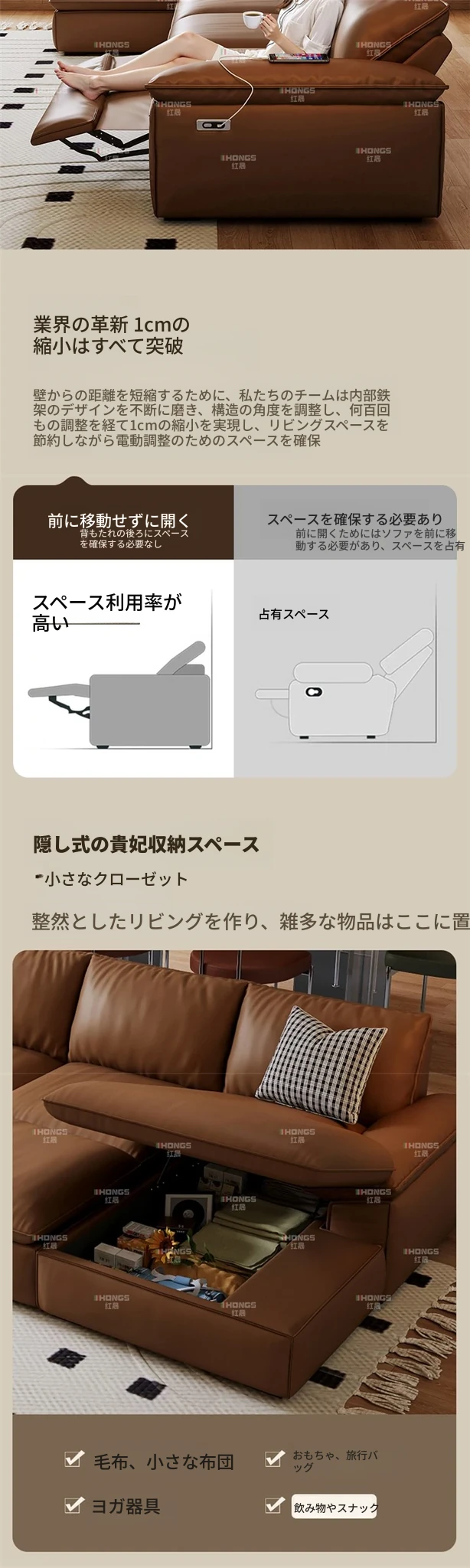 【フラッグシップ版・雲のような座り心地】2.95メートル 単電動機能+二人用+貴妃【接触面は上質な小黄牛革】