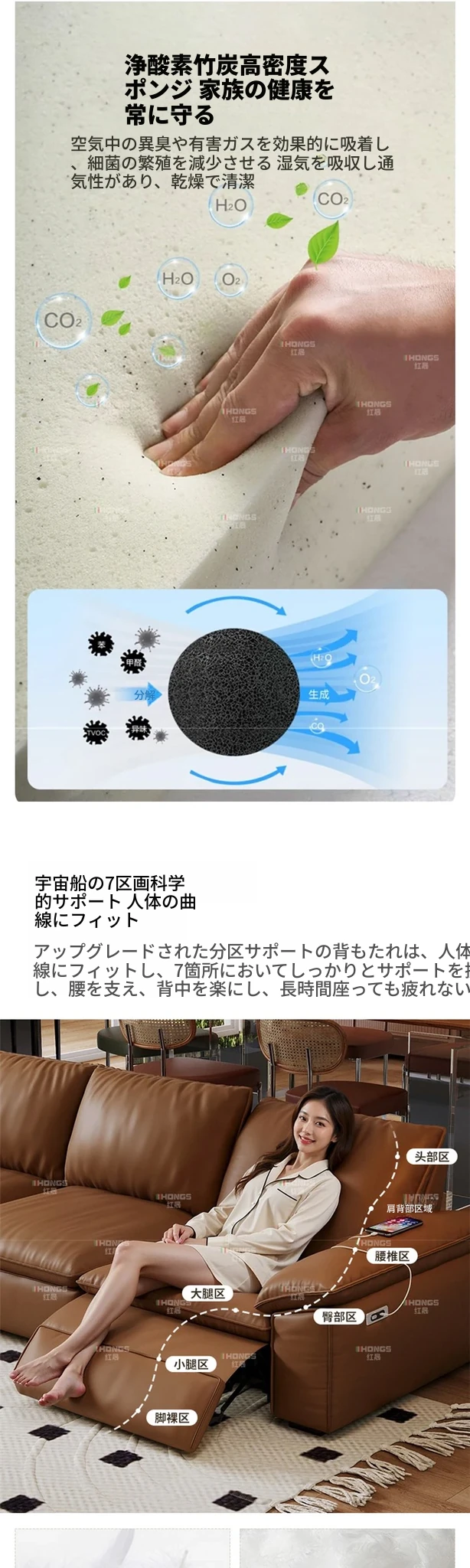 【フラッグシップ版・雲のような座り心地】1.85メートル 無電動機能+二人用【接触面は上質な小黄牛革】