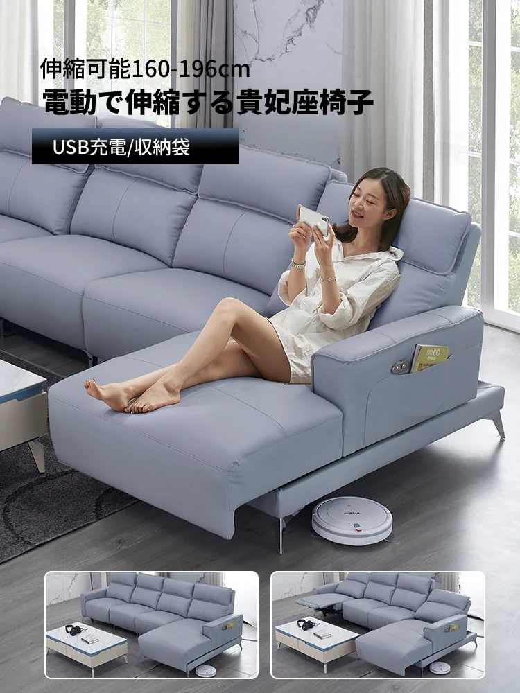 イタリアンラグジュアリー本革ソファ - 高級トップグレイン牛革製、スマート電動多機能キャビンデザイン。モダンでシンプルなリビング空間にぴったり!