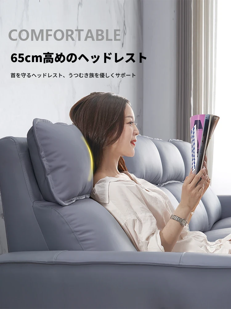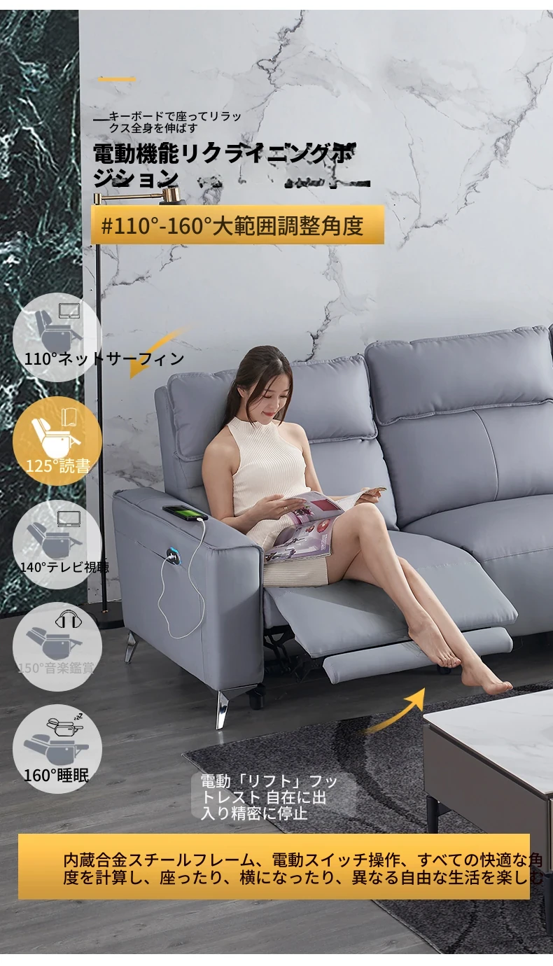 【3人用両側電動リクライニング+中央背もたれ多機能テーブル】長さ約2.59メートル