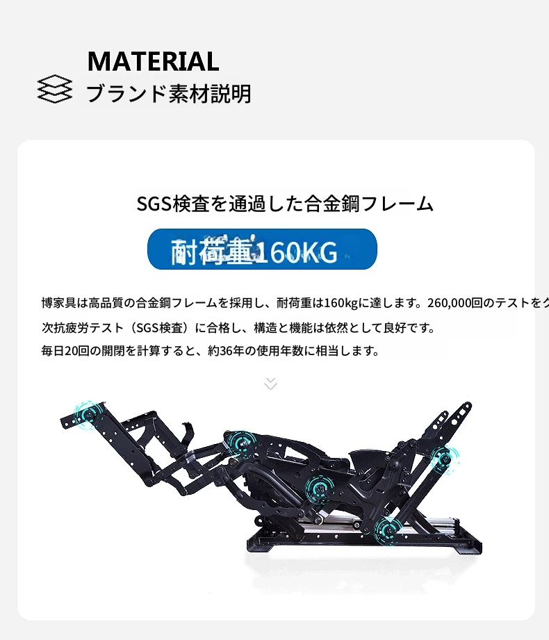 【3人用両側電動リクライニング+中央固定】長さ約2.59メートル