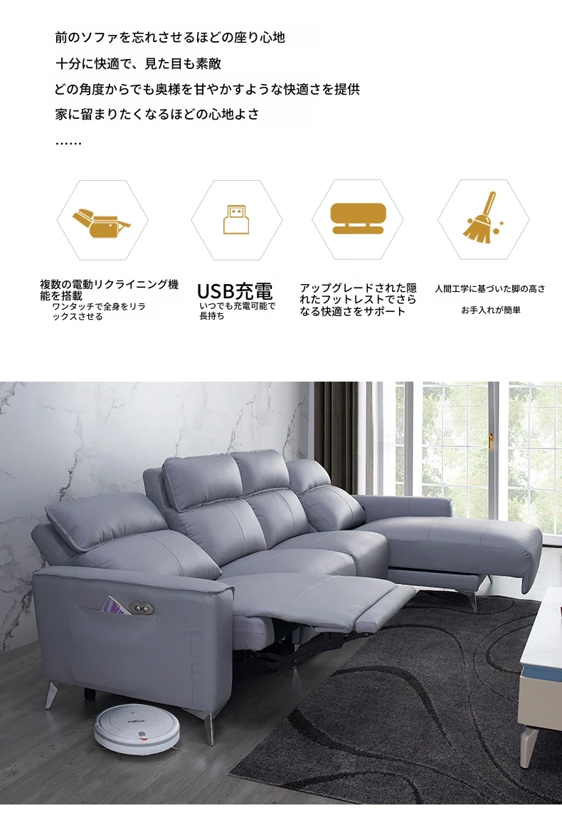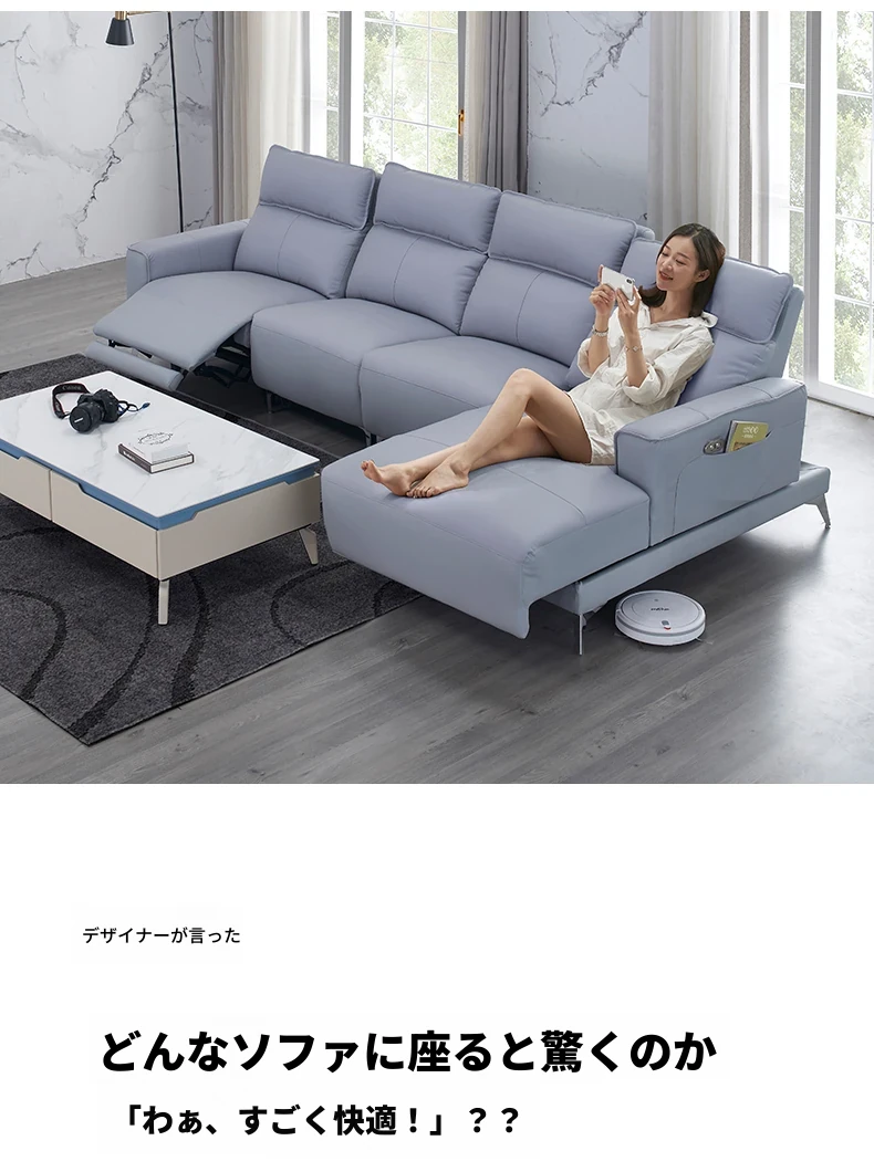 【4人用3電動リクライニング+1中央背もたれ多機能テーブル】長さ約3.34メートル