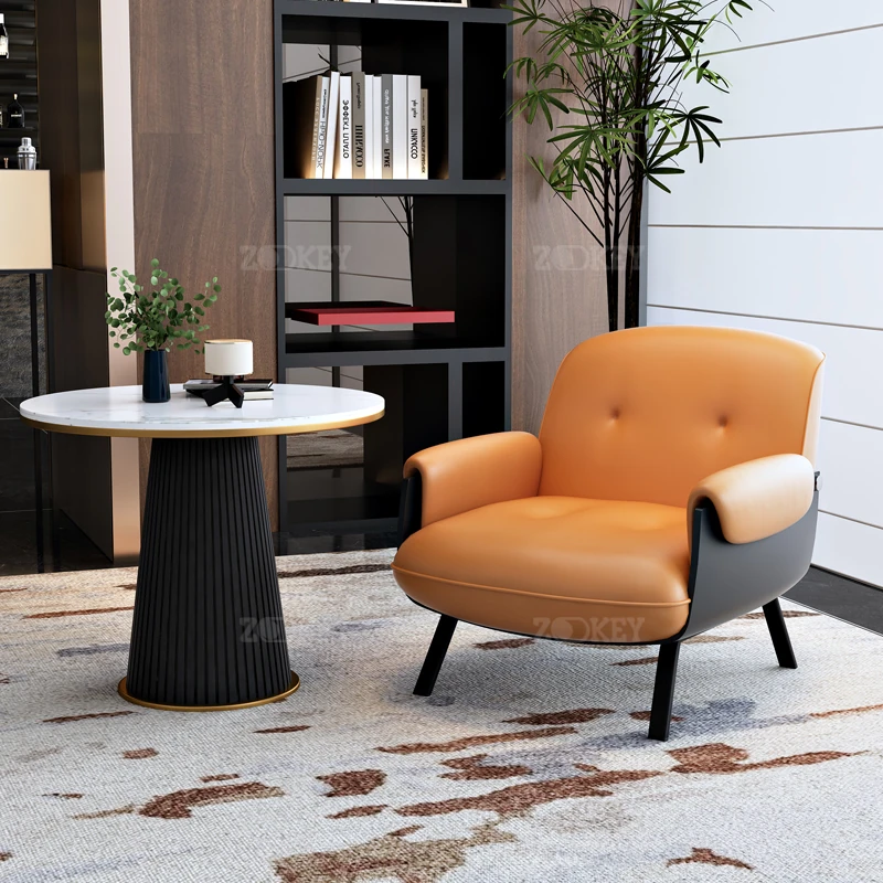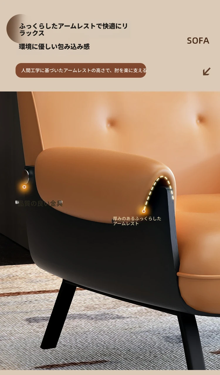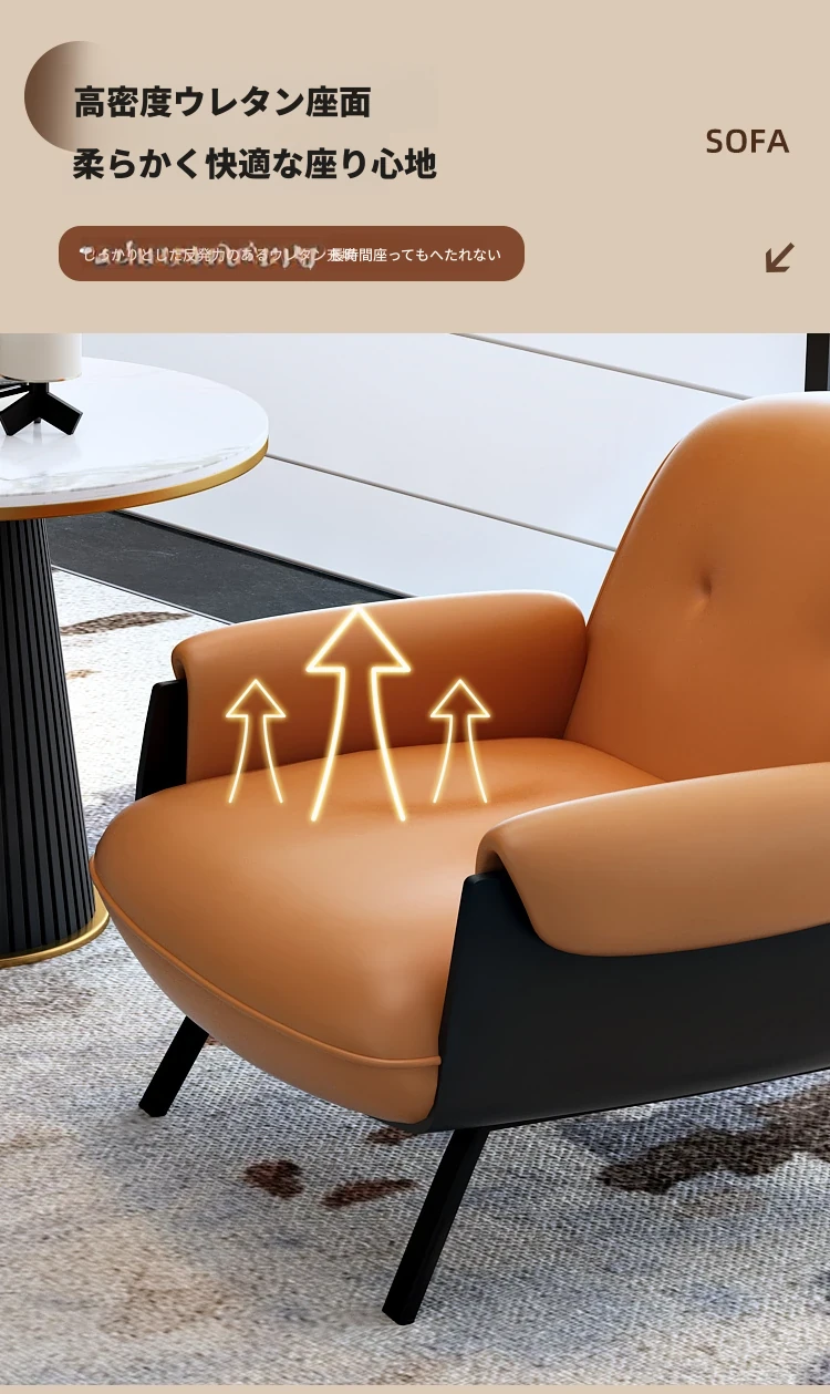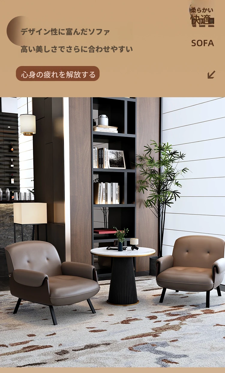 イタリアンラグジュアリーシングルソファ、ホテルの待機エリアに最適なデザイン!洒落たデザインで接客スペースを華やかに演出。美容院や洽談にもぴったりな快適な座り心地をお届けします。