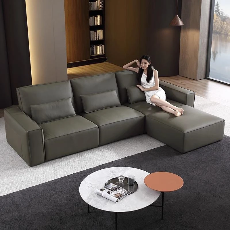 イタリアンミニマリズムの本革ソファ|モダンでラグジュアリーなデザイン|高品質の牛革使用|快適な背もたれと豆腐ブロック形状で、リビングをスタイリッシュに演出します!