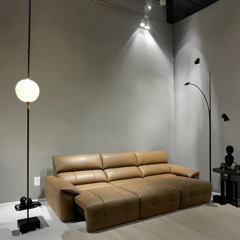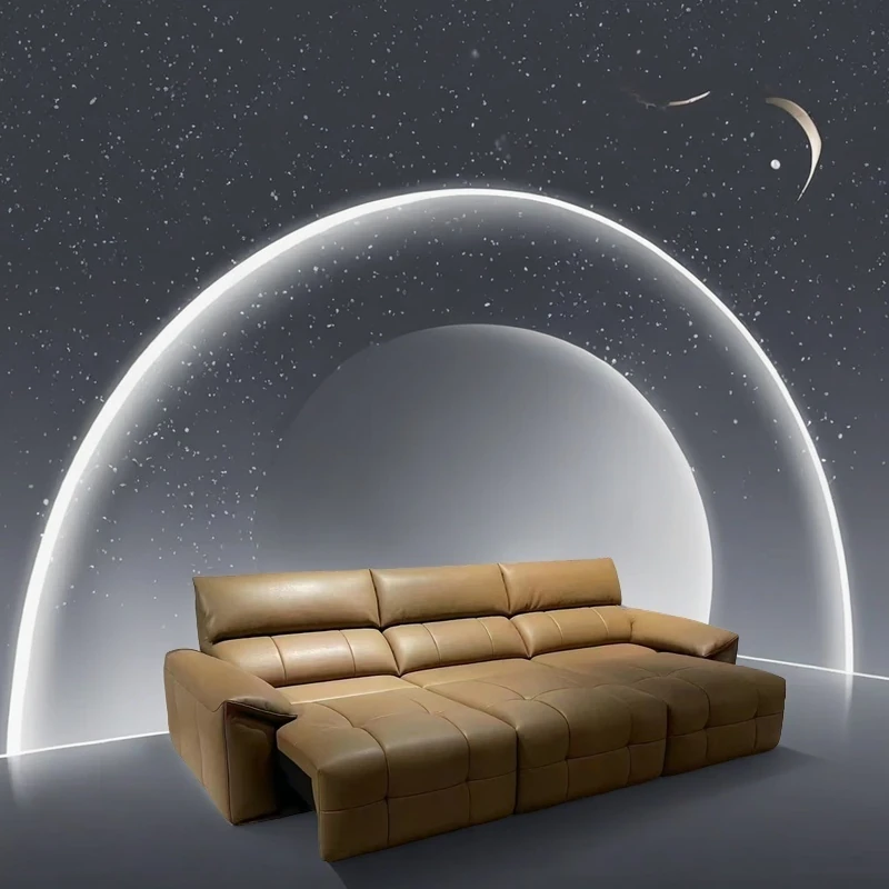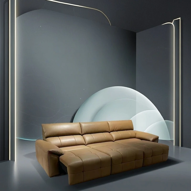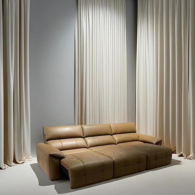 イタリアンミニマリズム本革電動ソファ|大リビングにぴったり!快適な電動ソファベッド、スムーズなスライド機能でリラックス空間を実現!