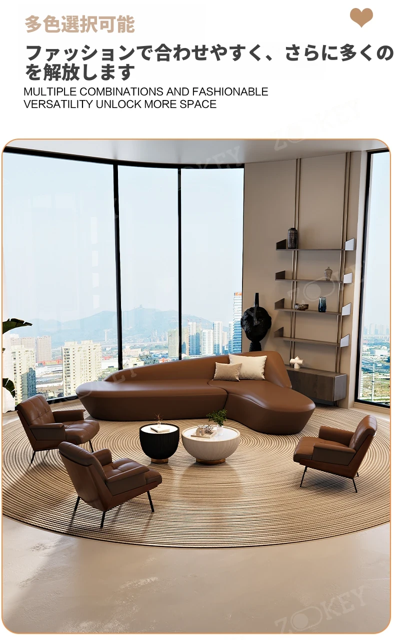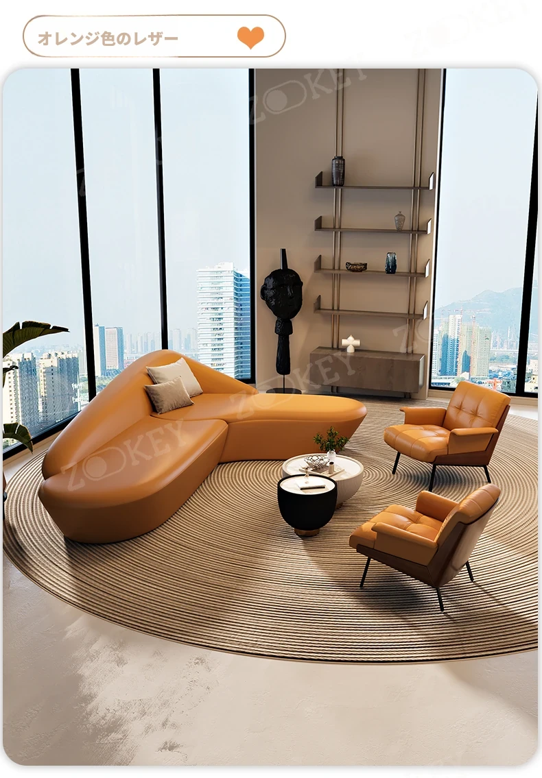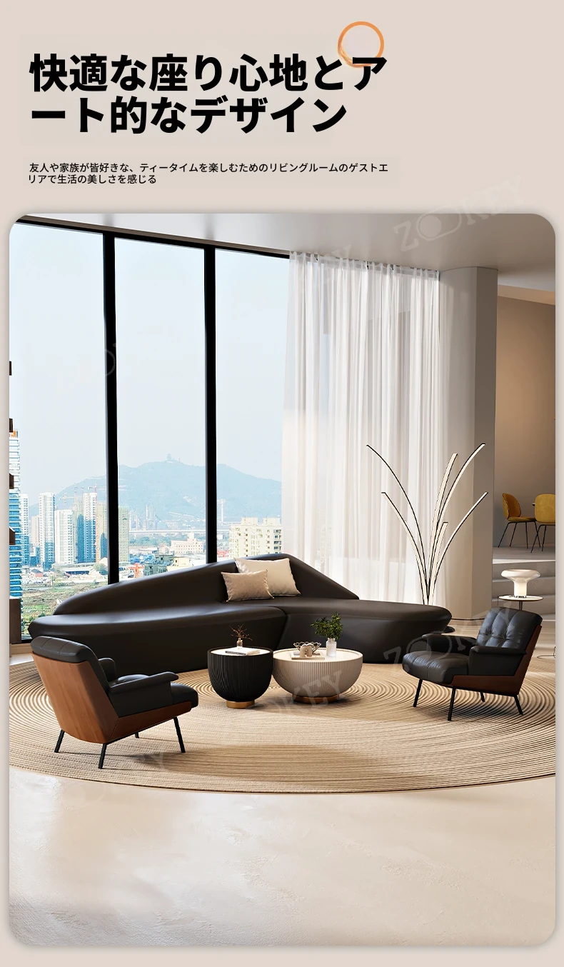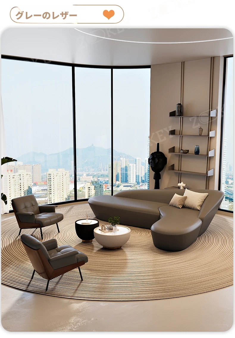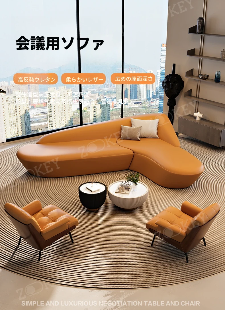 イタリアンミニマリストソファセット - ホテルロビーや美容院に最適!商業オフィスや会議室にもぴったりなスタイリッシュなデザインで、快適な空間を演出します。お客様を迎えるのに最適な一品です!