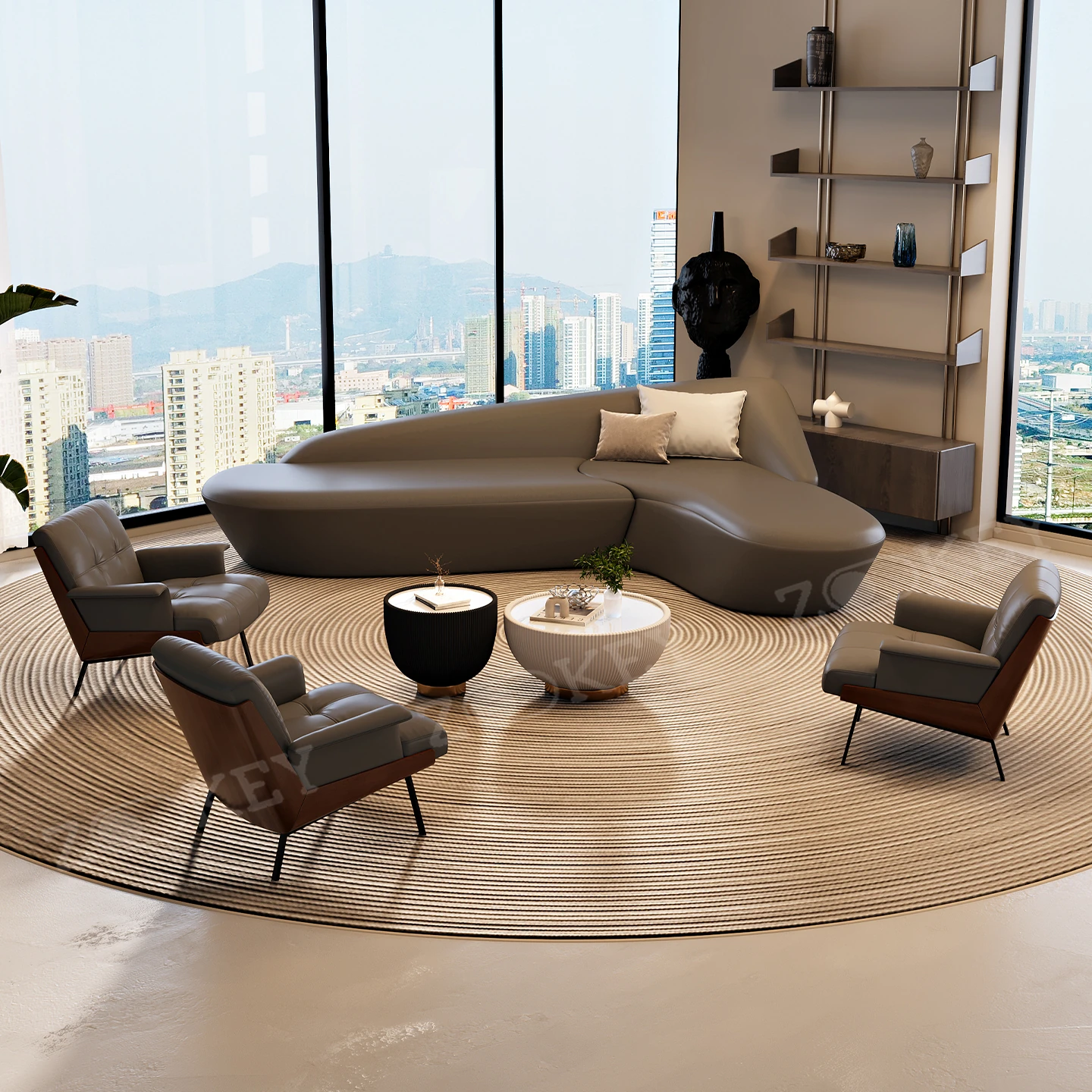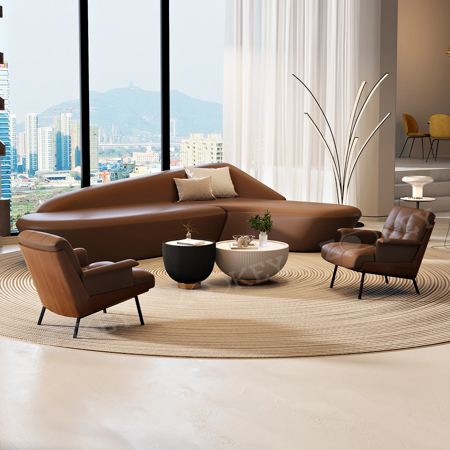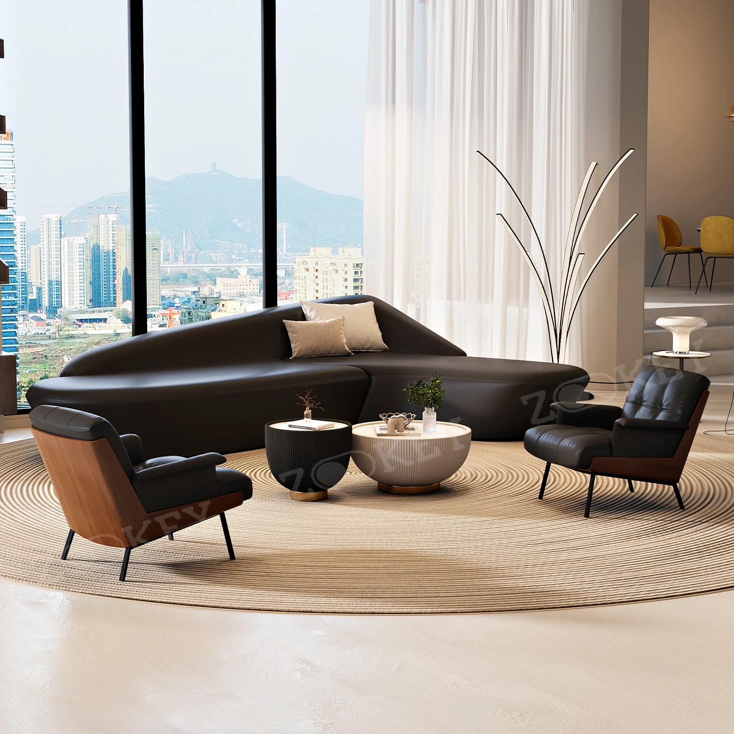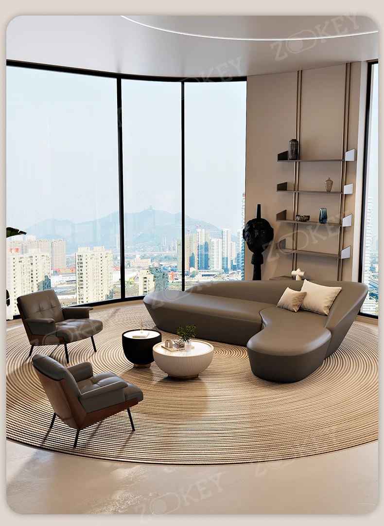 イタリアンミニマリストソファセット - ホテルロビーや美容院に最適!商業オフィスや会議室にもぴったりなスタイリッシュなデザインで、快適な空間を演出します。お客様を迎えるのに最適な一品です!