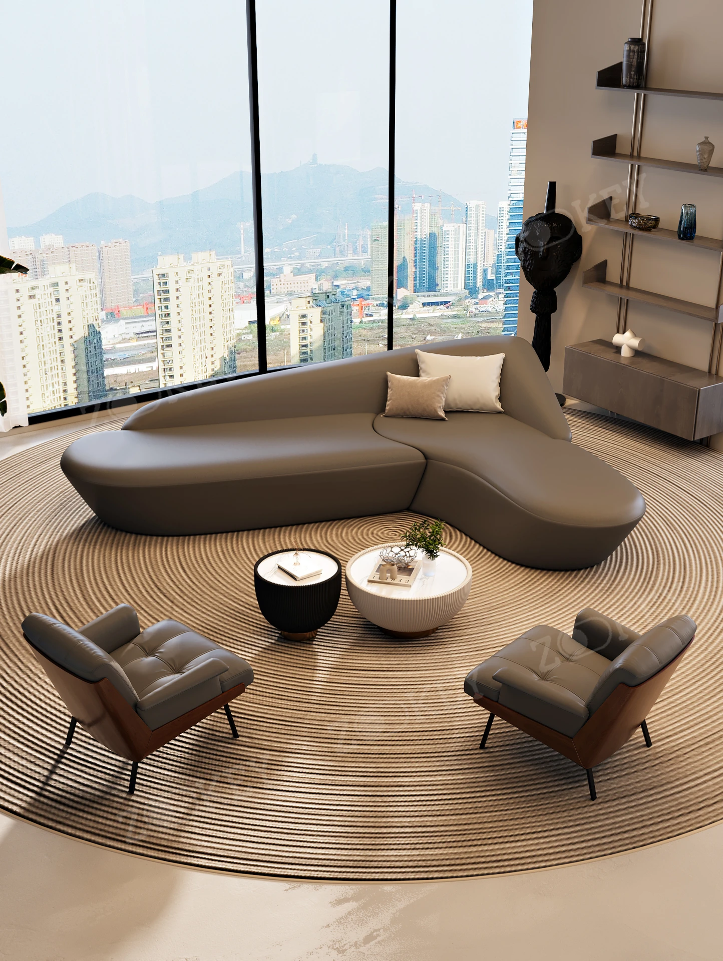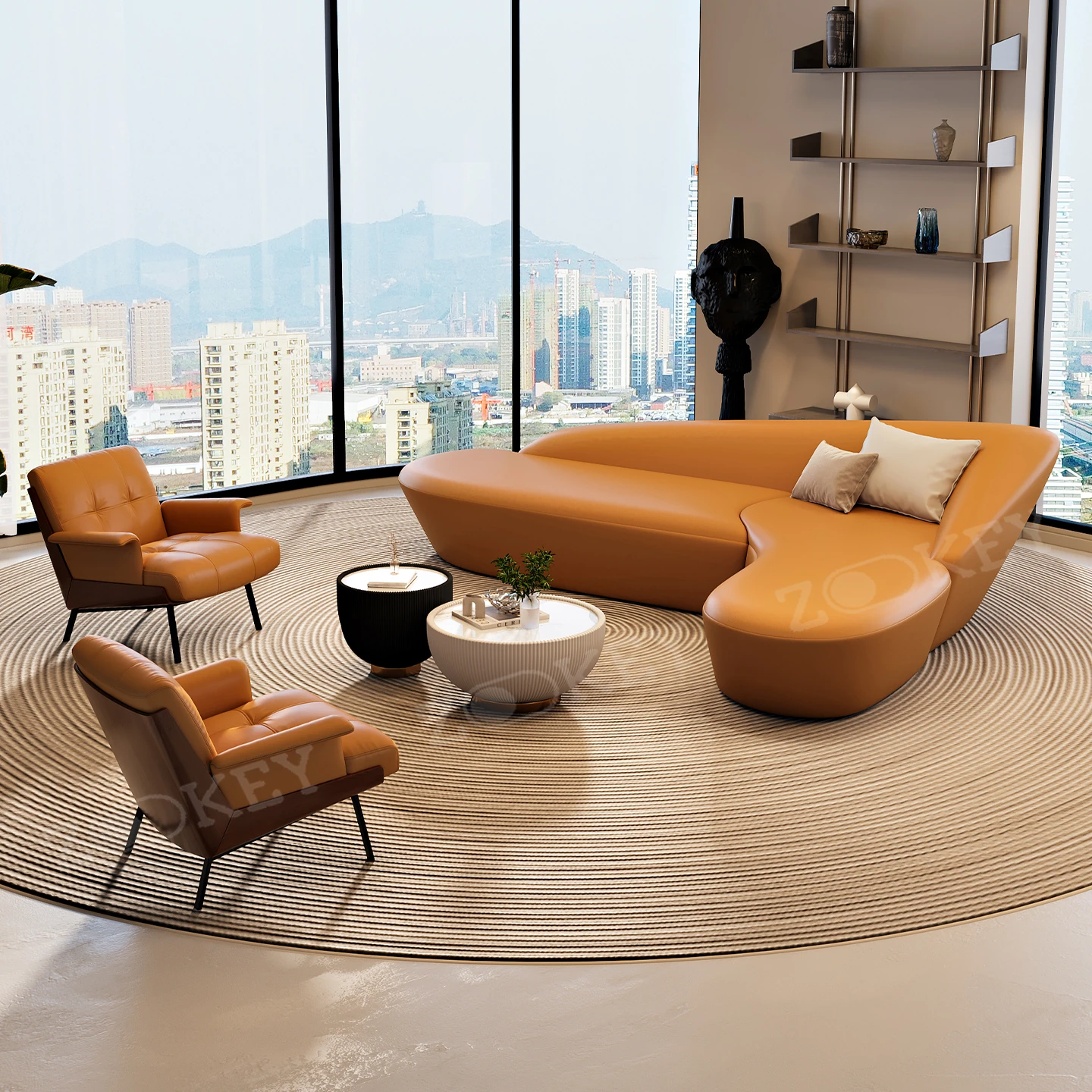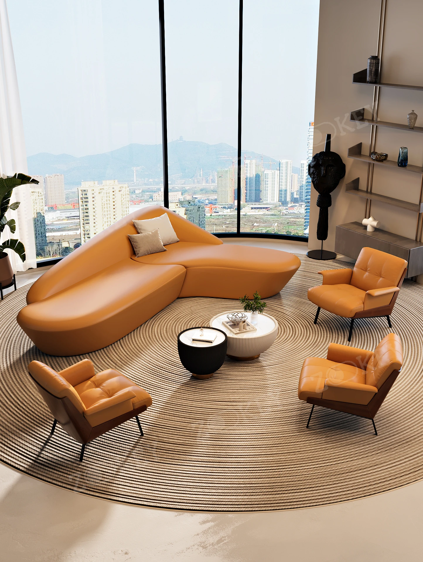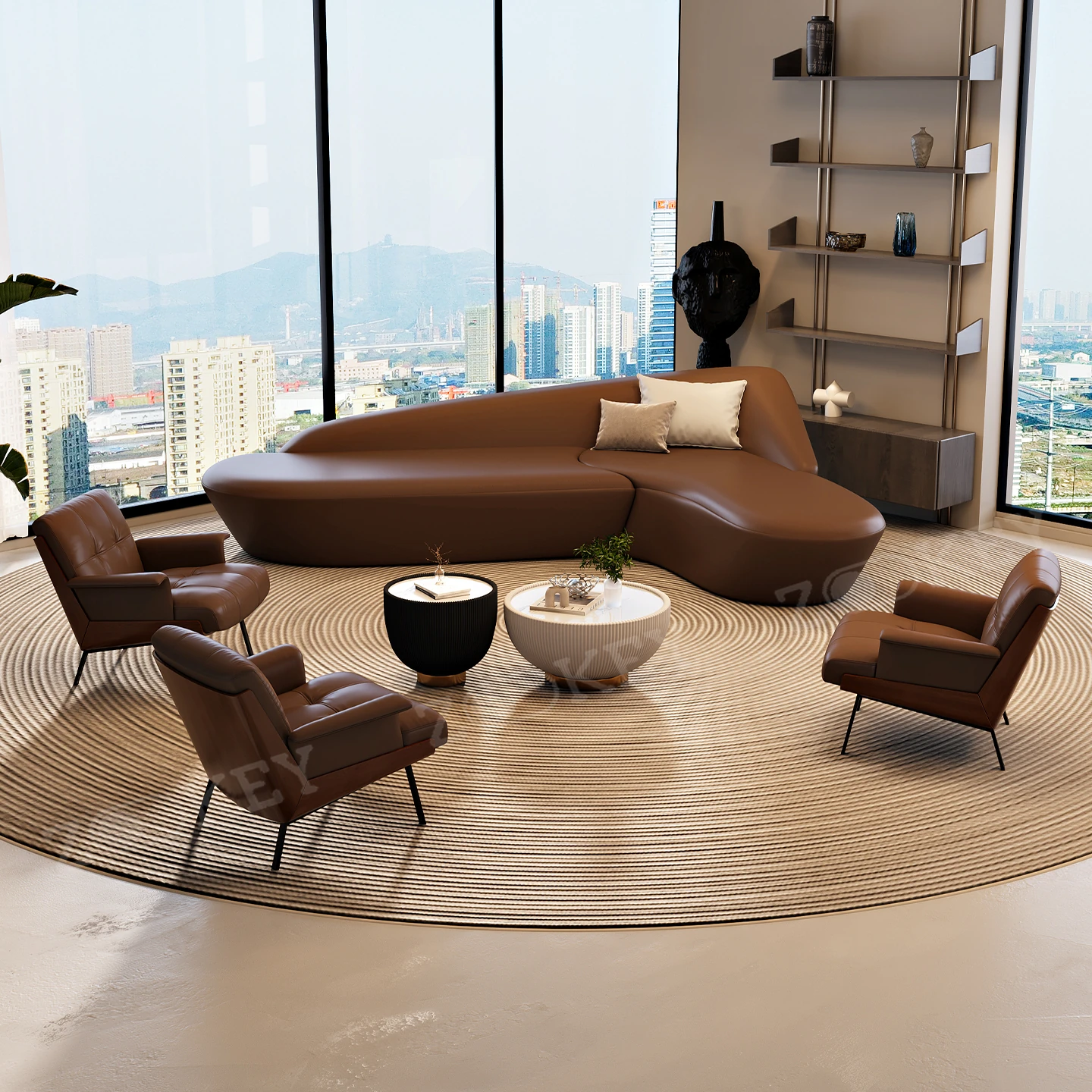 イタリアンミニマリストソファセット - ホテルロビーや美容院に最適!商業オフィスや会議室にもぴったりなスタイリッシュなデザインで、快適な空間を演出します。お客様を迎えるのに最適な一品です!