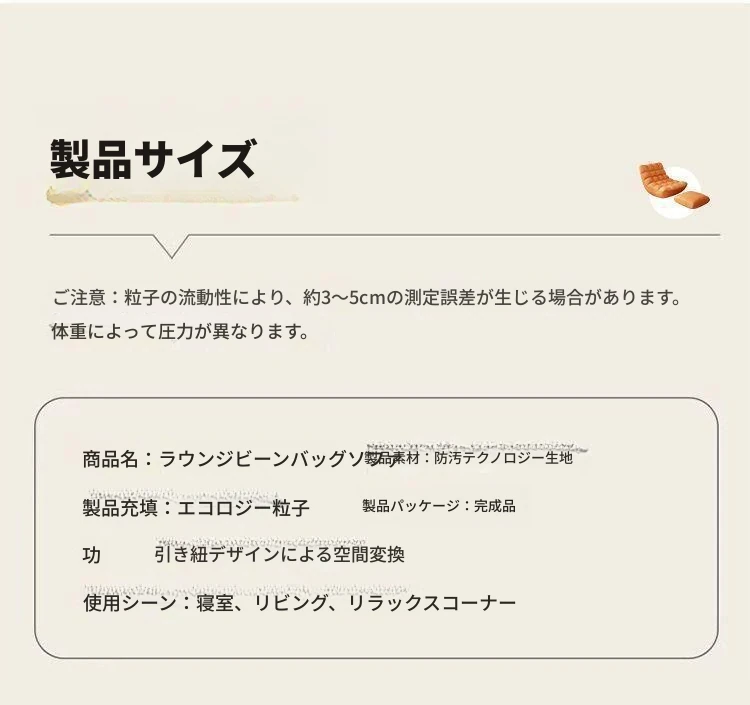 リラックス豆袋ソファ|寝転びもできる!畳スタイルの一人掛け椅子|バルコニーやリビングに最適な休憩用ソファ|快適な寝心地を実現するベッドチェア!