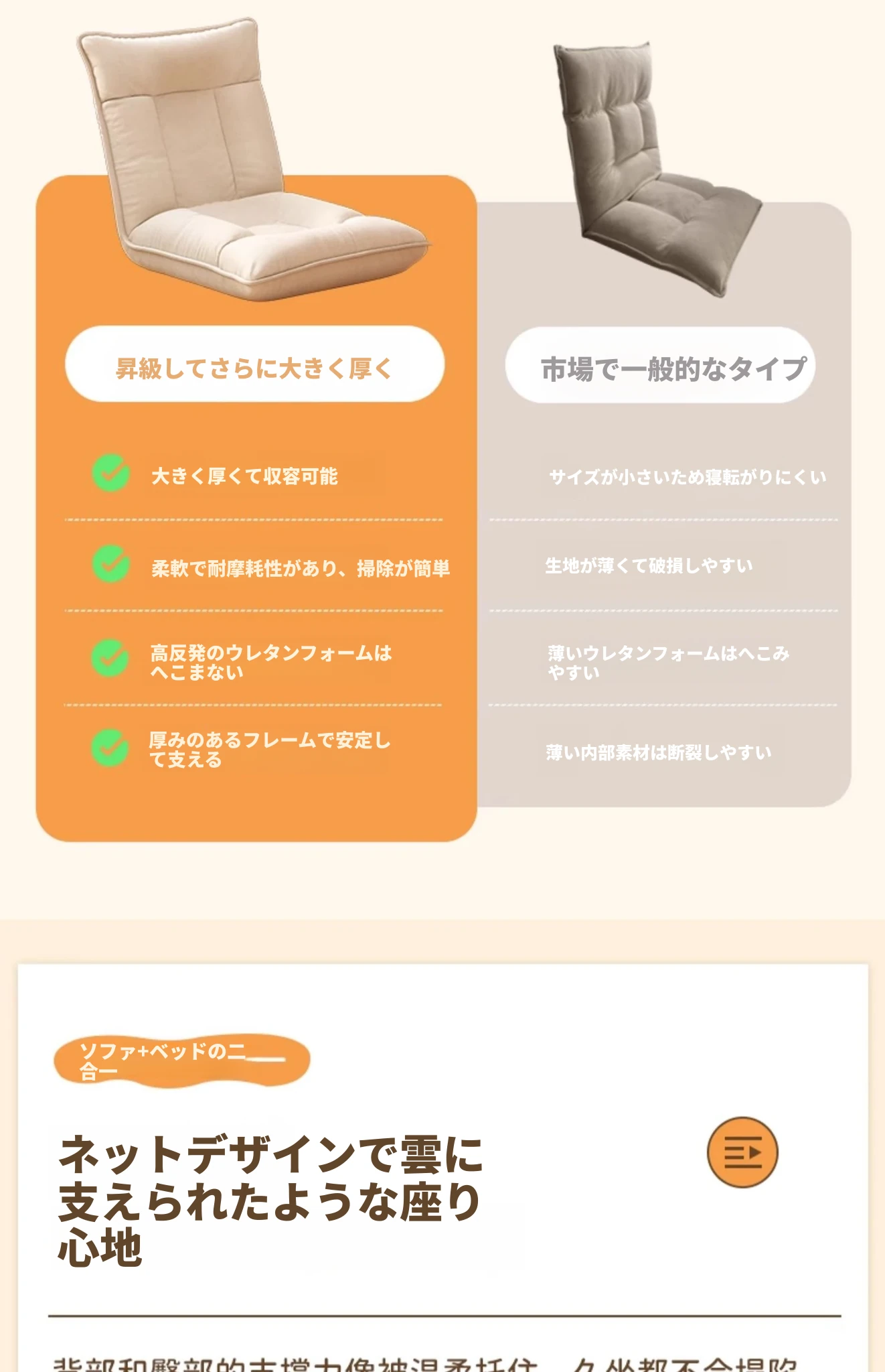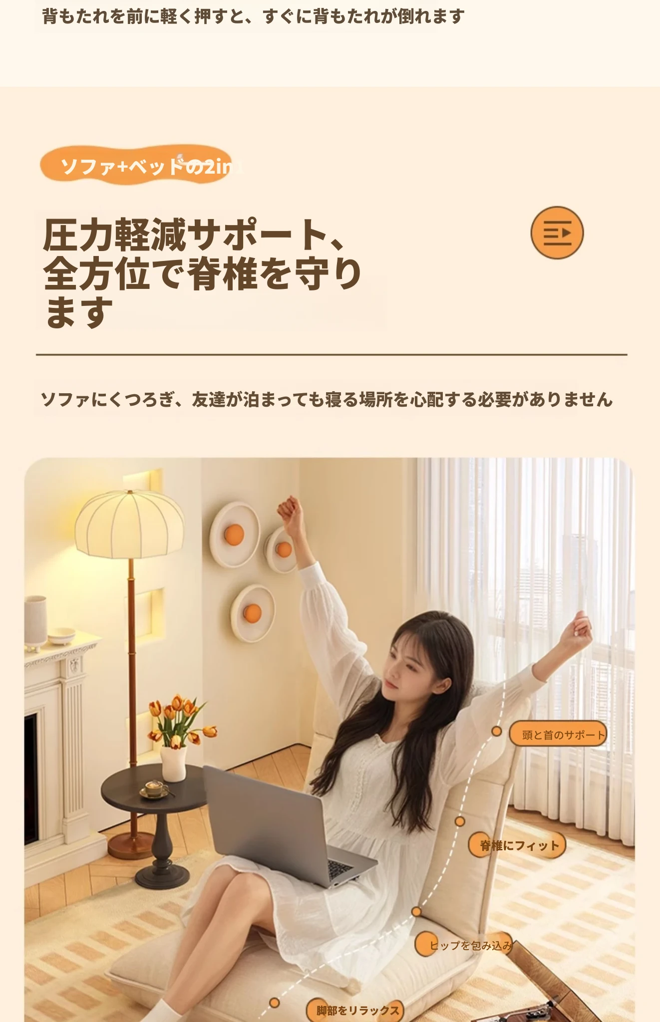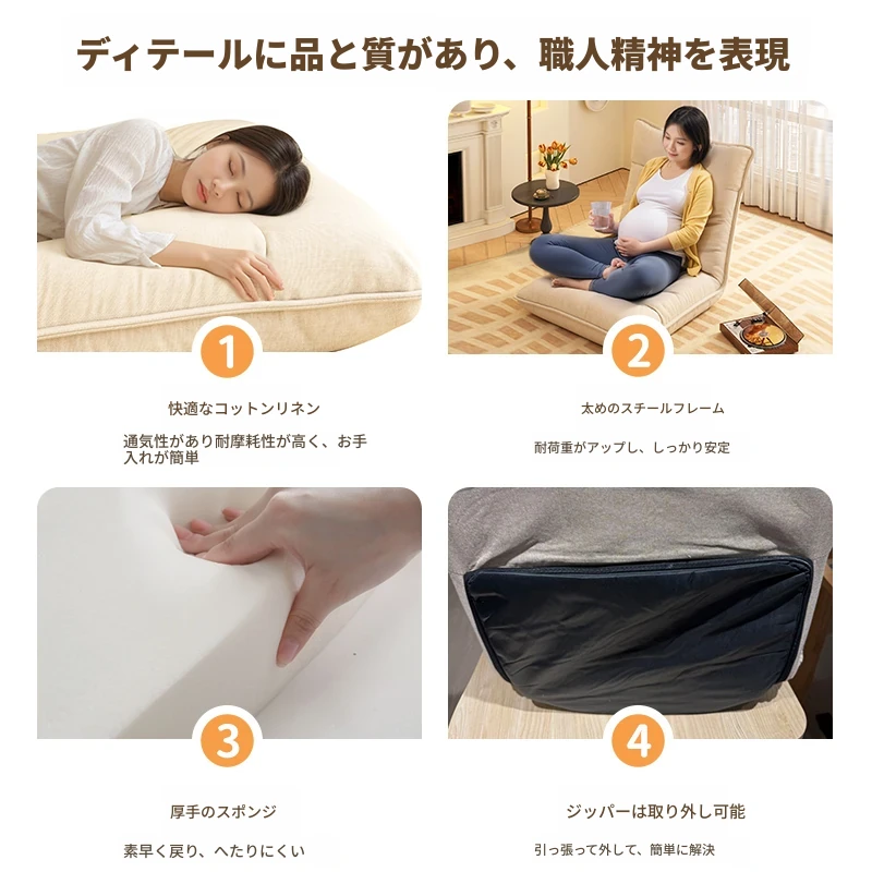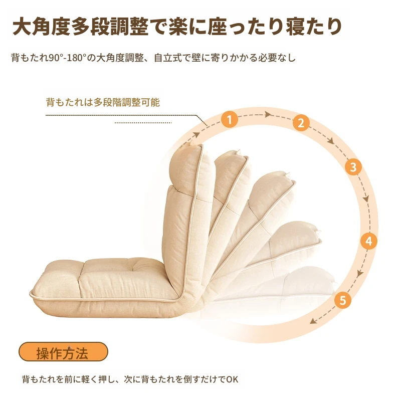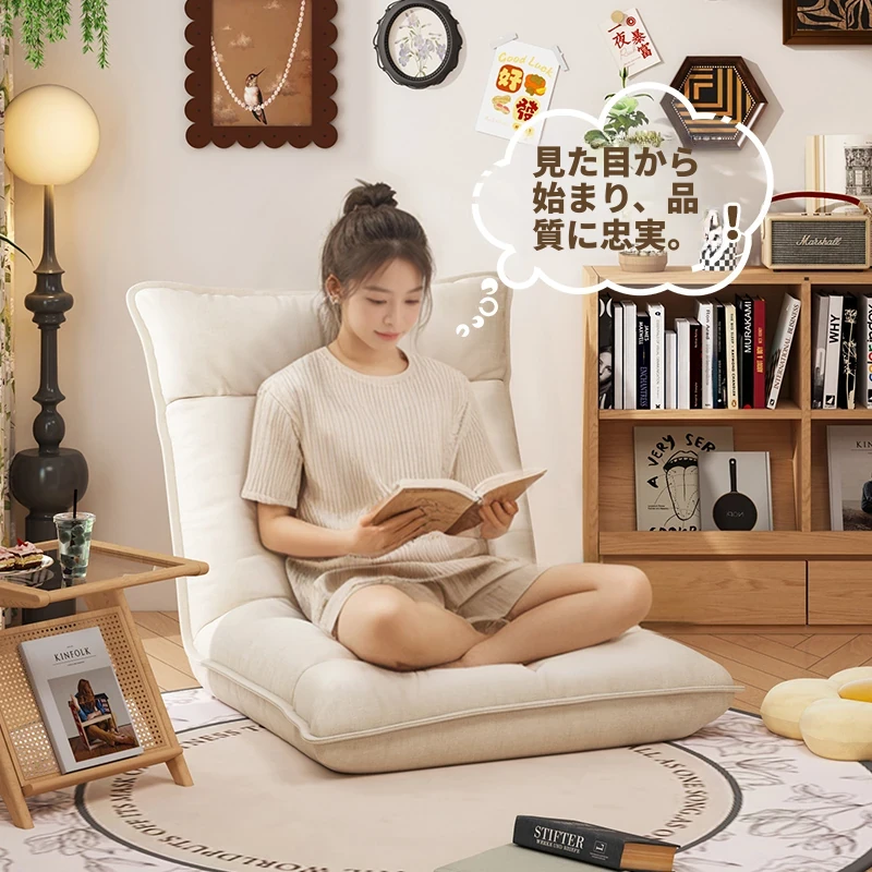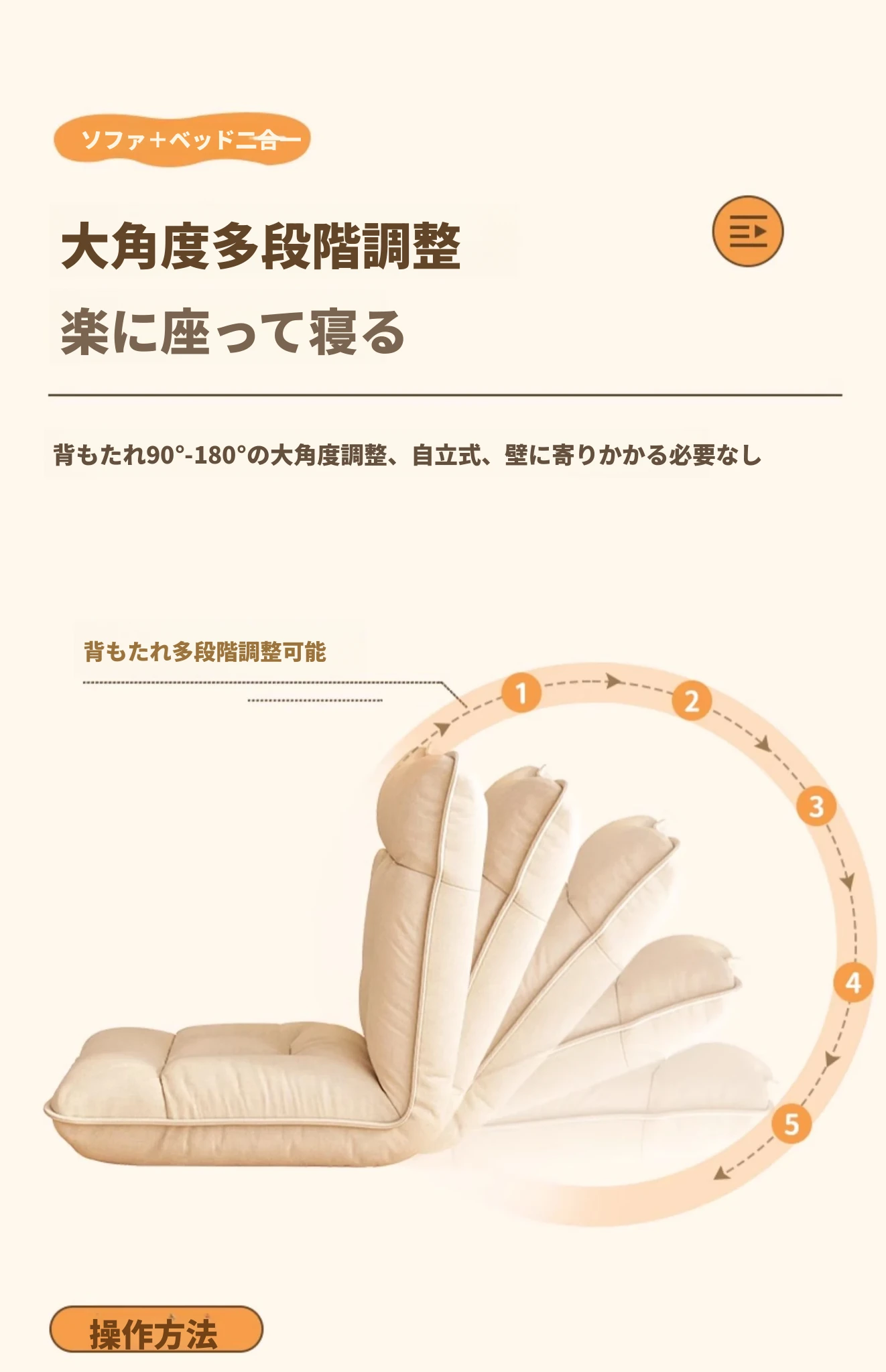 おしゃれで快適な一人用リクライニングソファ!寝室や小さなスペースにぴったりの折りたたみ式和風クッション。畳や窓辺に置いて、リラックスタイムを楽しもう!