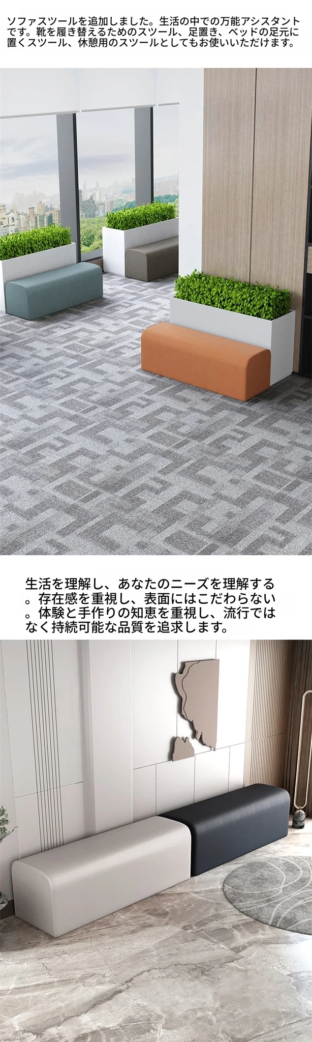ダンススタジオ用ロングベンチ|休憩スペースに最適なソファ|会社のロビーや受付にぴったり|おしゃれなアパレル店舗に最適なサロンベンチ