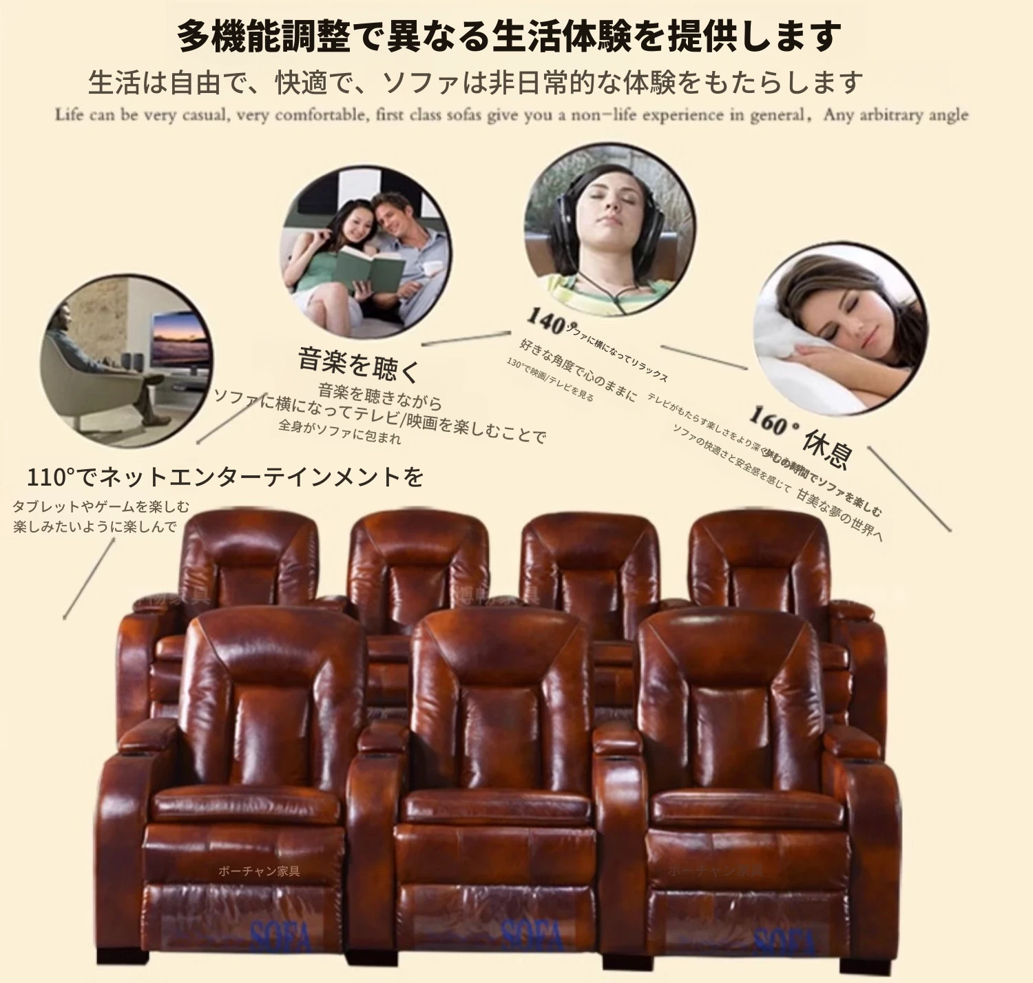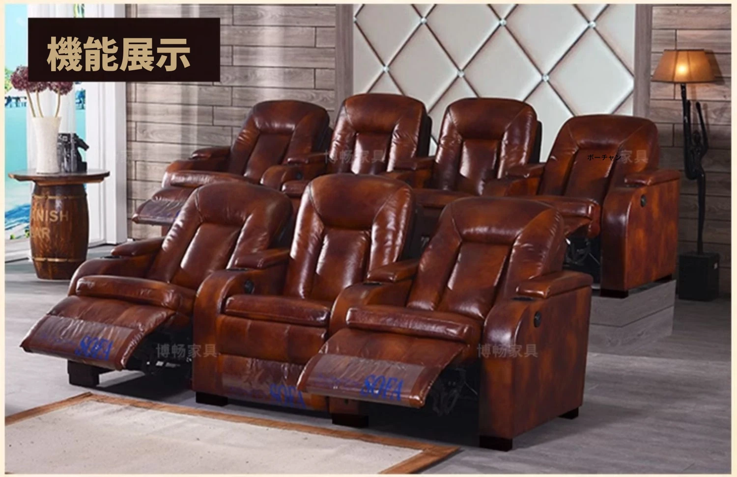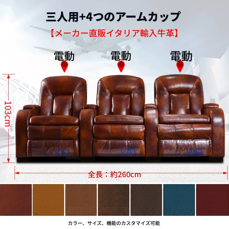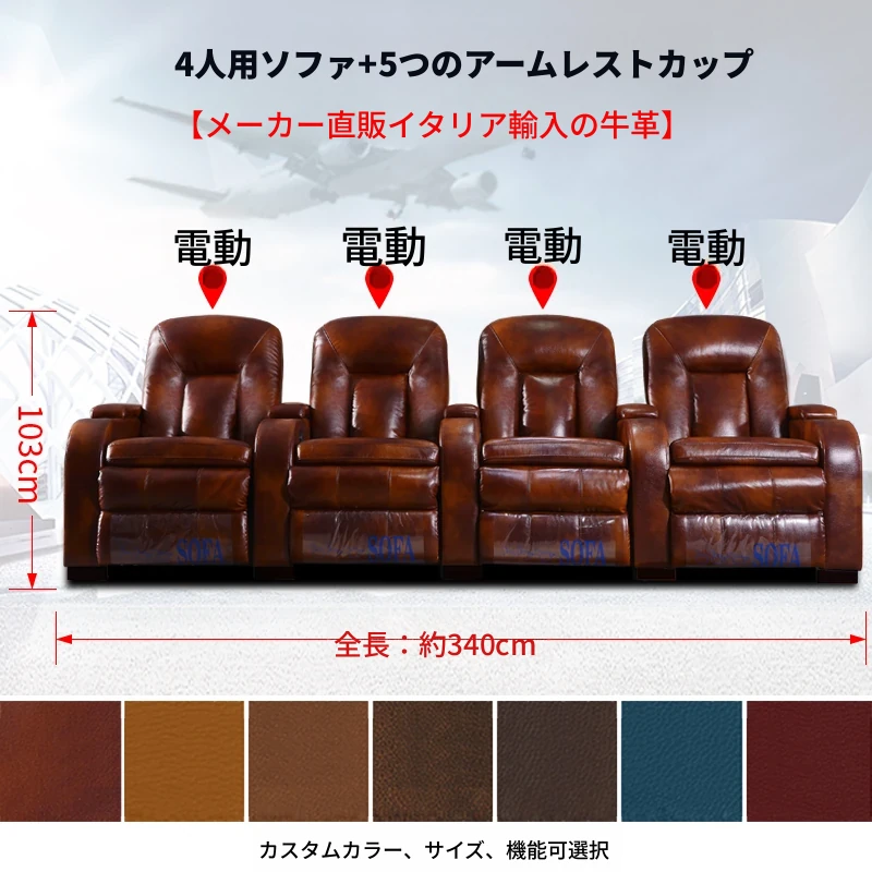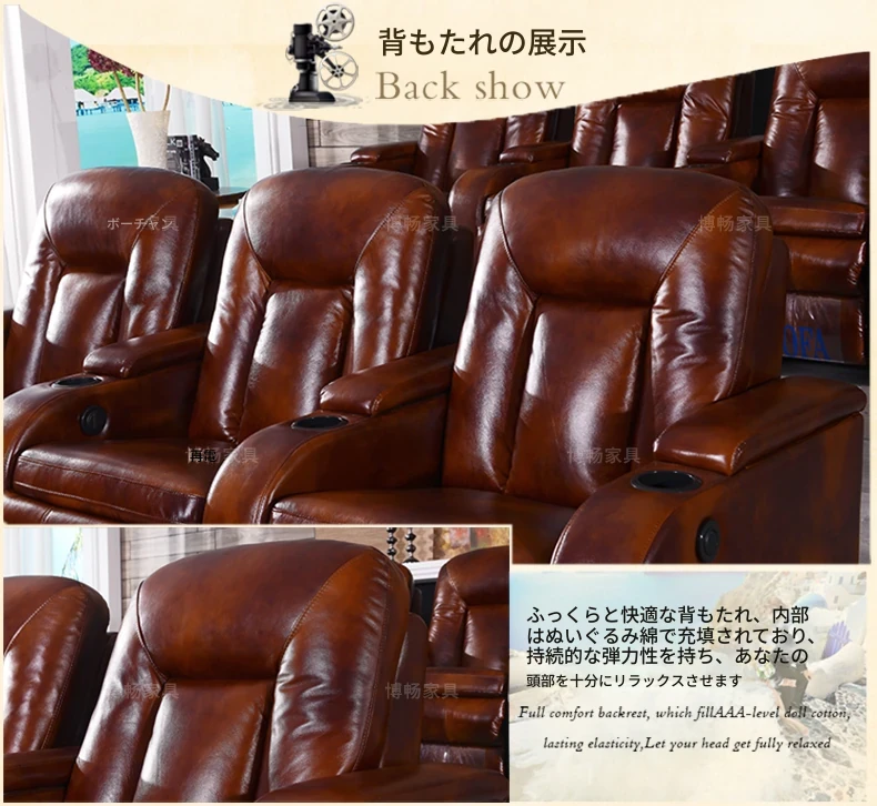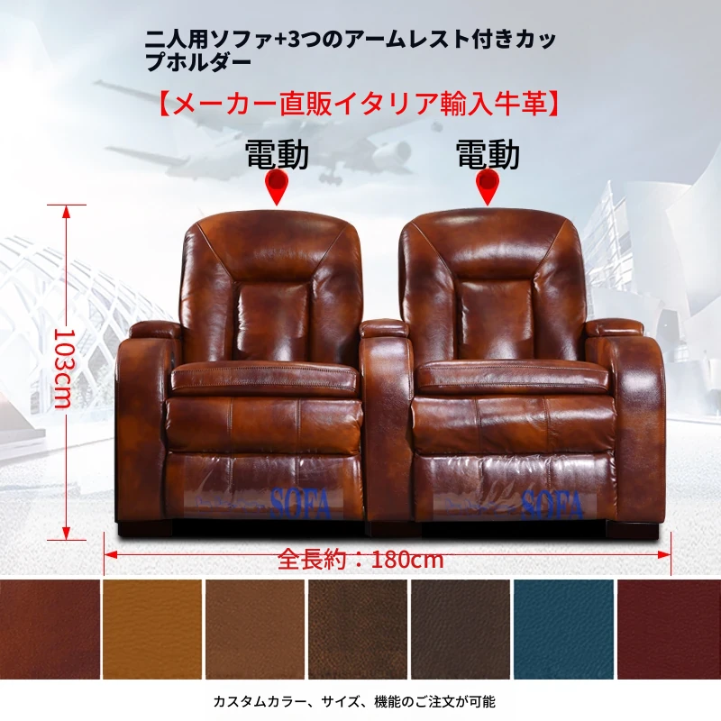 家庭用シアターソファー!プレミアム宇宙型マルチファンクションシート、電動レザー仕上げで、プライベートシネマルームに最適!快適さとスタイルを兼ね備えた、あなたの映画体験を次のレベルへと引き上げます。