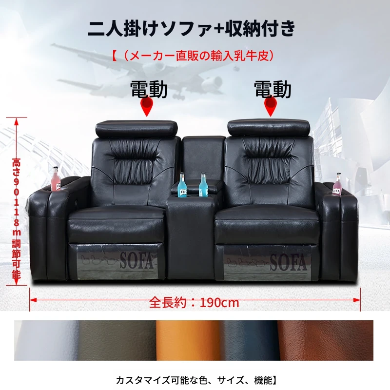 イタリアン厚皮【2人用+収納テーブル】全電動