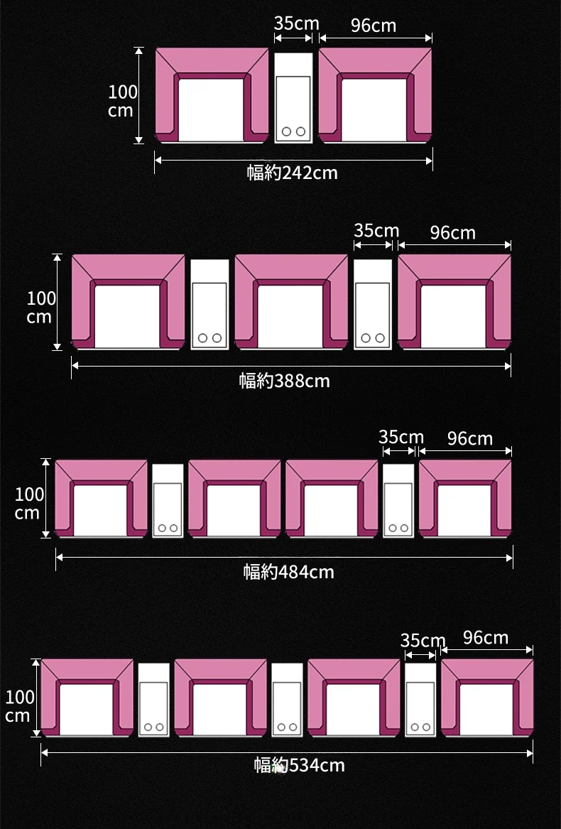 輸入厚皮【3人用+2独立テーブル】全電動伸縮