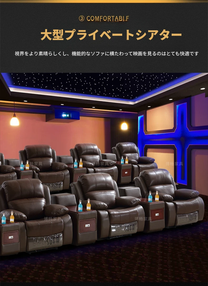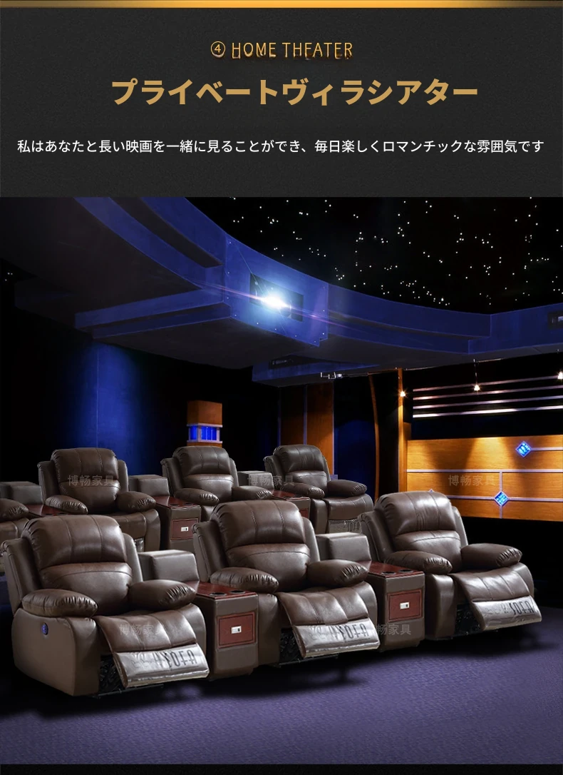 高級別墅用シアターソファ|映画館のような体験を実現する電動多機能キャビン|本革使用|贅沢な空間で、極上の映像と音響を楽しめます!