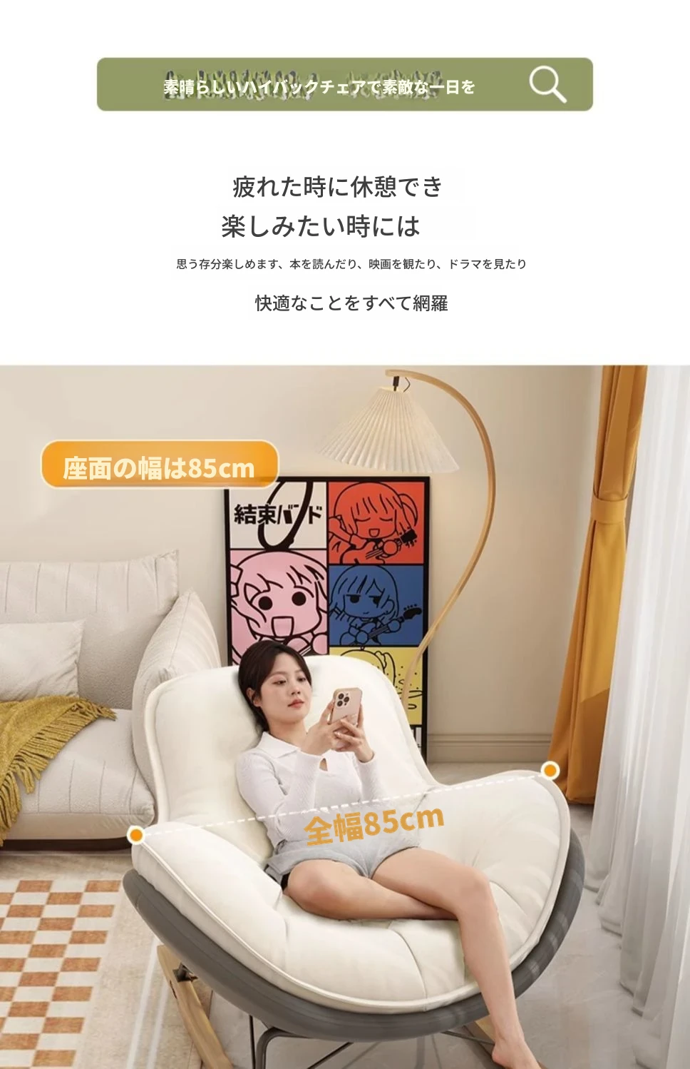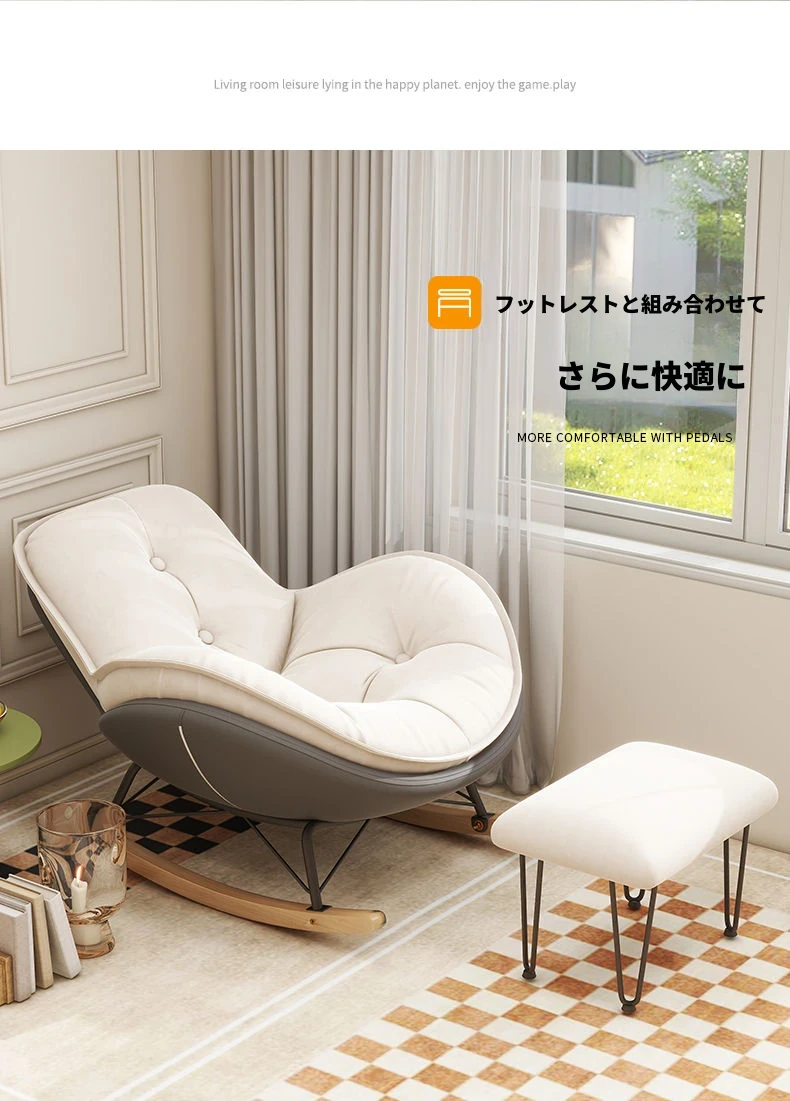 深灰色テクノロジー布+米白色ベルベット【快適モデル】ペンギンチェアフットレスト付き(ヒット99%)