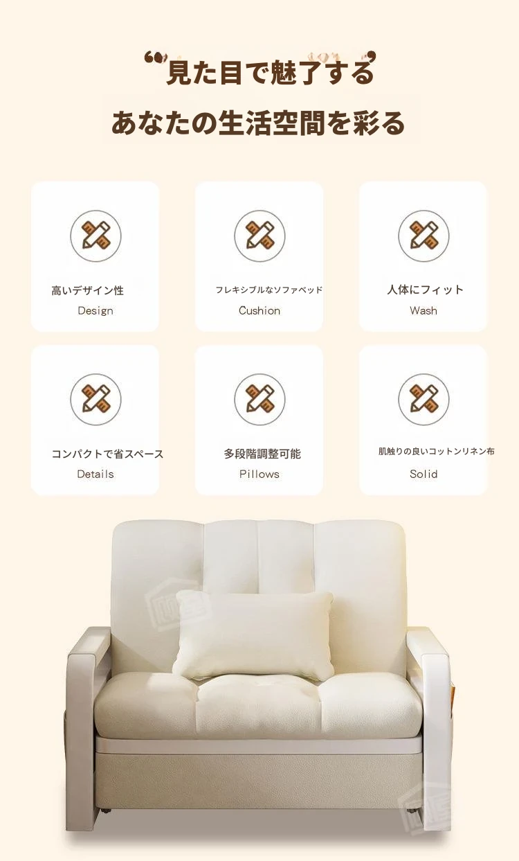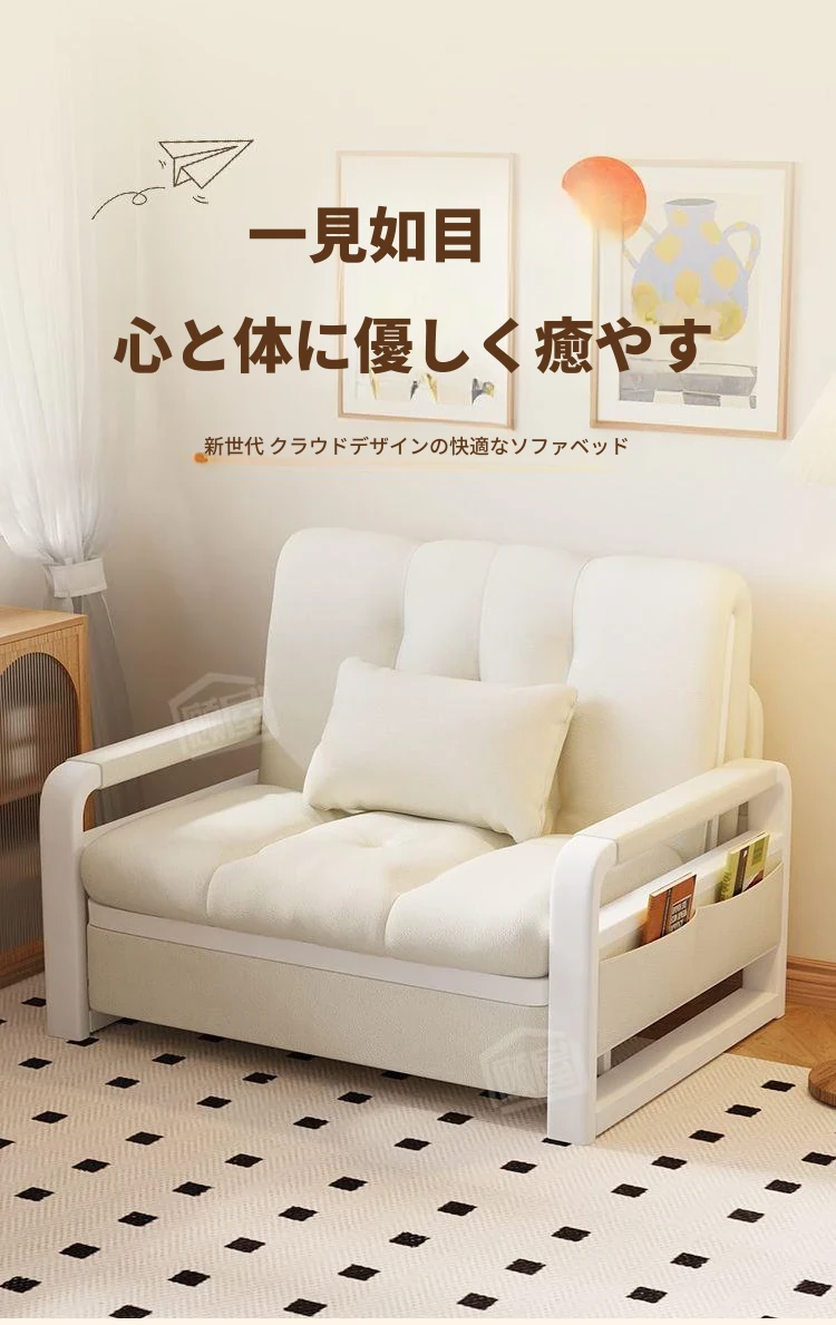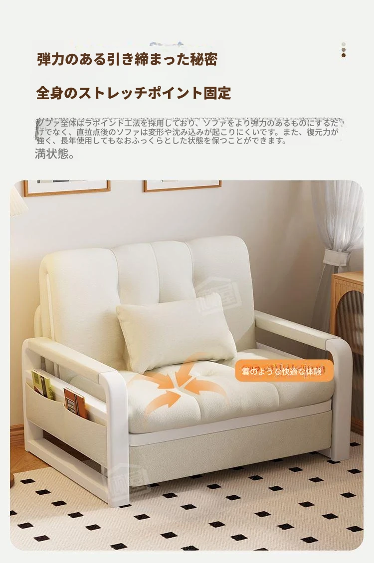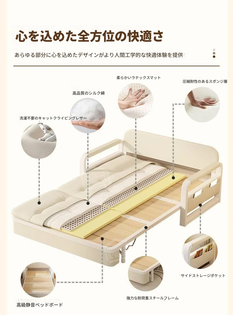 【通気性ラテックスタイプ 幅0.82m】アイボリー+収納付き