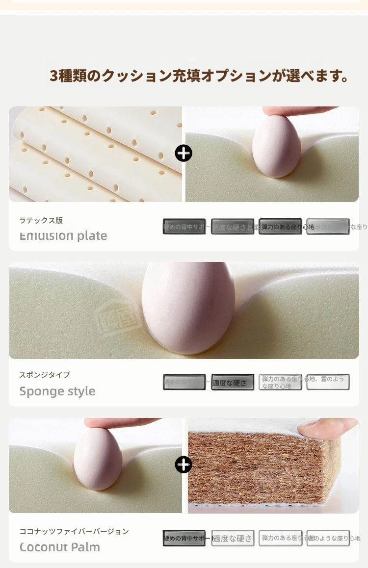 【背中サポート椰子繊維タイプ 幅1.08m】アイボリー+収納付き