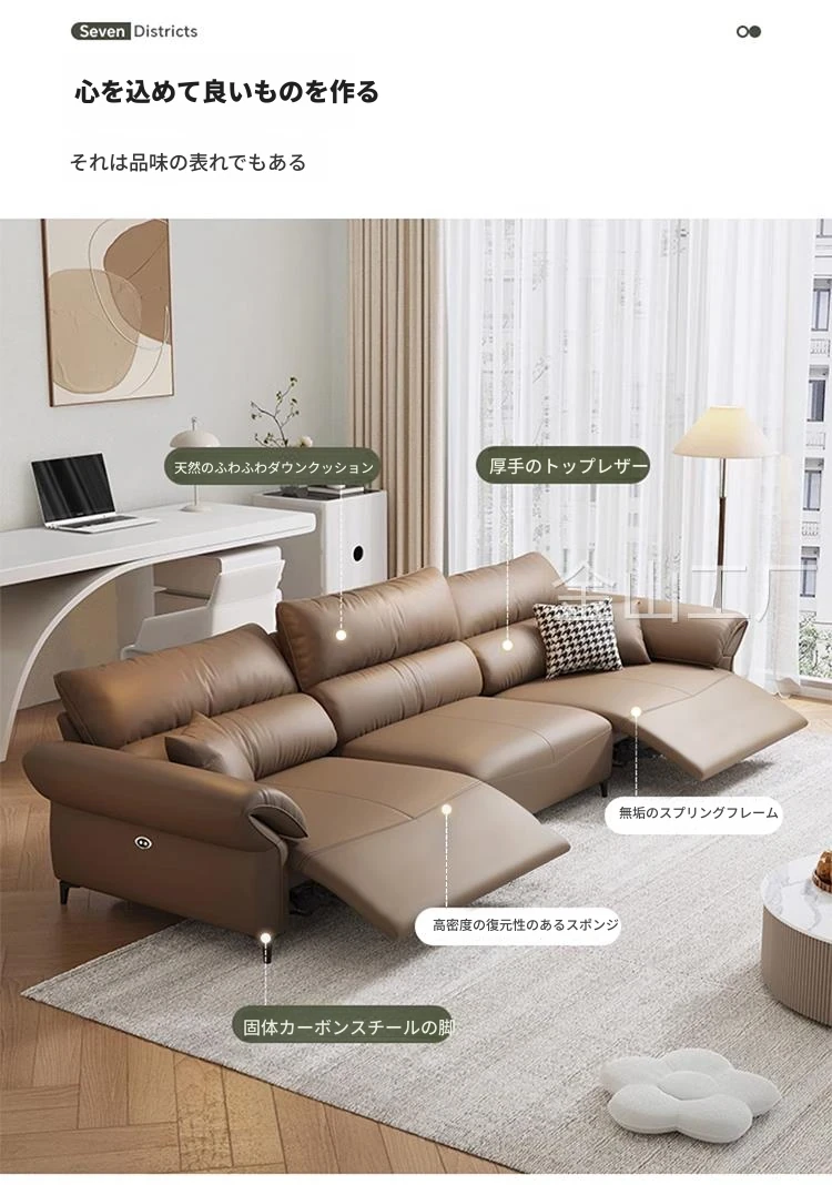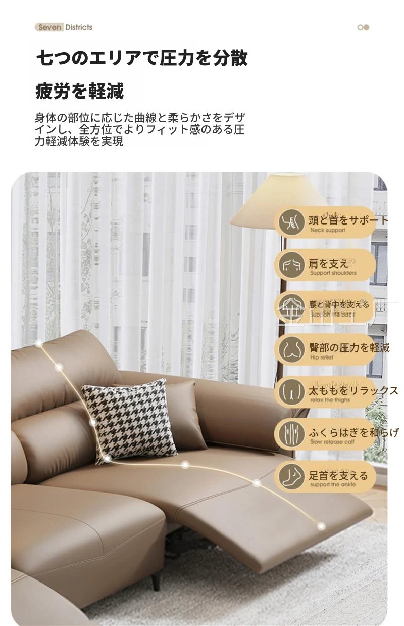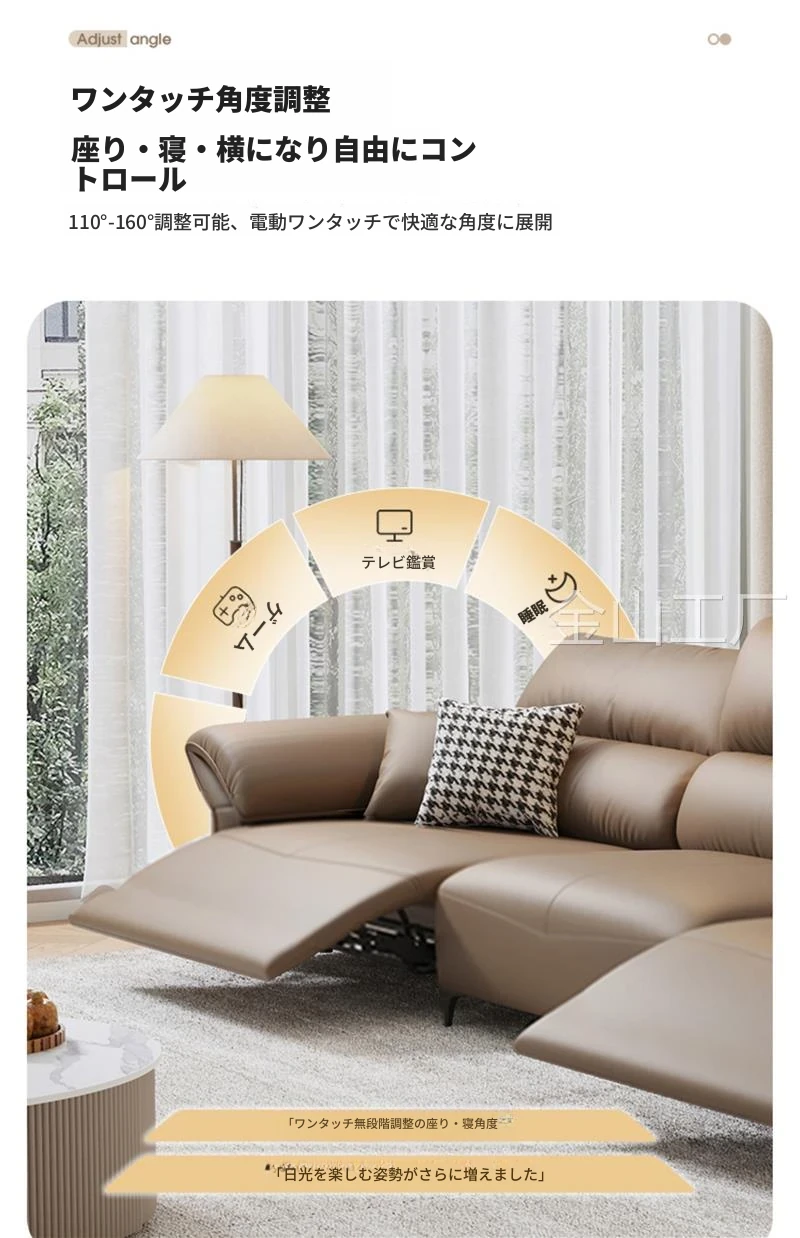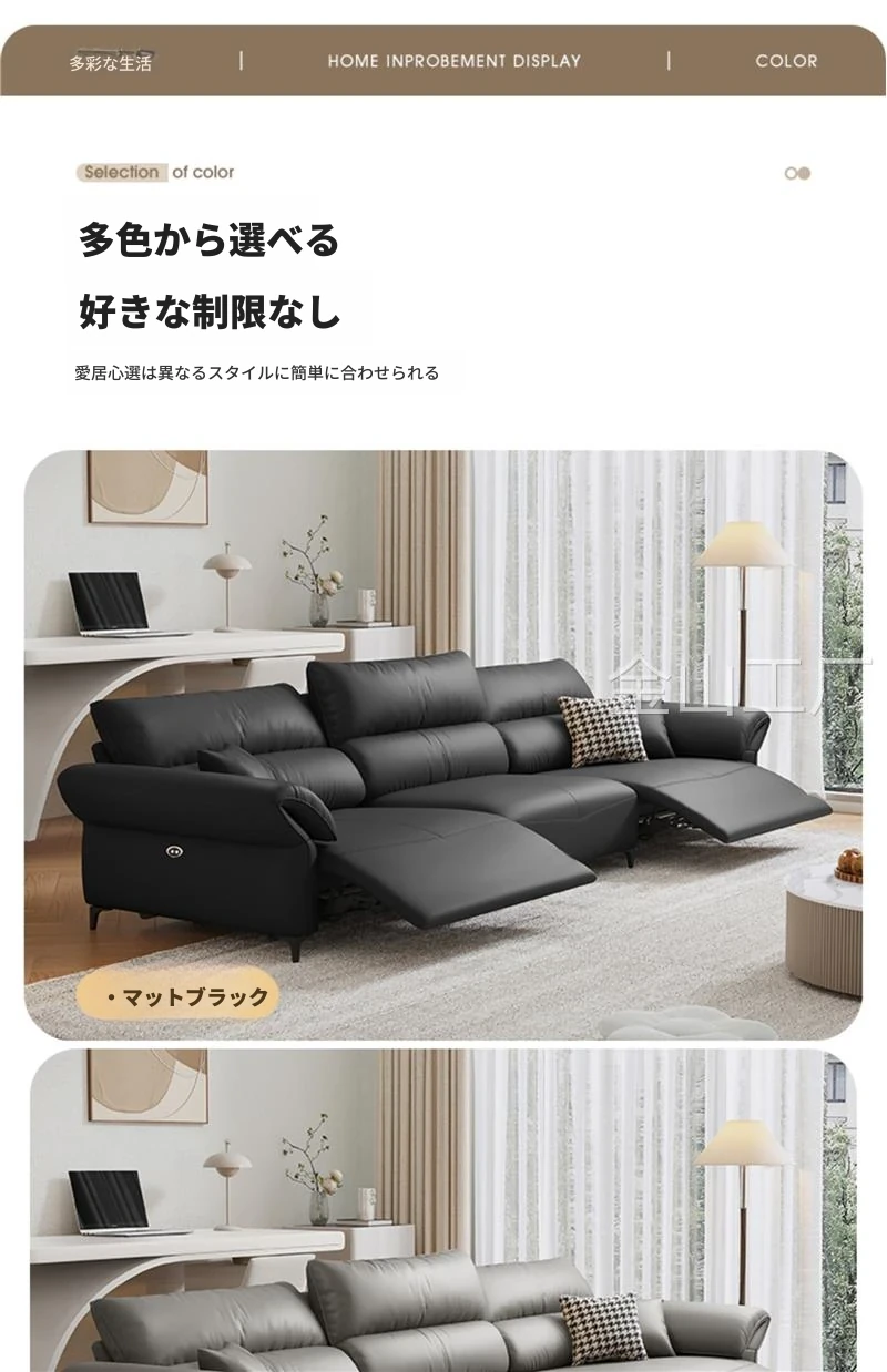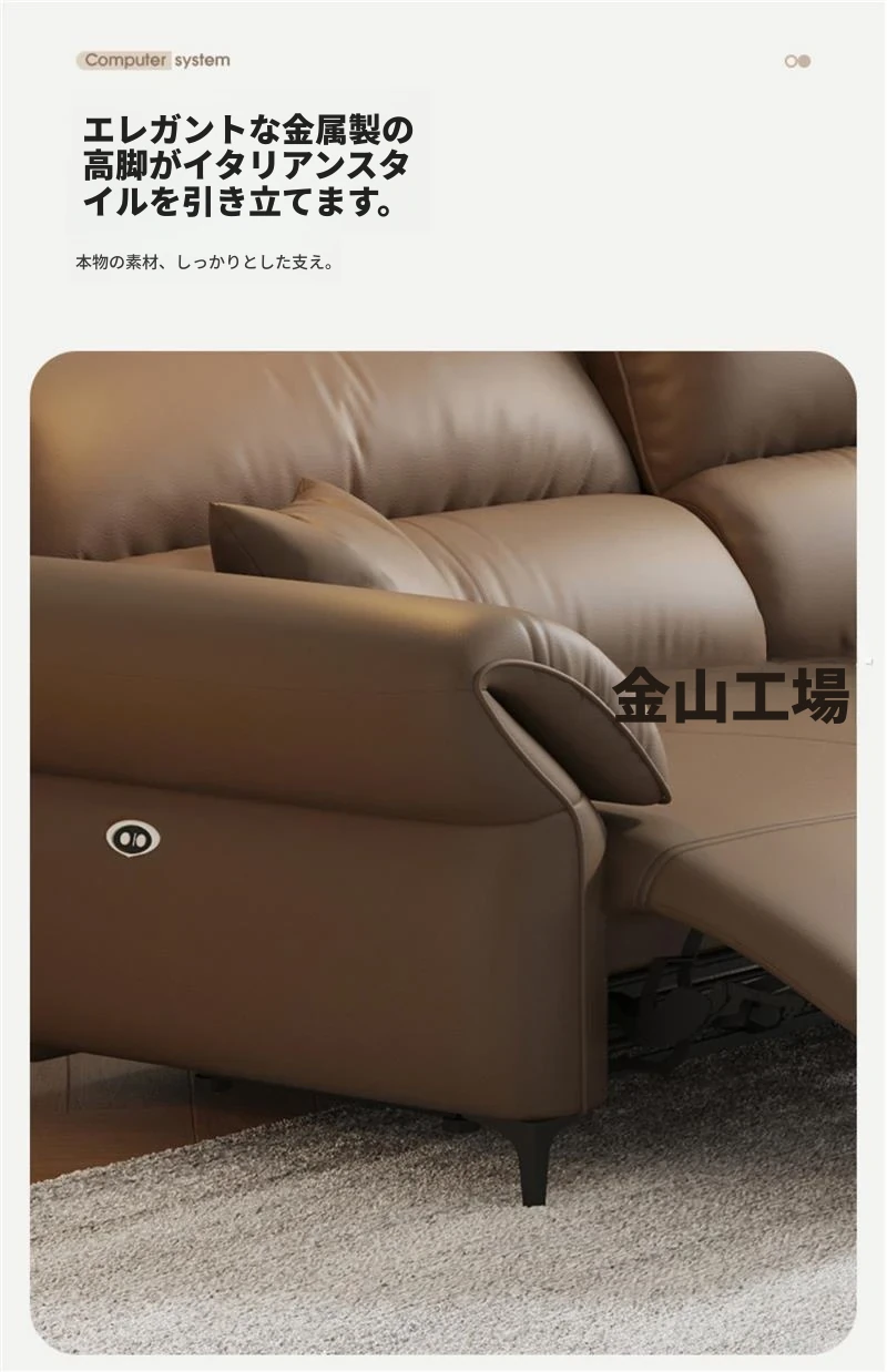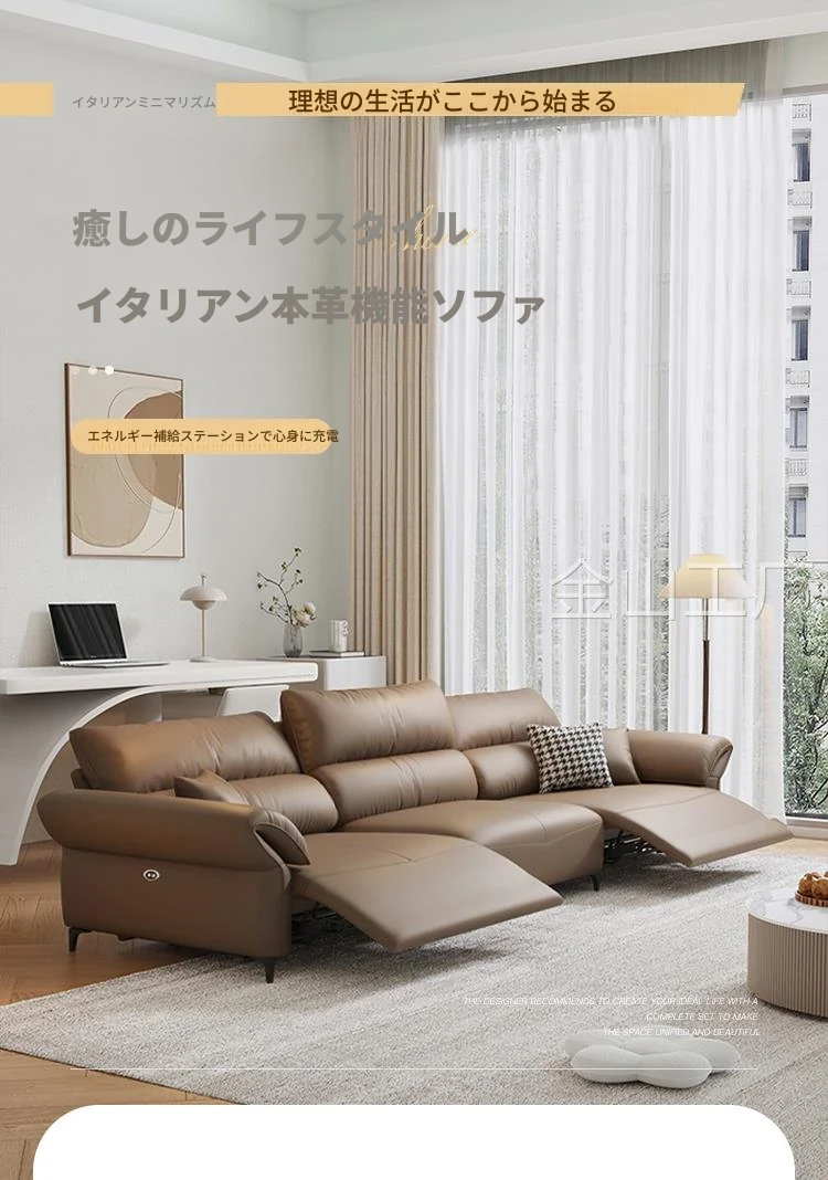 電動機能付き本革ソファ|高級感あふれるイタリアンデザイン|調整可能なモダンリビング用一等席ソファ|上質な牛革使用で贅沢なひとときを提供します!