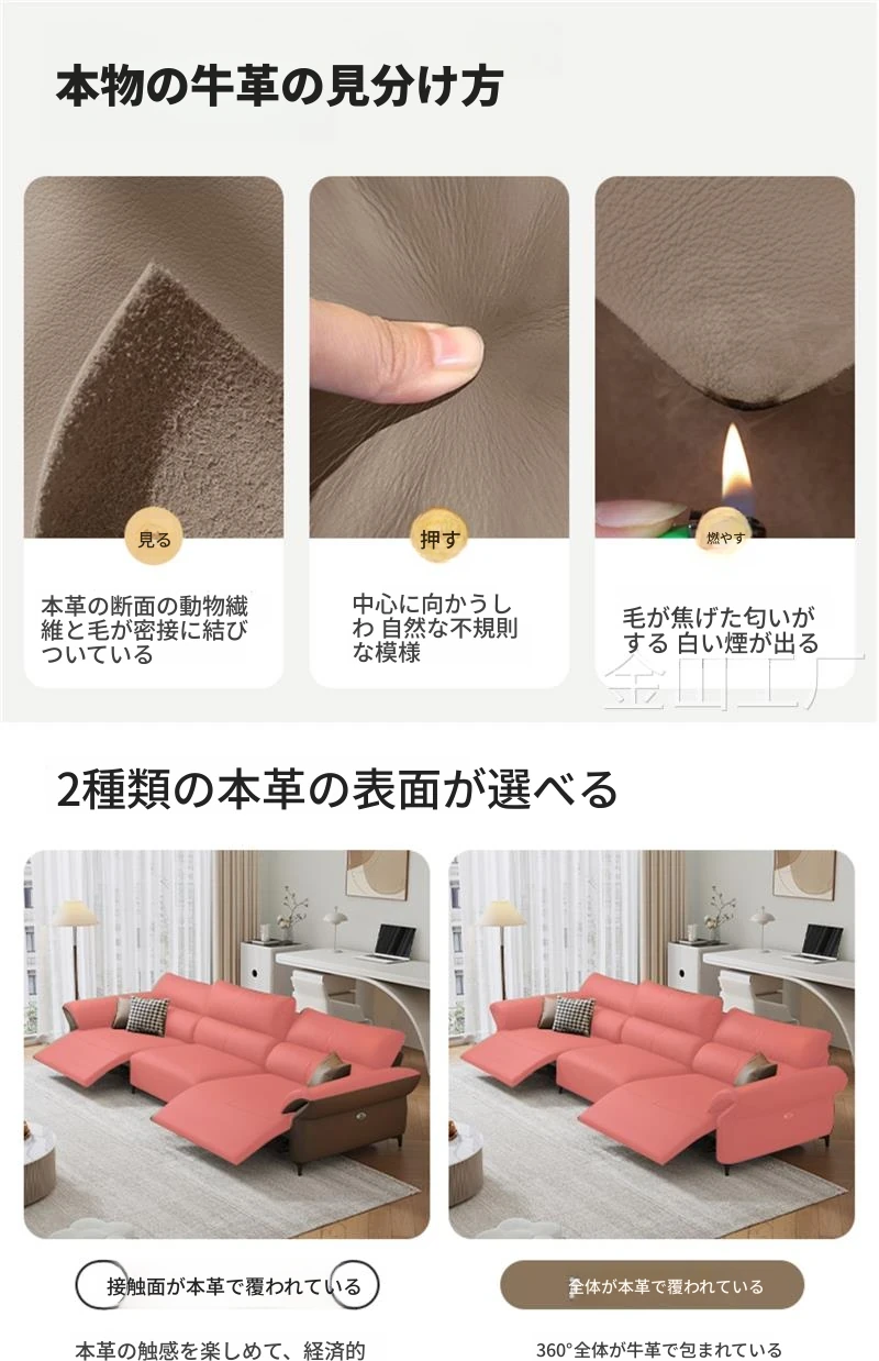 【厚手のトップグレイン牛革全カバー】3.4メートル四人用【左右電動】