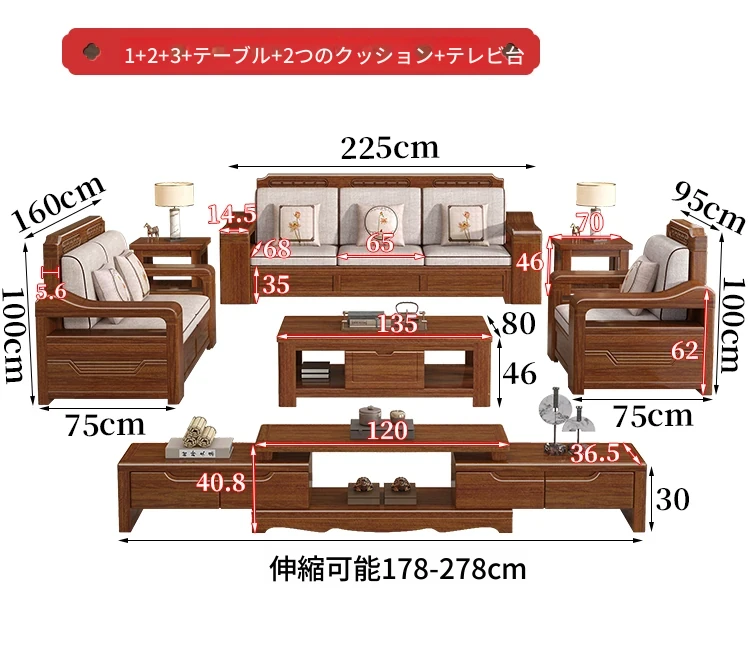 五人用+貴妃ソファ+テーブル+茶台