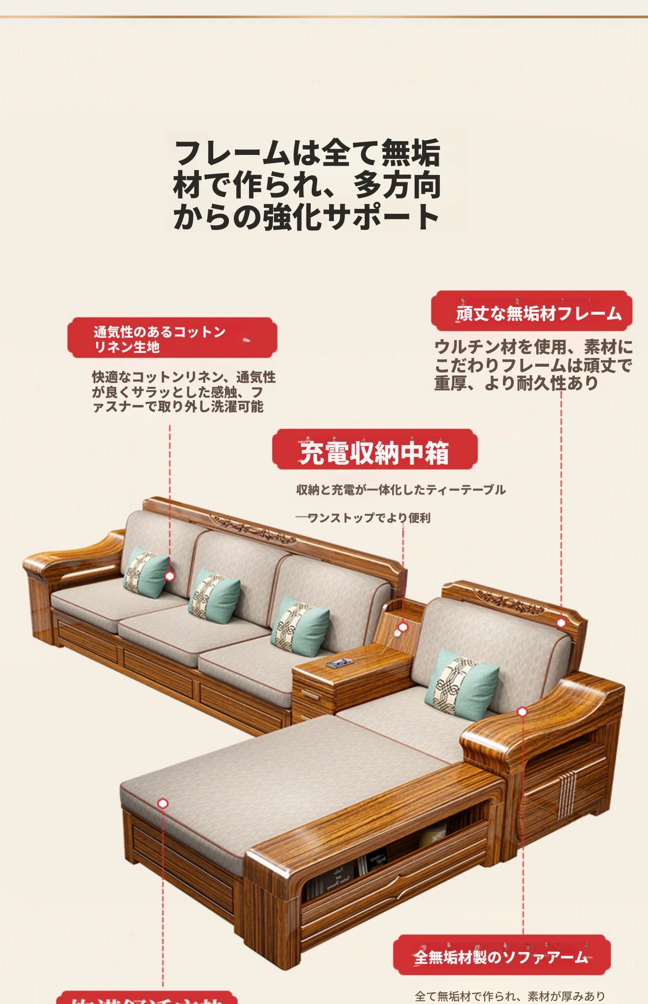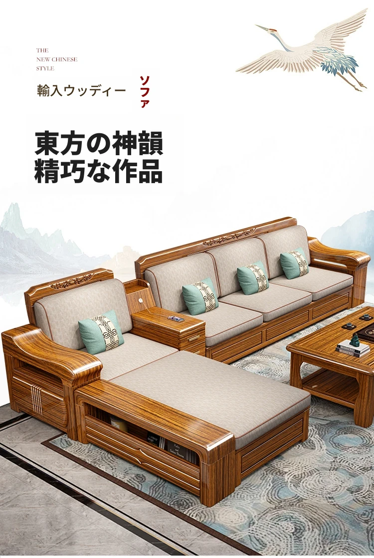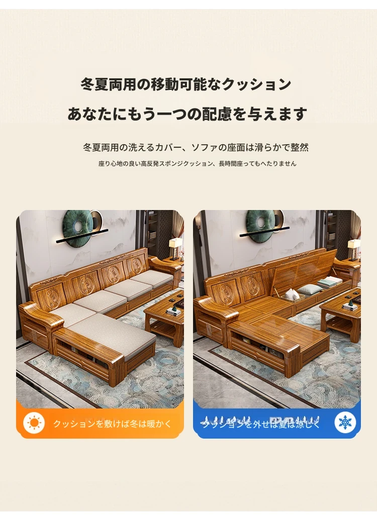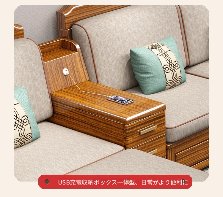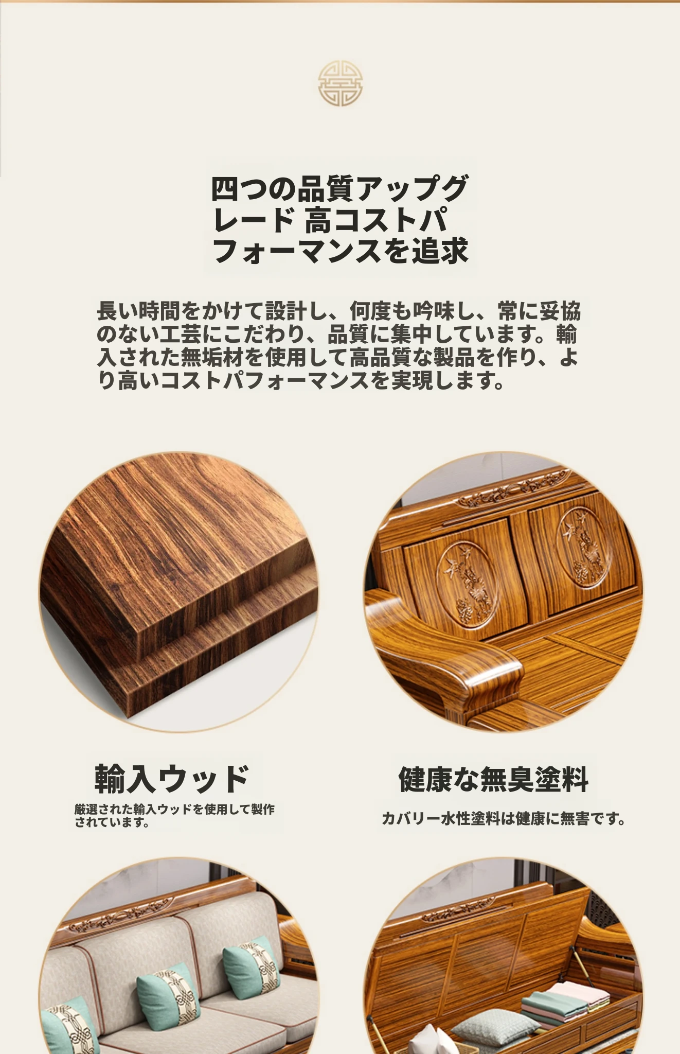 ウー金木製リビングルーム用ソファセット|冬夏両用・収納機能付き|現代中式家具でお部屋をスタイリッシュに|全屋対応の贅沢なインテリアセット