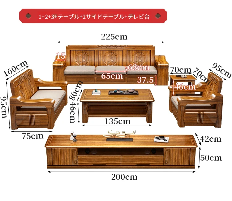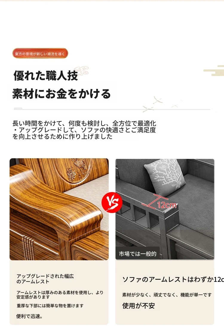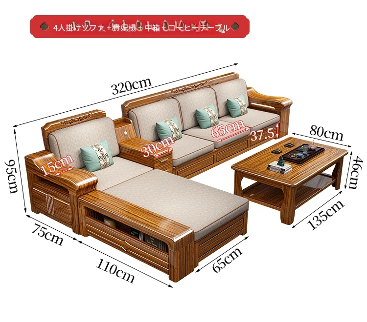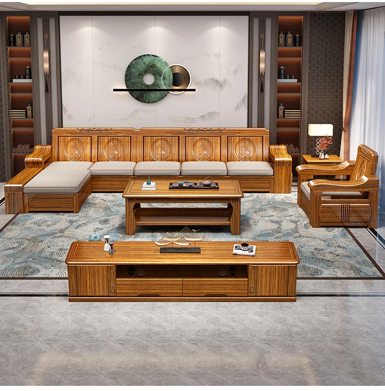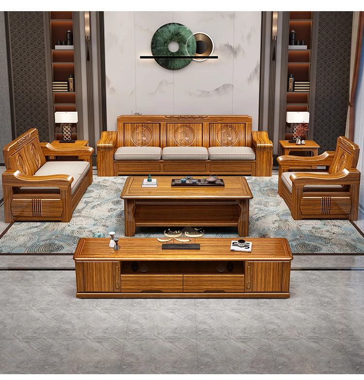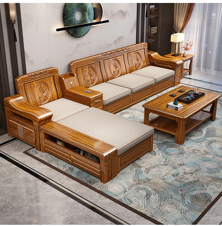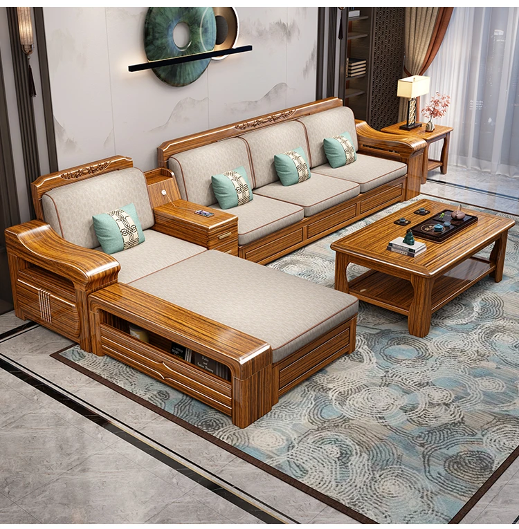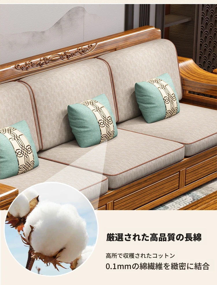 ウー金木製リビングルーム用ソファセット|冬夏両用・収納機能付き|現代中式家具でお部屋をスタイリッシュに|全屋対応の贅沢なインテリアセット