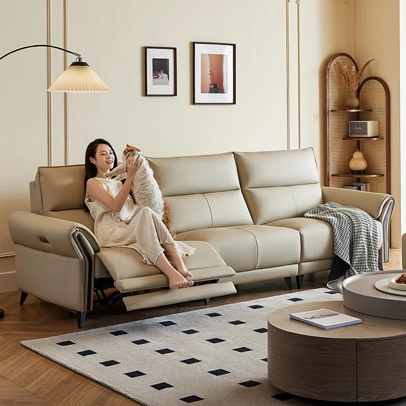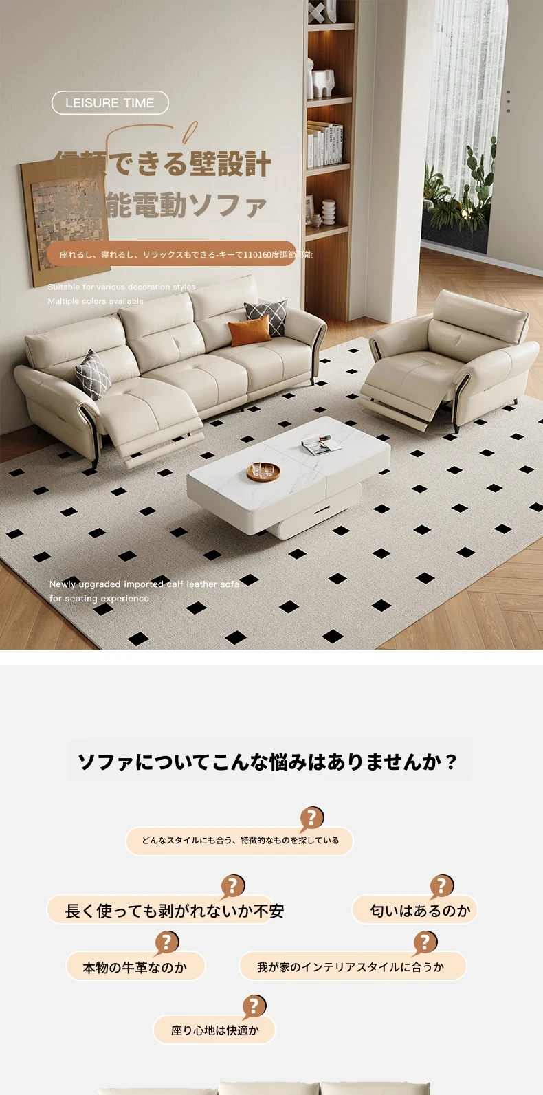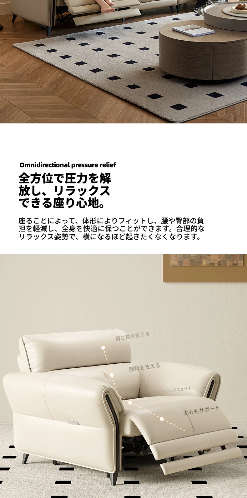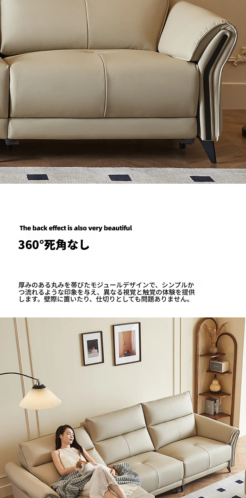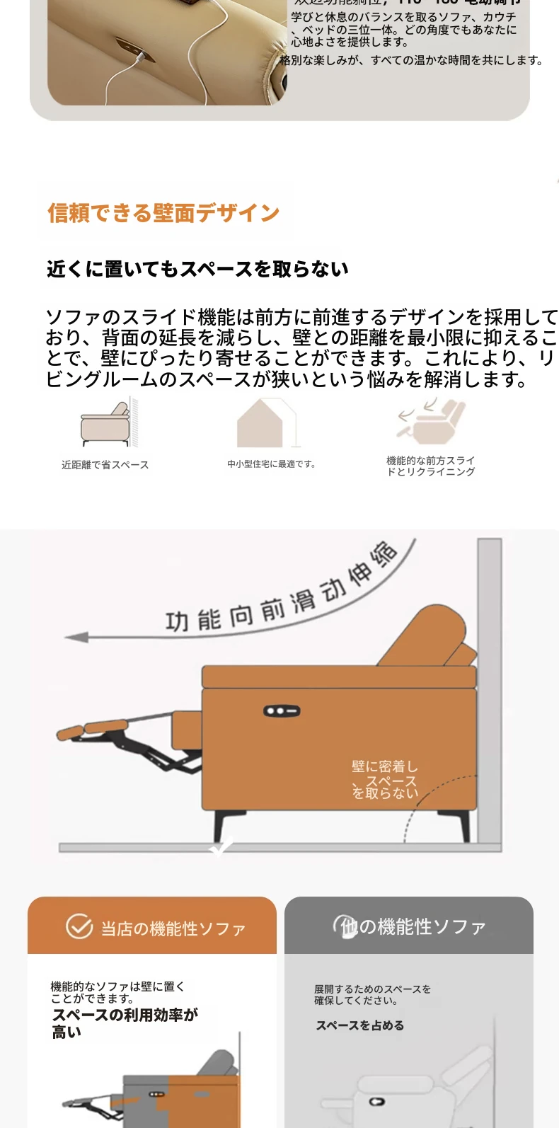 本革電動機能ソファ|現代的なラグジュアリー&ミニマリズム|壁にぴったりフィット|伸縮可能なスマートソファ|3人掛けリクライニングチェアで快適なリビング空間を演出!