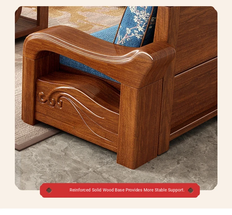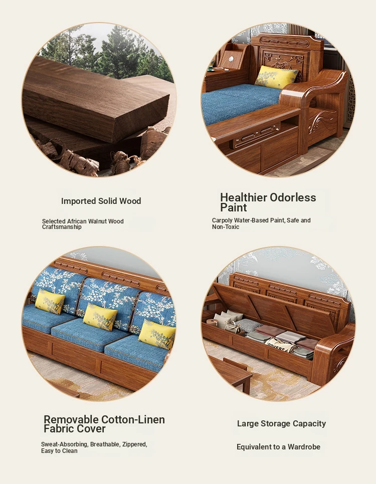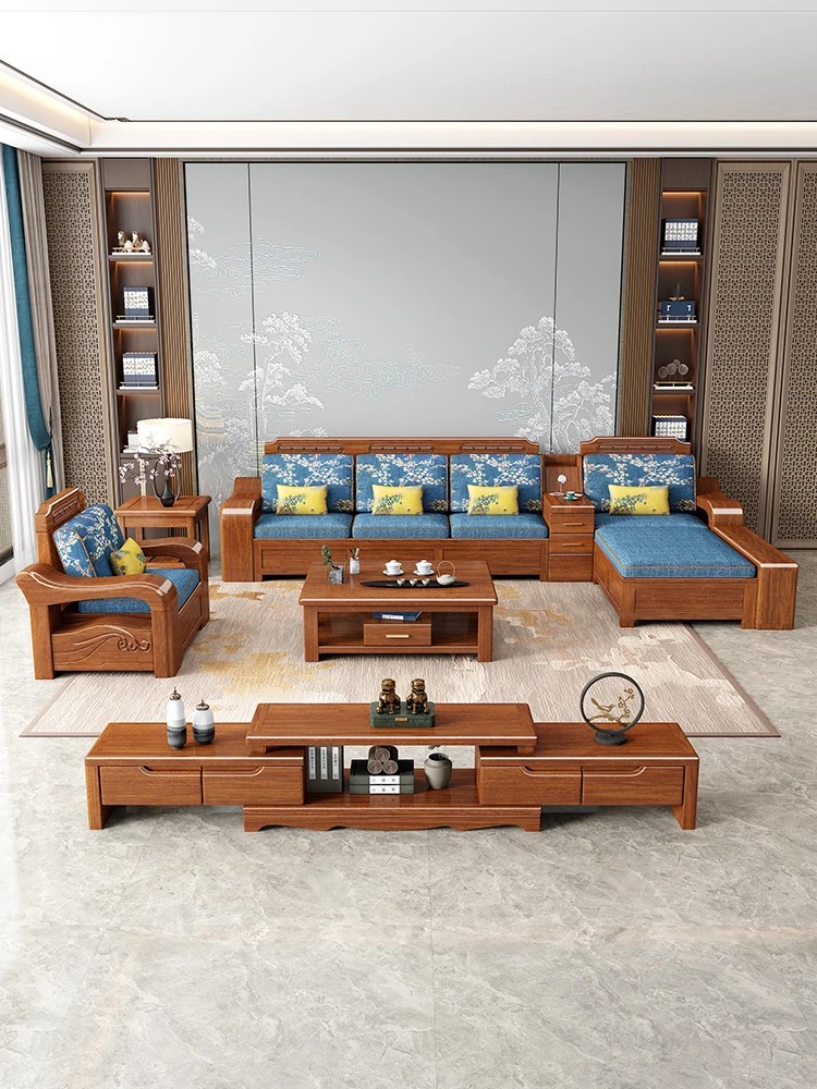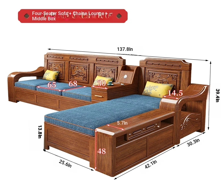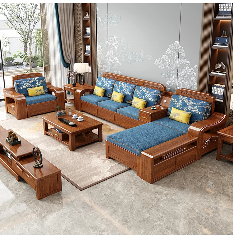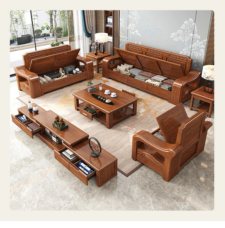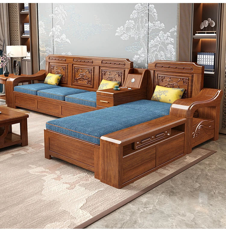 Modern Minimalist Chinese Corner Sofa Set in Golden Walnut Solid Wood - Versatile Storage Solution for All Seasons, Perfect for Your Living Room