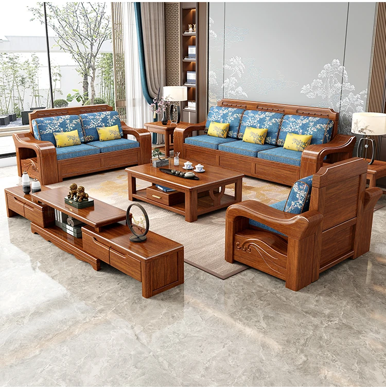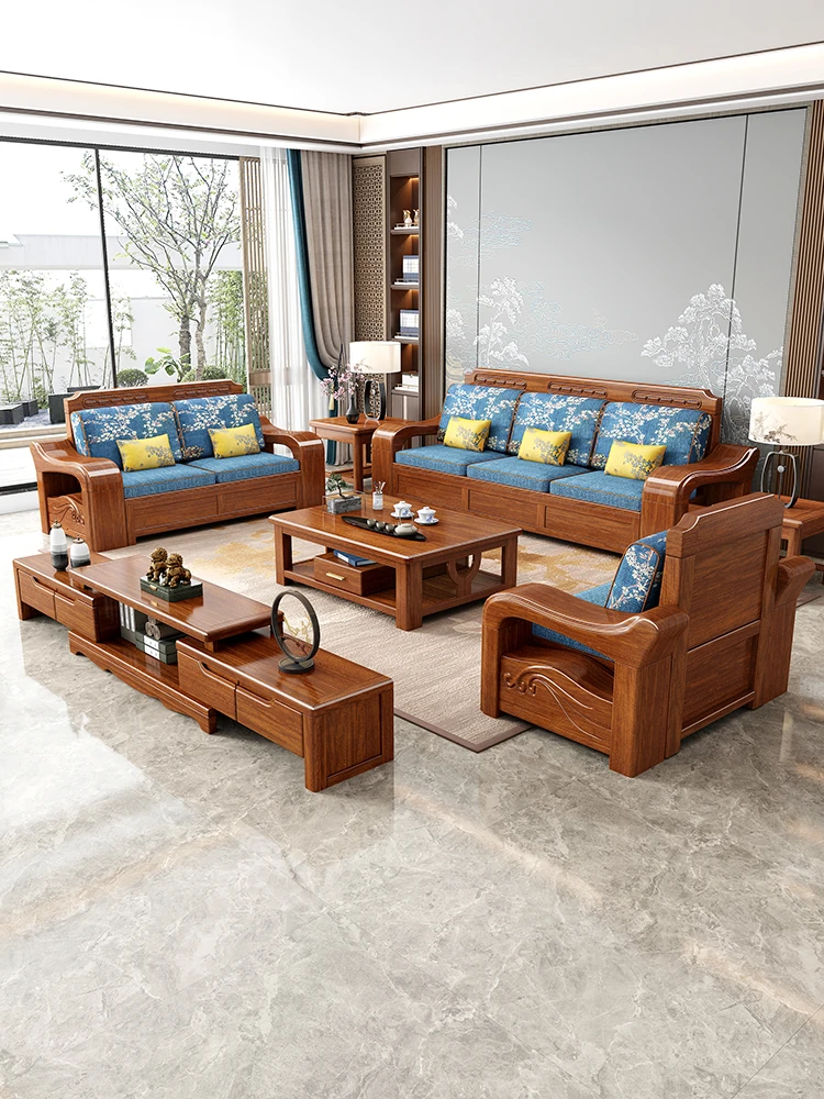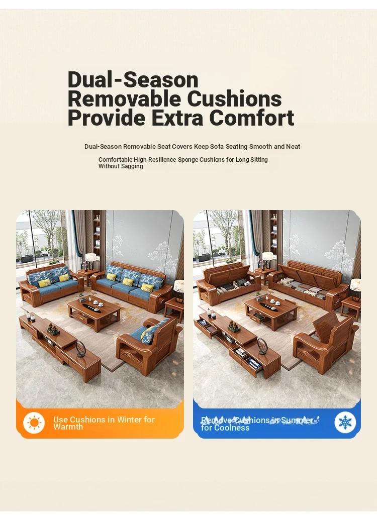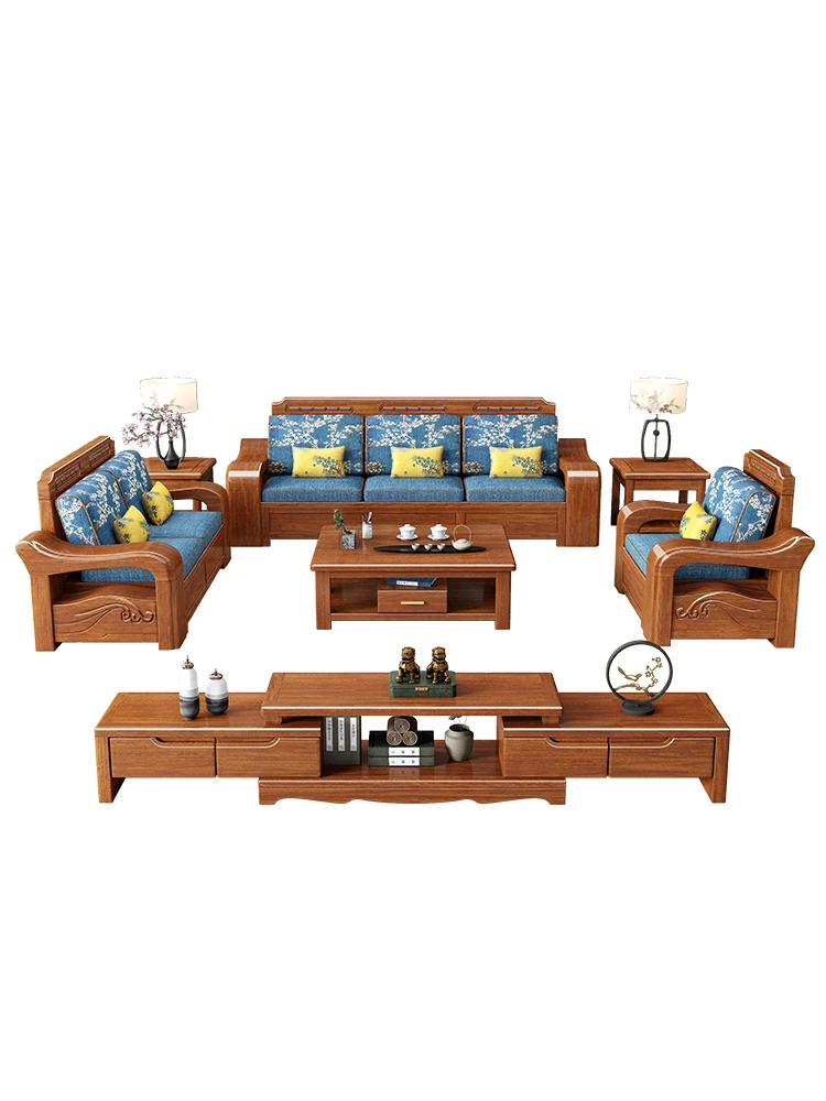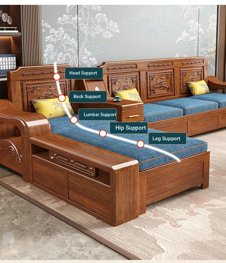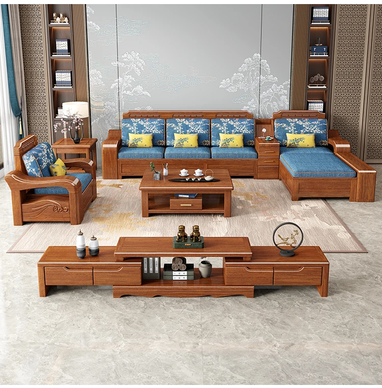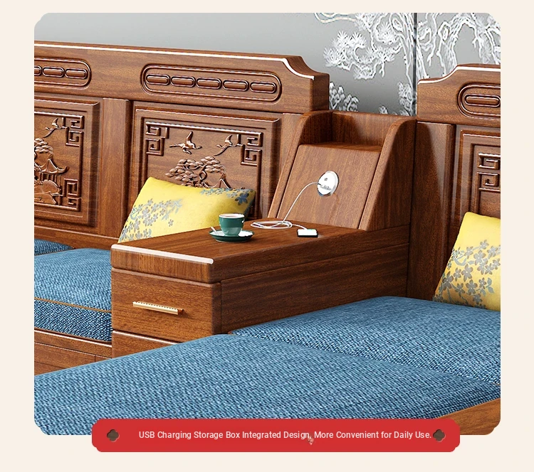Modern Minimalist Chinese Corner Sofa Set in Golden Walnut Solid Wood - Versatile Storage Solution for All Seasons, Perfect for Your Living Room