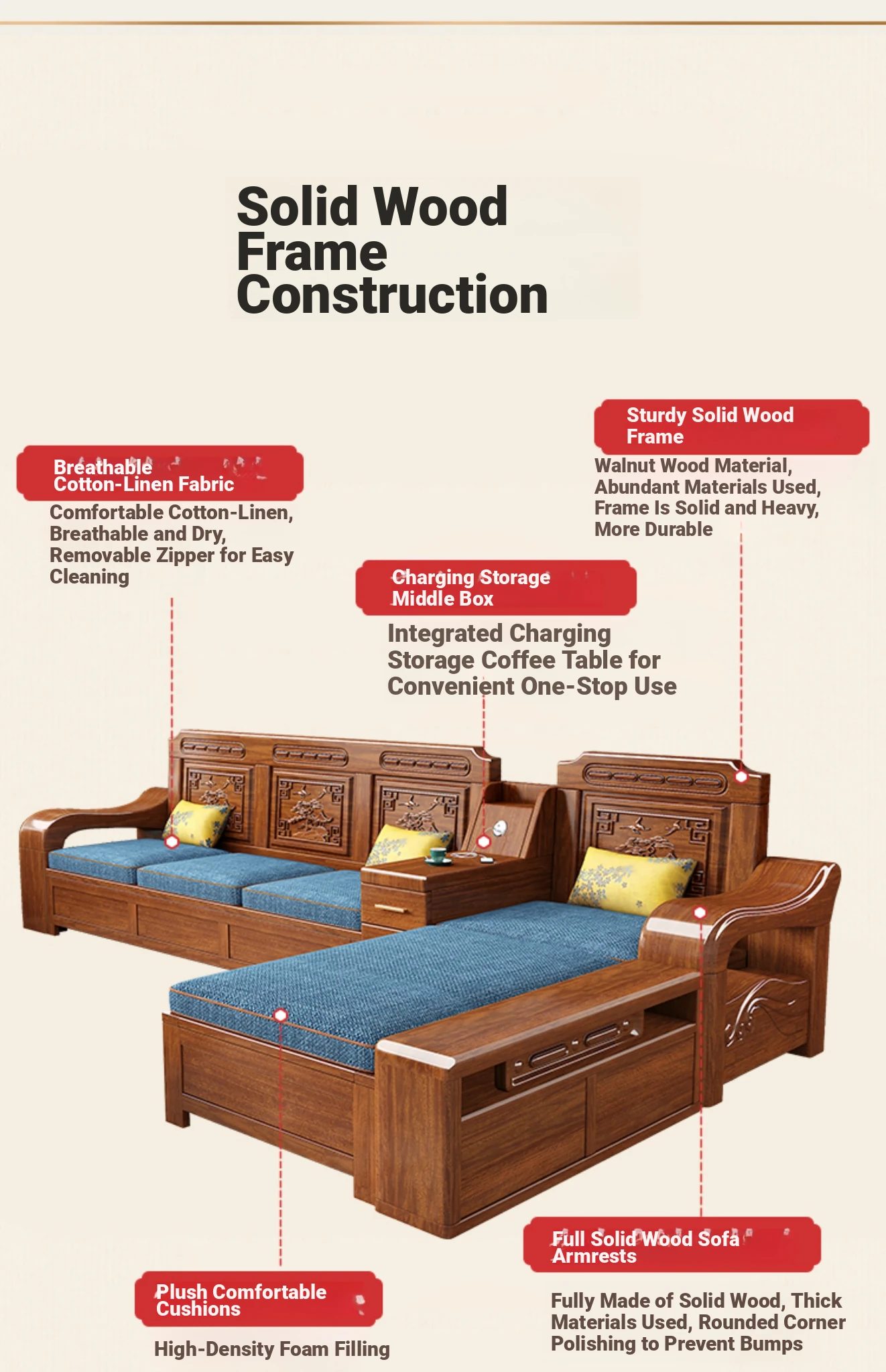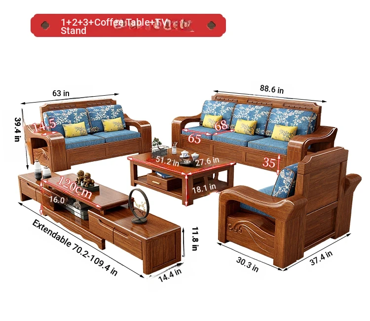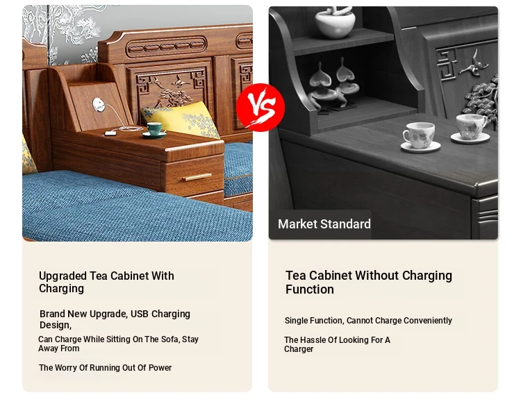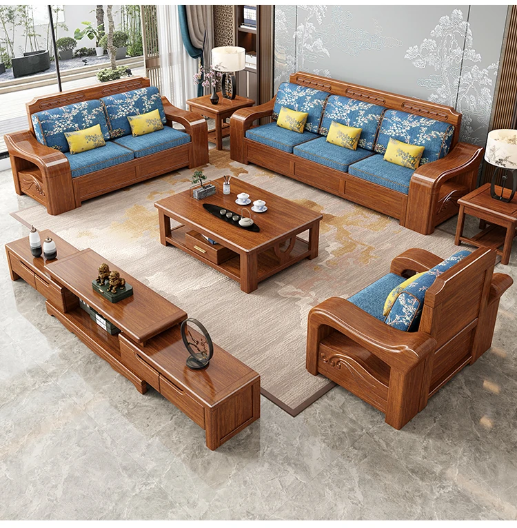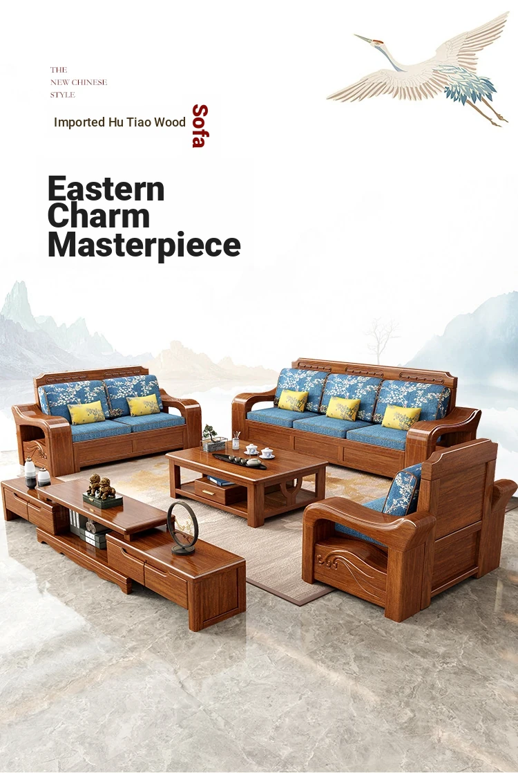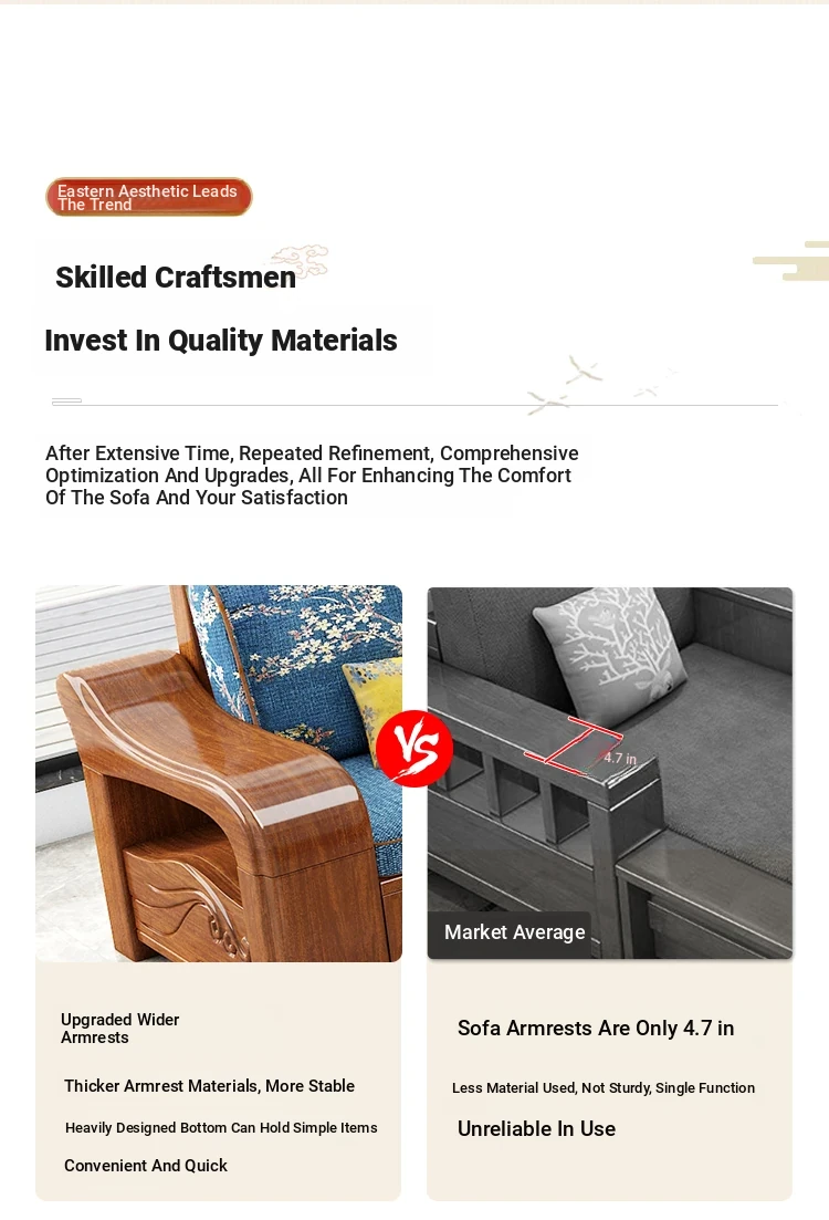Modern Minimalist Chinese Corner Sofa Set in Golden Walnut Solid Wood - Versatile Storage Solution for All Seasons, Perfect for Your Living Room