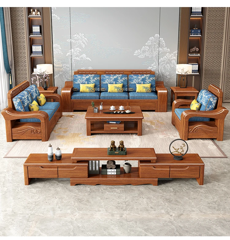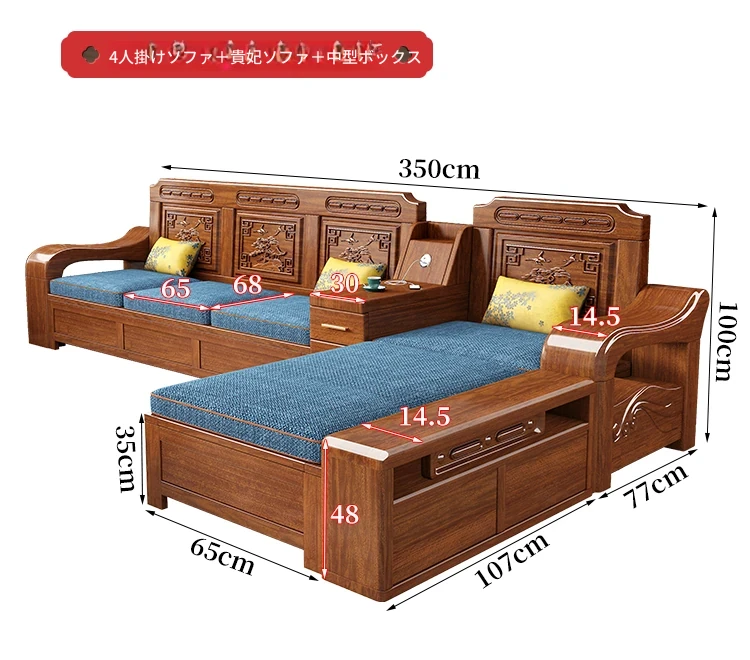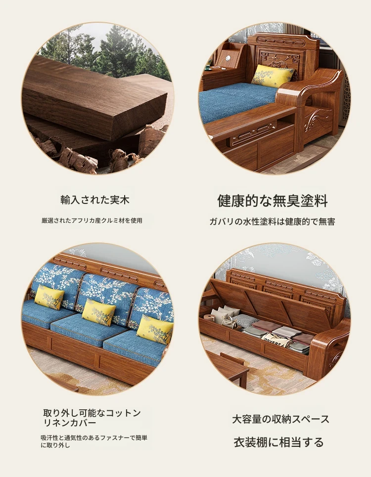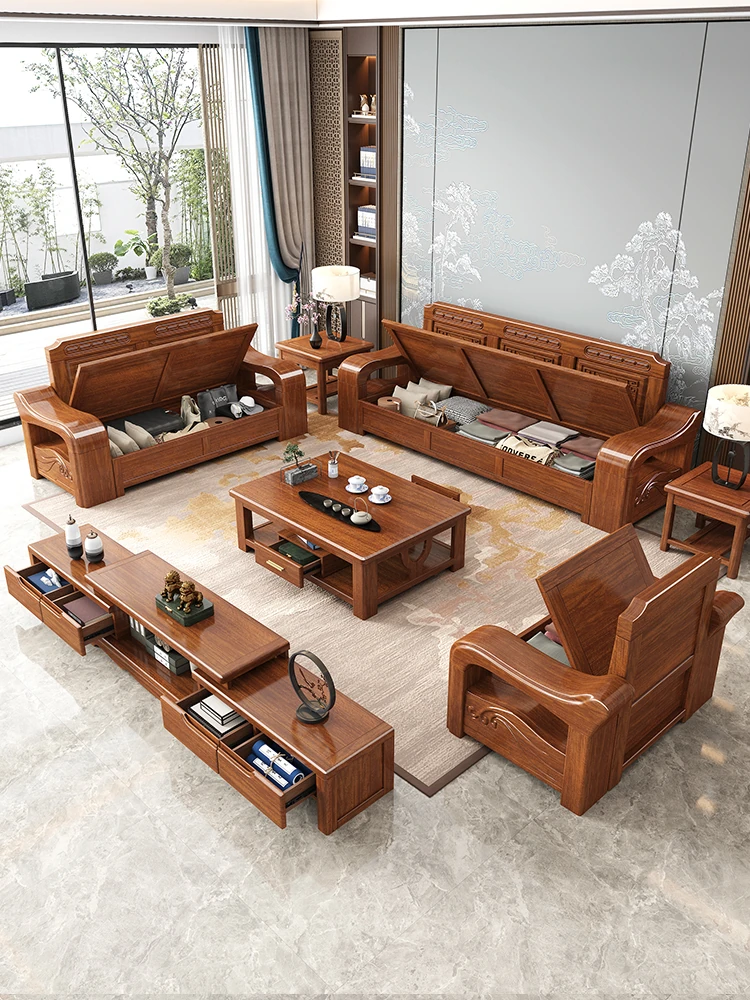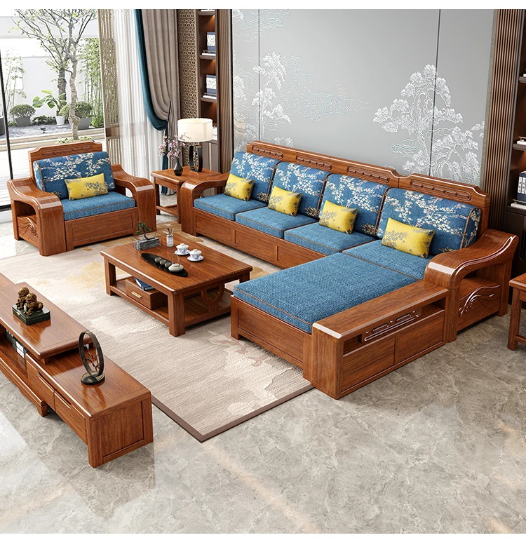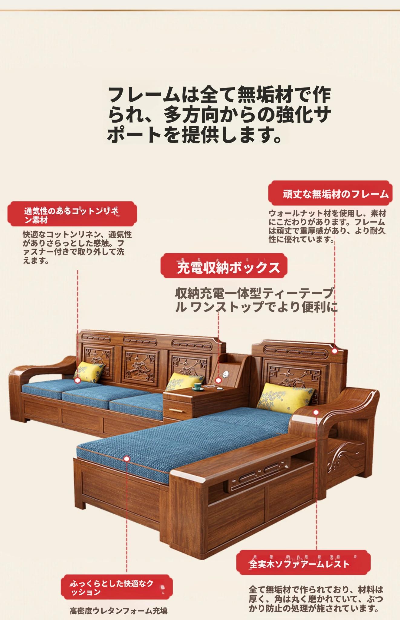 高級金絲胡桃木製のモダン中華スタイルコーナーソファセット - シンプルで洗練されたデザイン、冬も夏も快適に使える収納機能付き!おしゃれなリビング空間を演出します。