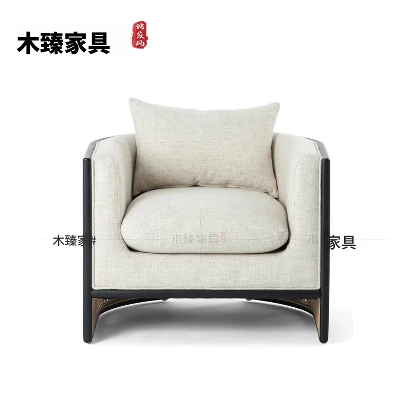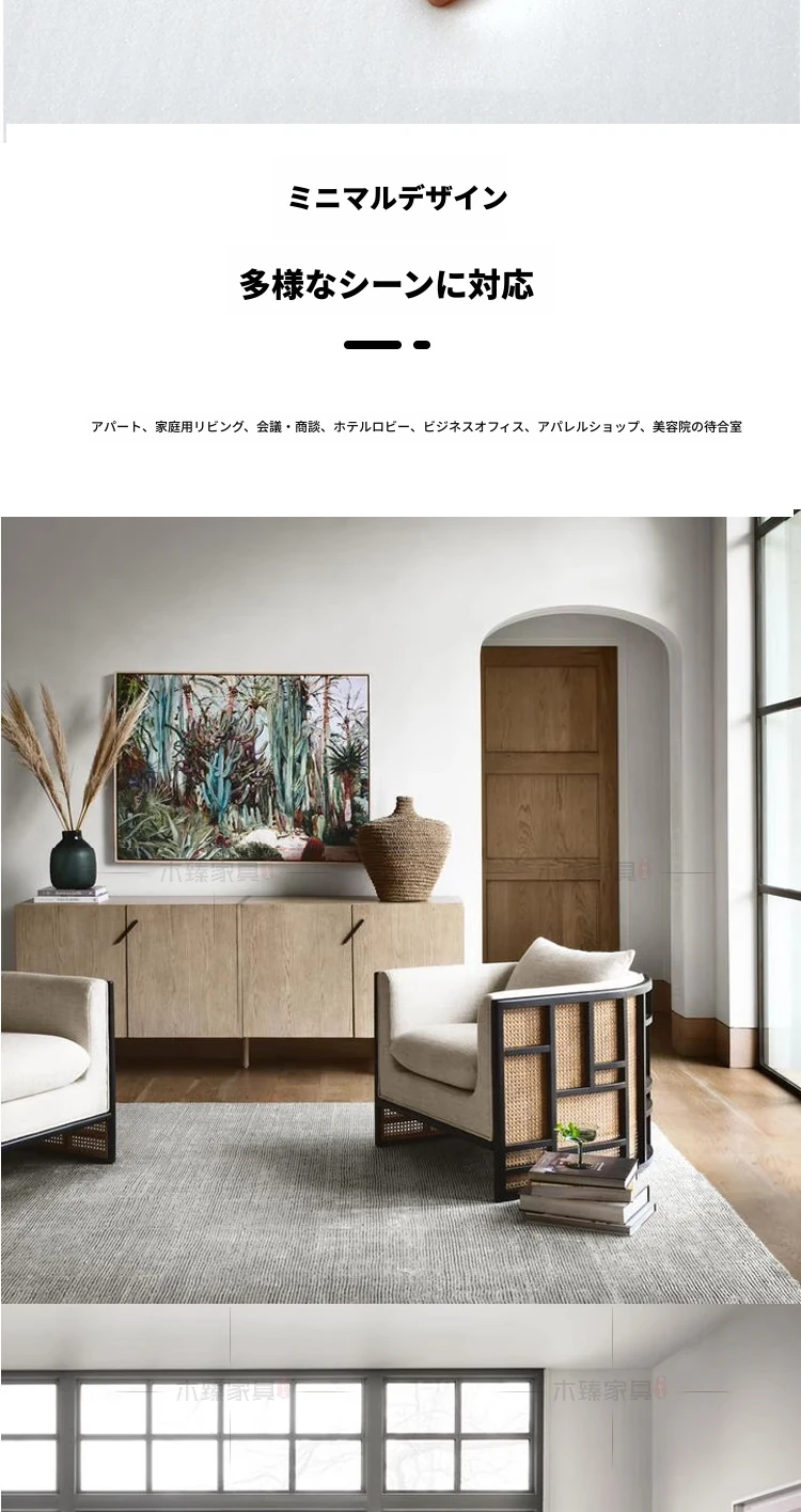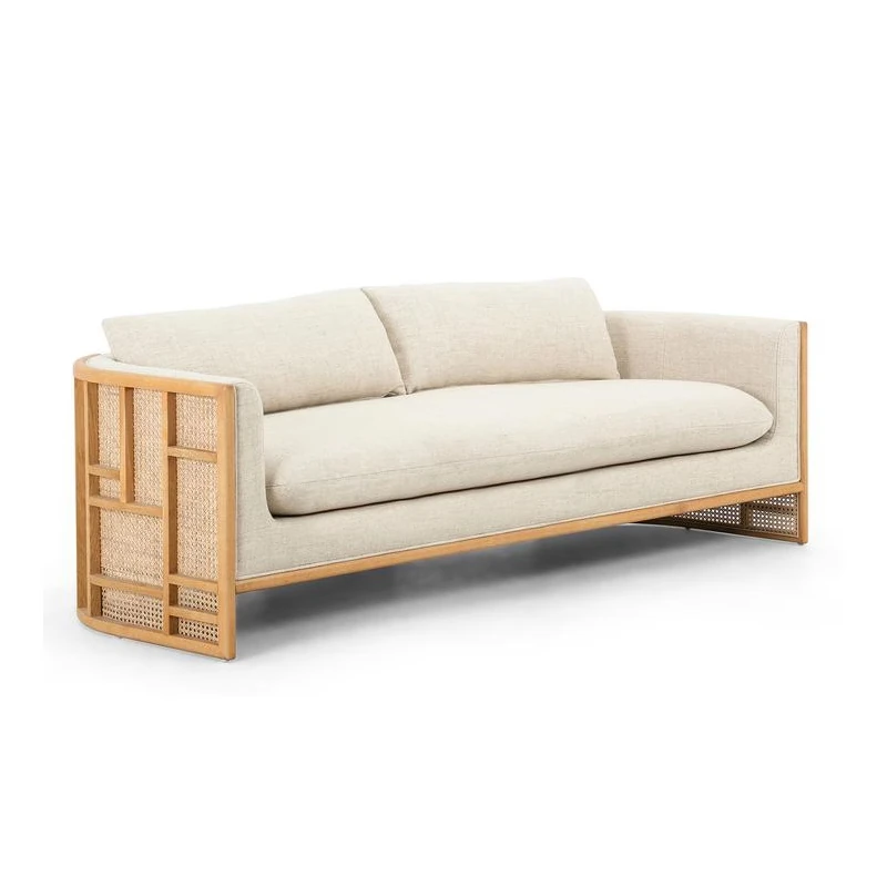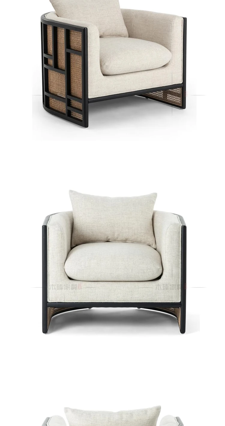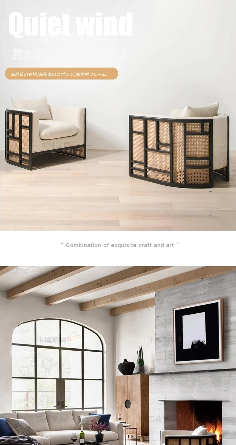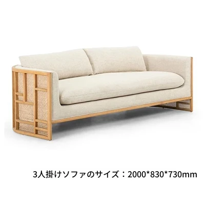 新中式スタイルの無垢材ソファセット - シンプルでモダンなデザイン、ホテルや民宿に最適!東南アジアの原木色と籐編みの家具で、心地よい空間を演出。