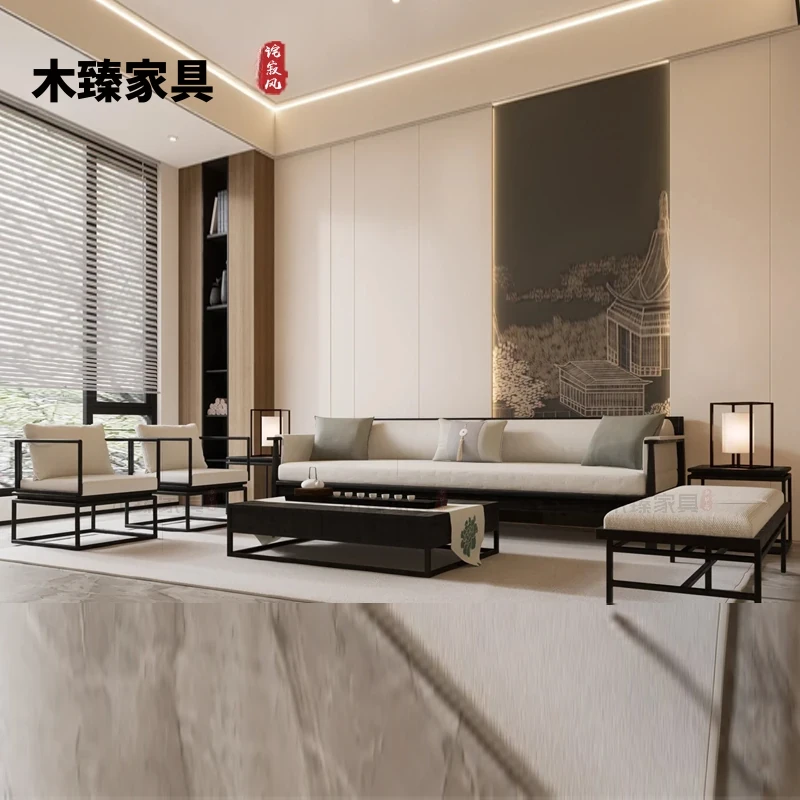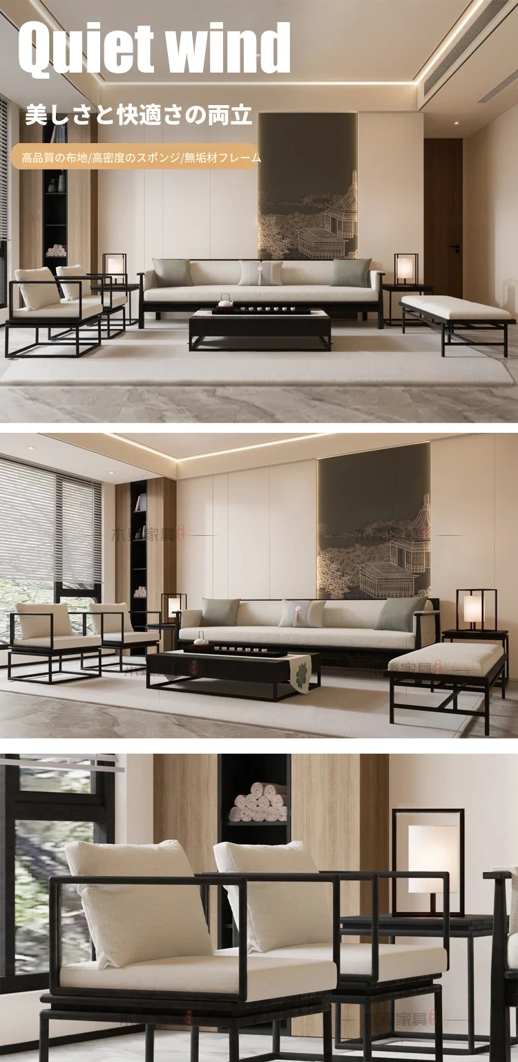 新中式無垢材ソファセット|現代的でシンプルな禅の美|別荘やホテル、クラブハウスにも最適な接客家具|上質なひとときを演出する快適空間を提供します。