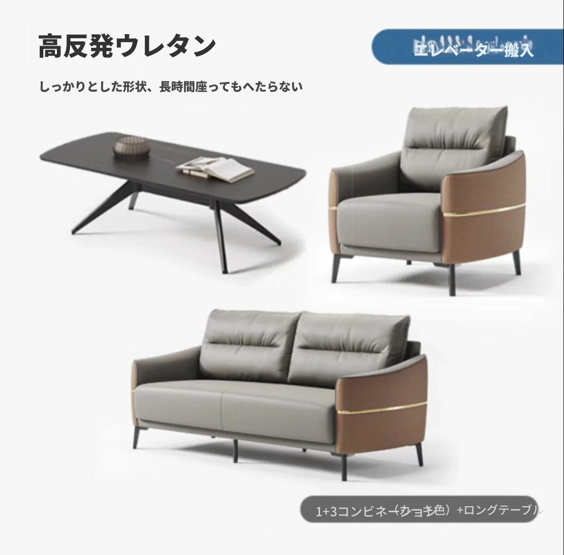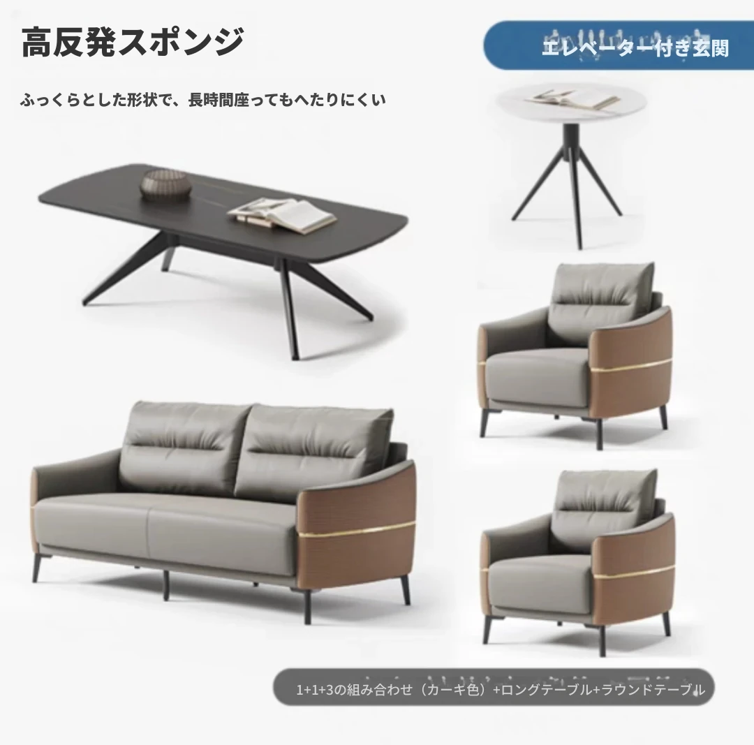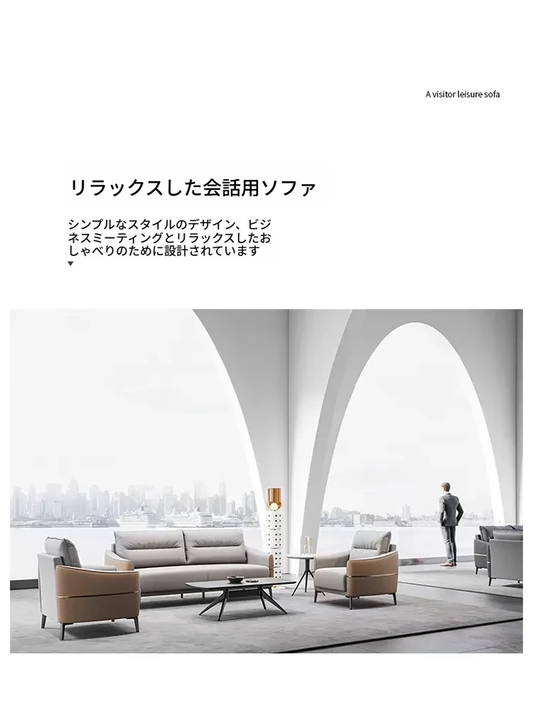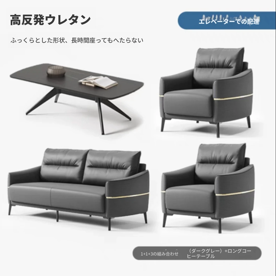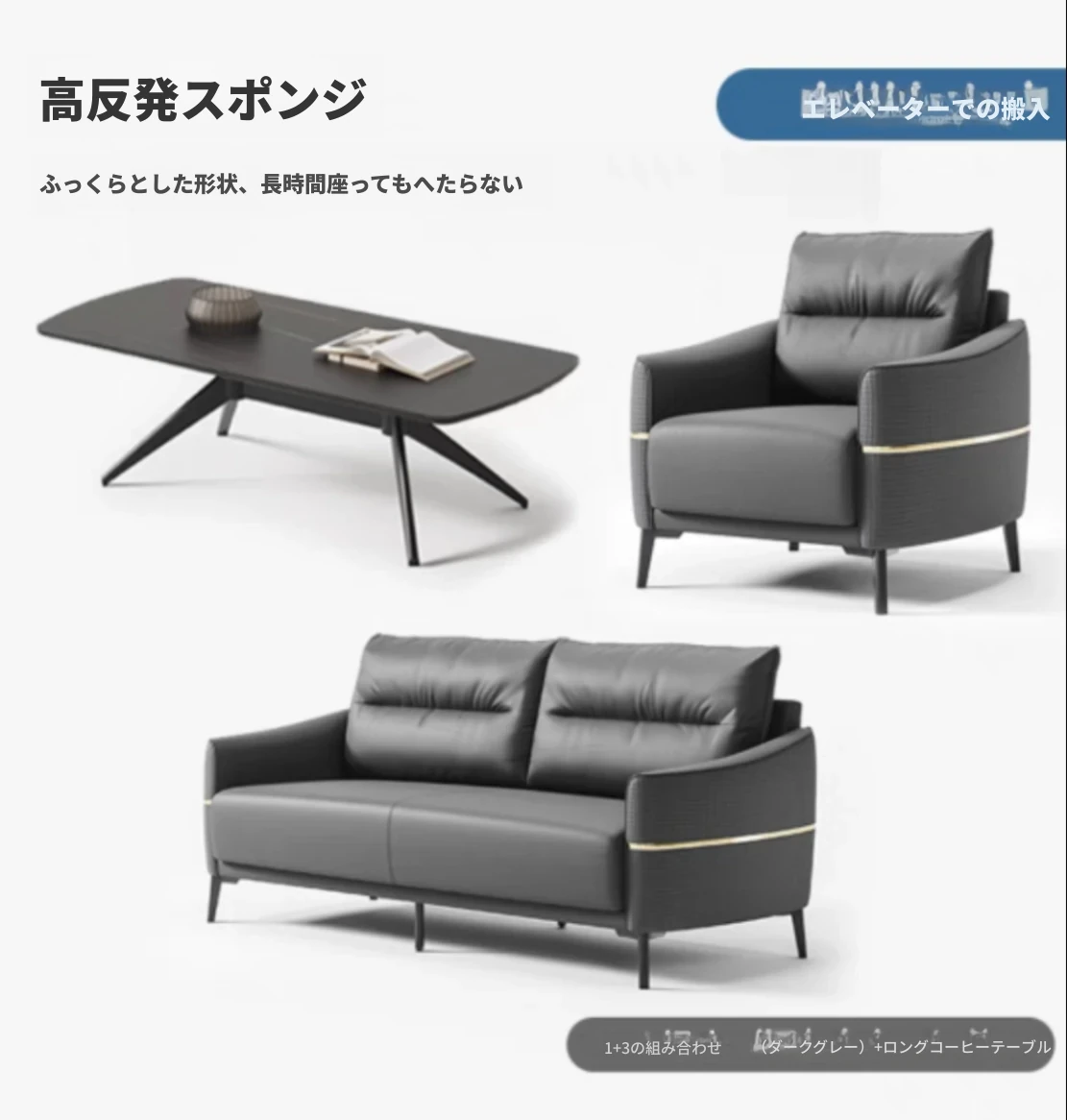 モダンでスタイリッシュなオフィスソファセット - シンプルなデザインでビジネス会議や休憩スペースに最適!おしゃれなコーヒーテーブル付きで、快適な接客を実現。あなたのオフィスをランクアップ!